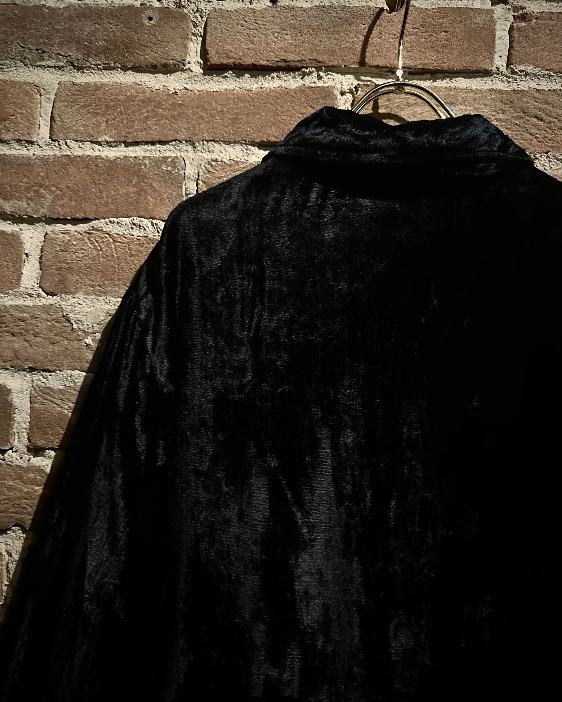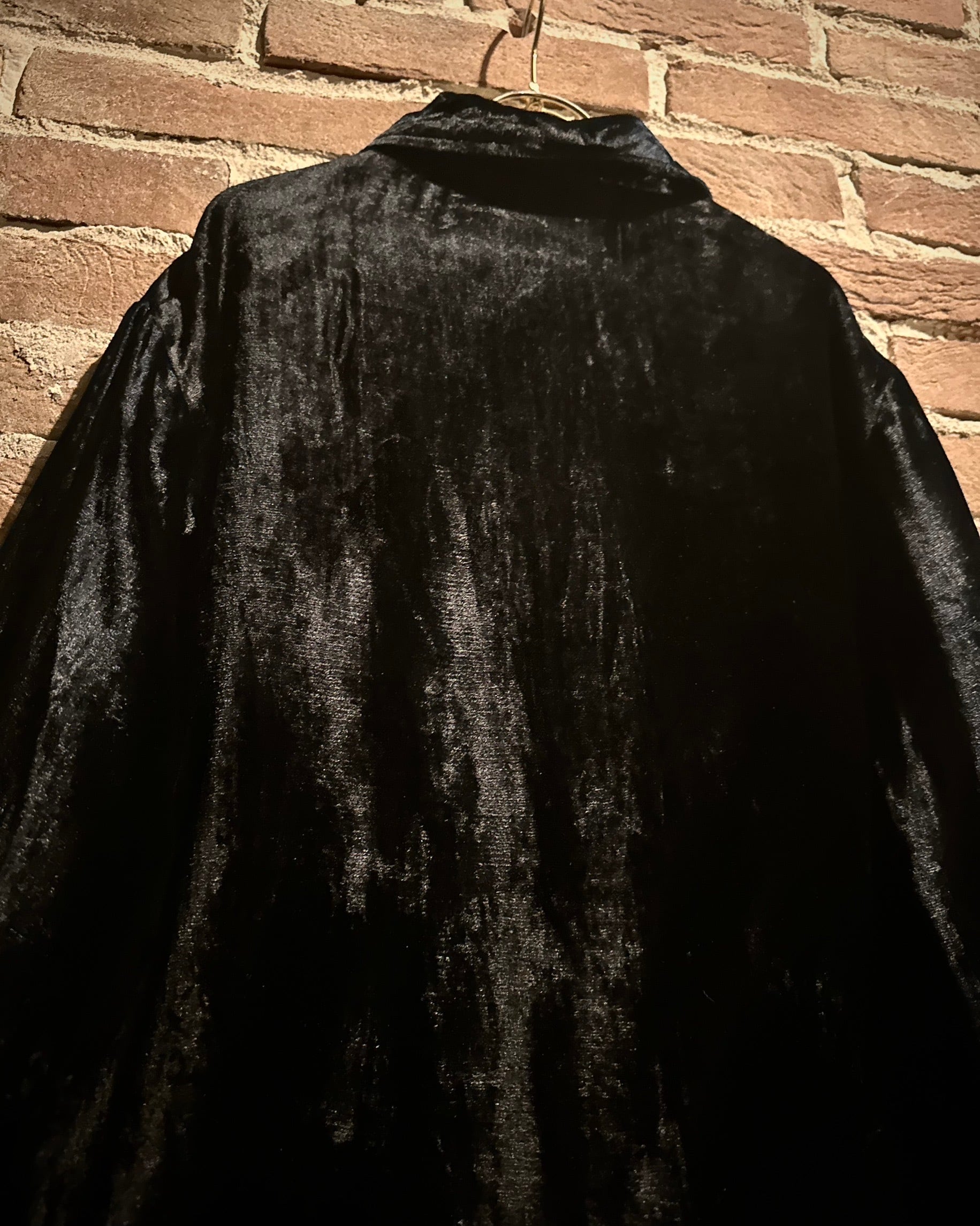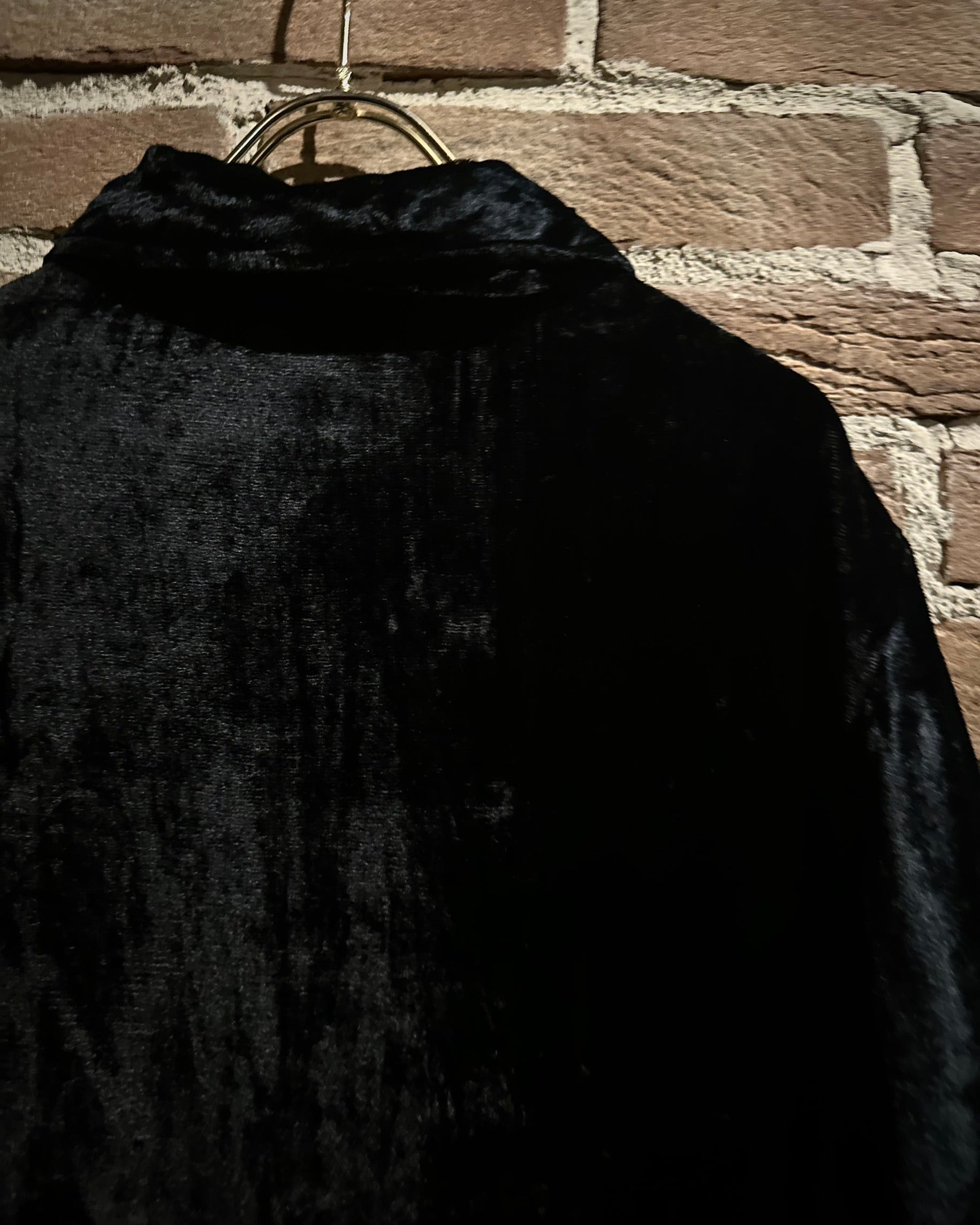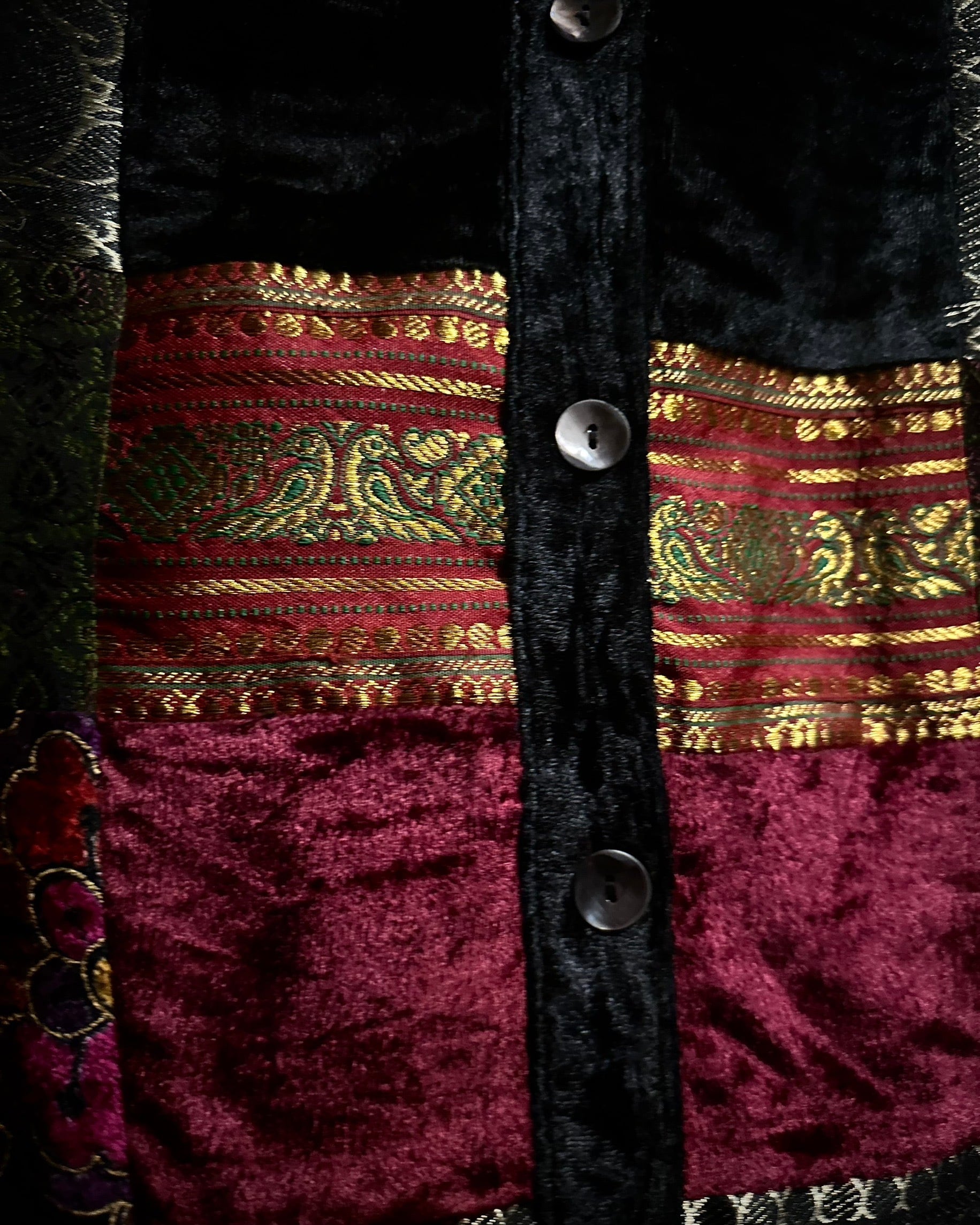 ベロア特有の深い光沢と滑らかな表情をベースに、フロントへ大胆にパッチワークを切り替えたジャケット。
