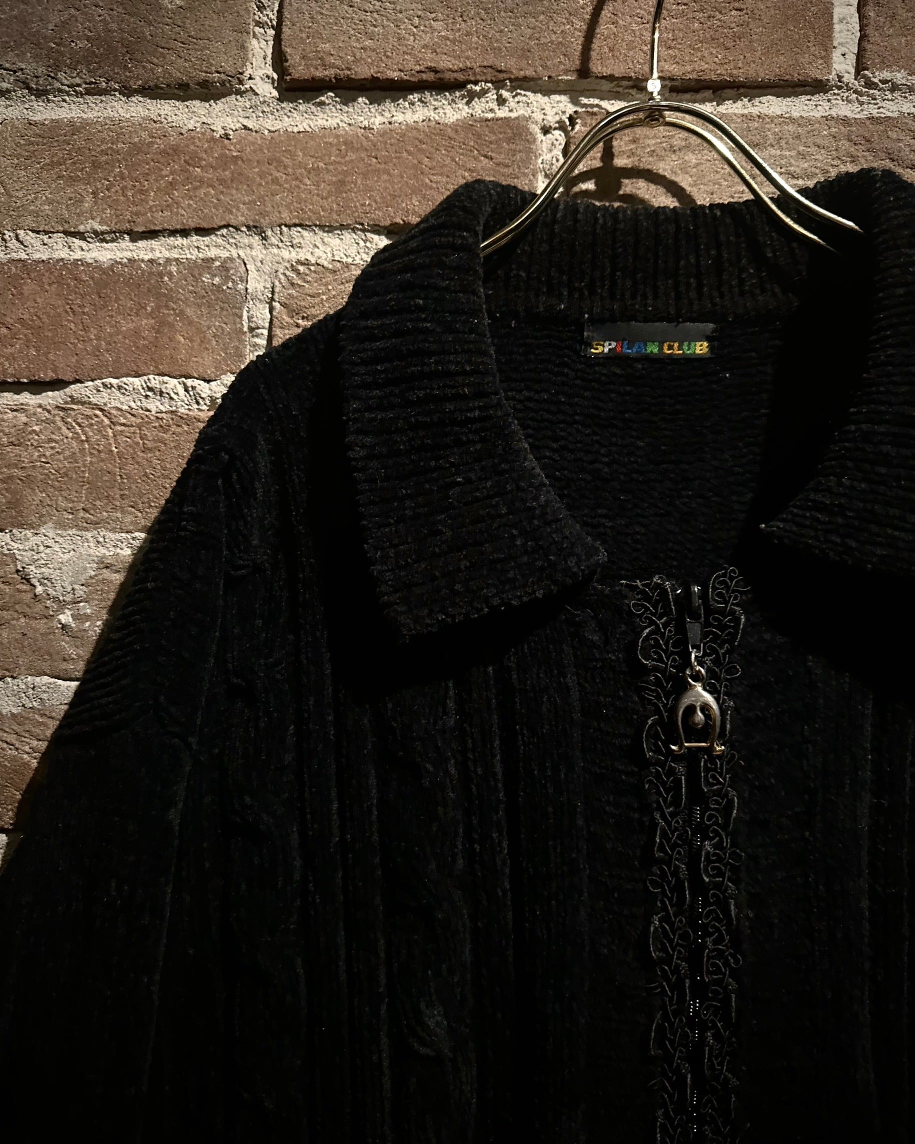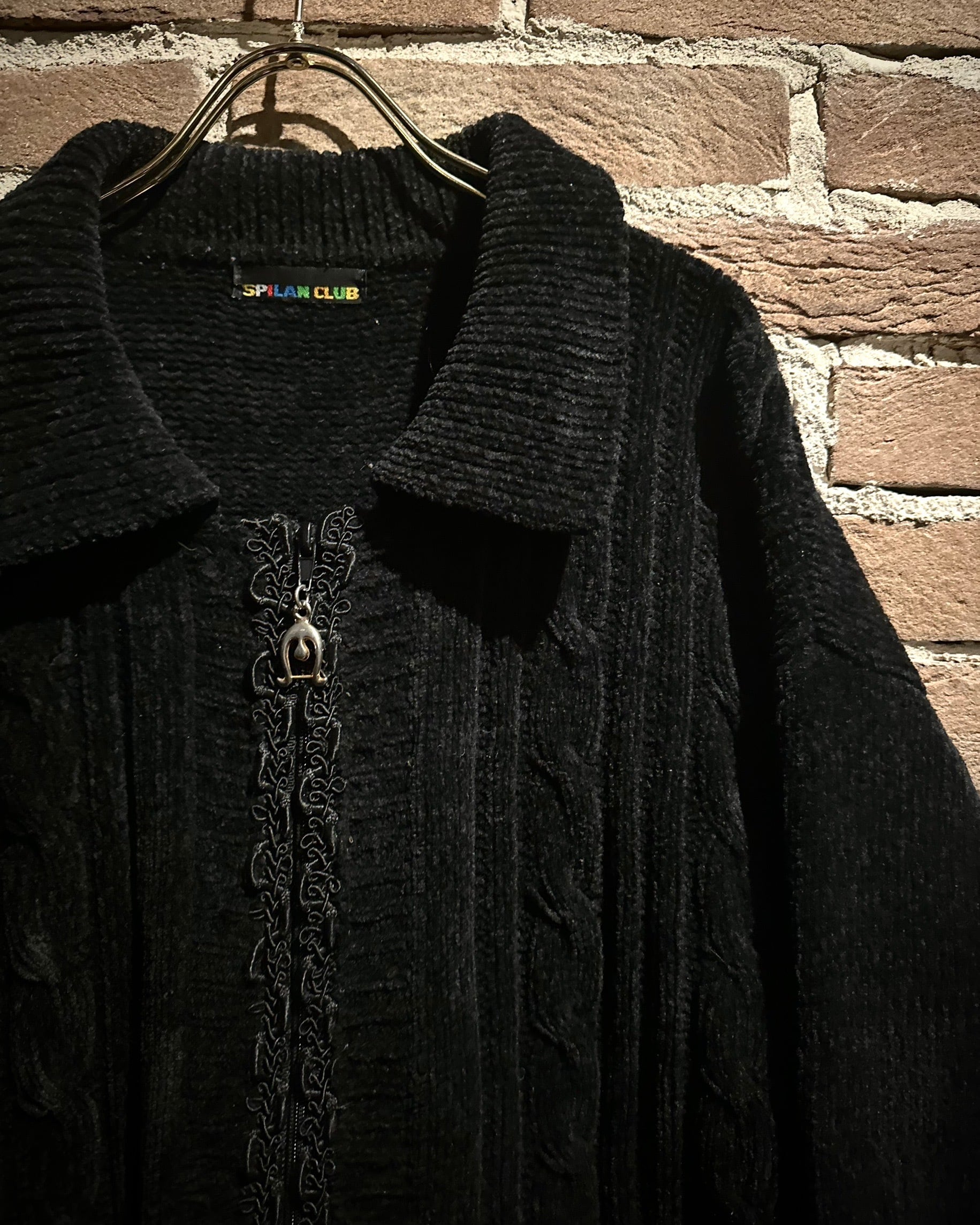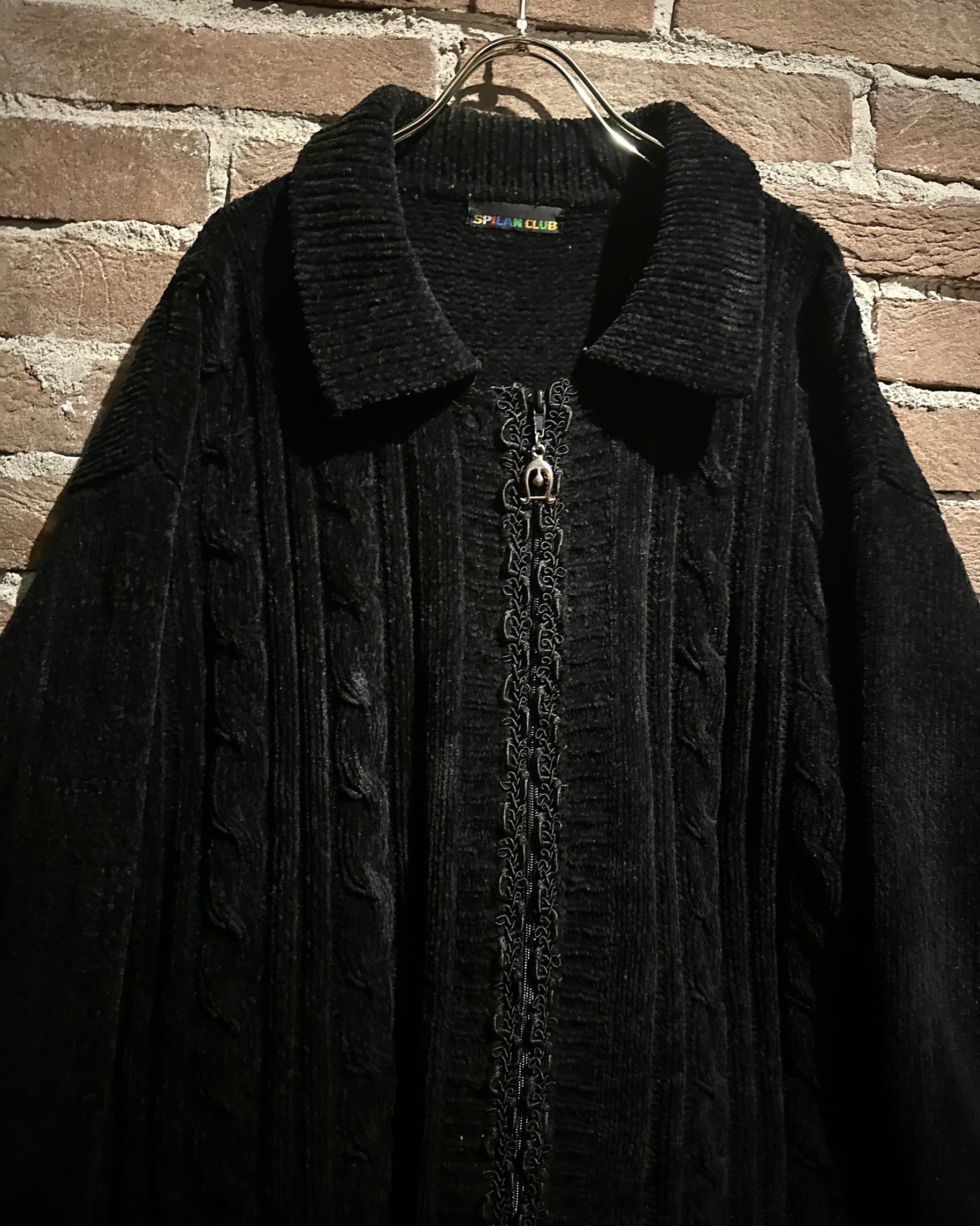 シェニール特有の柔らかな光沢と深みのあるケーブル編が魅力の、ジップアップ仕様のニットジャケット。