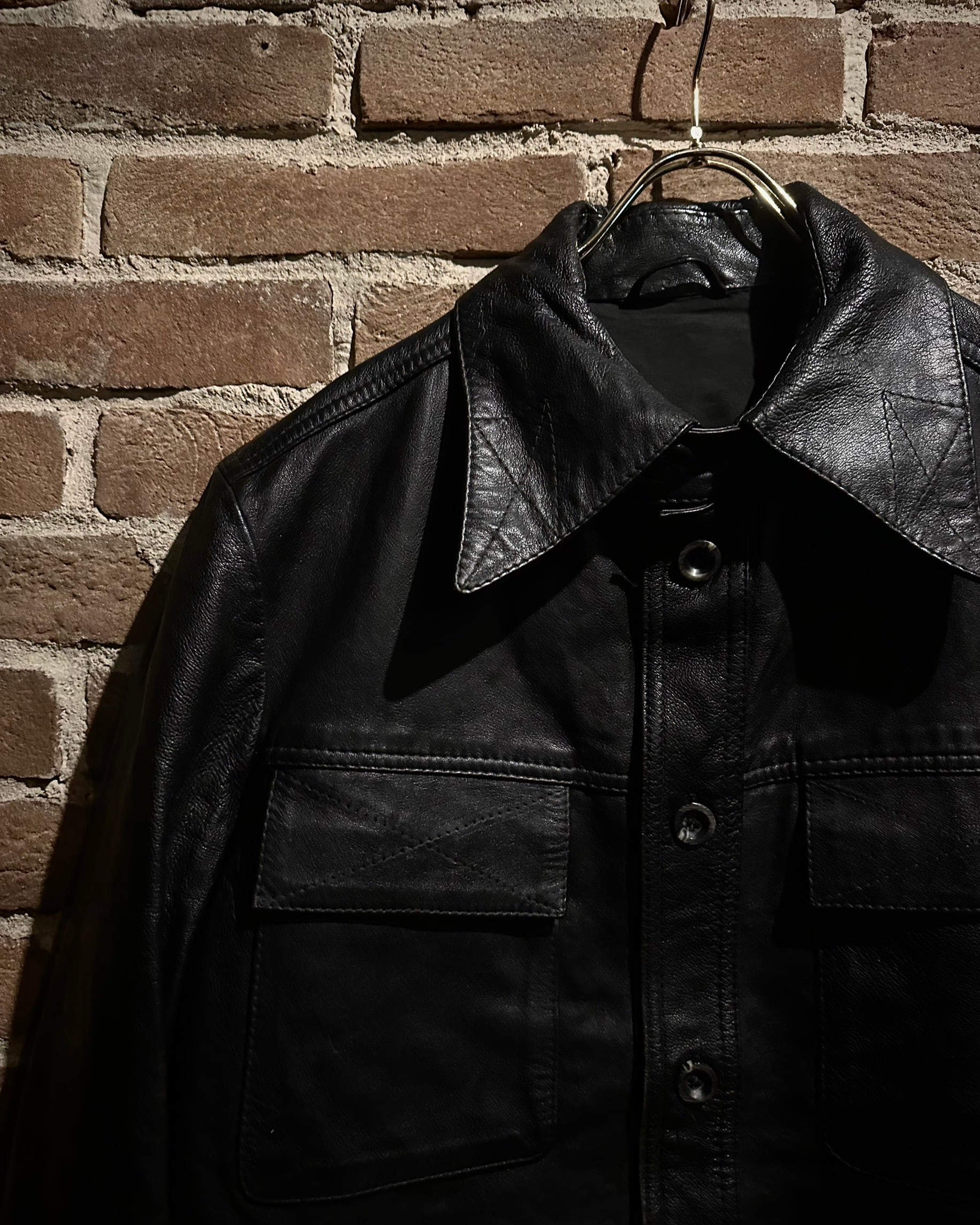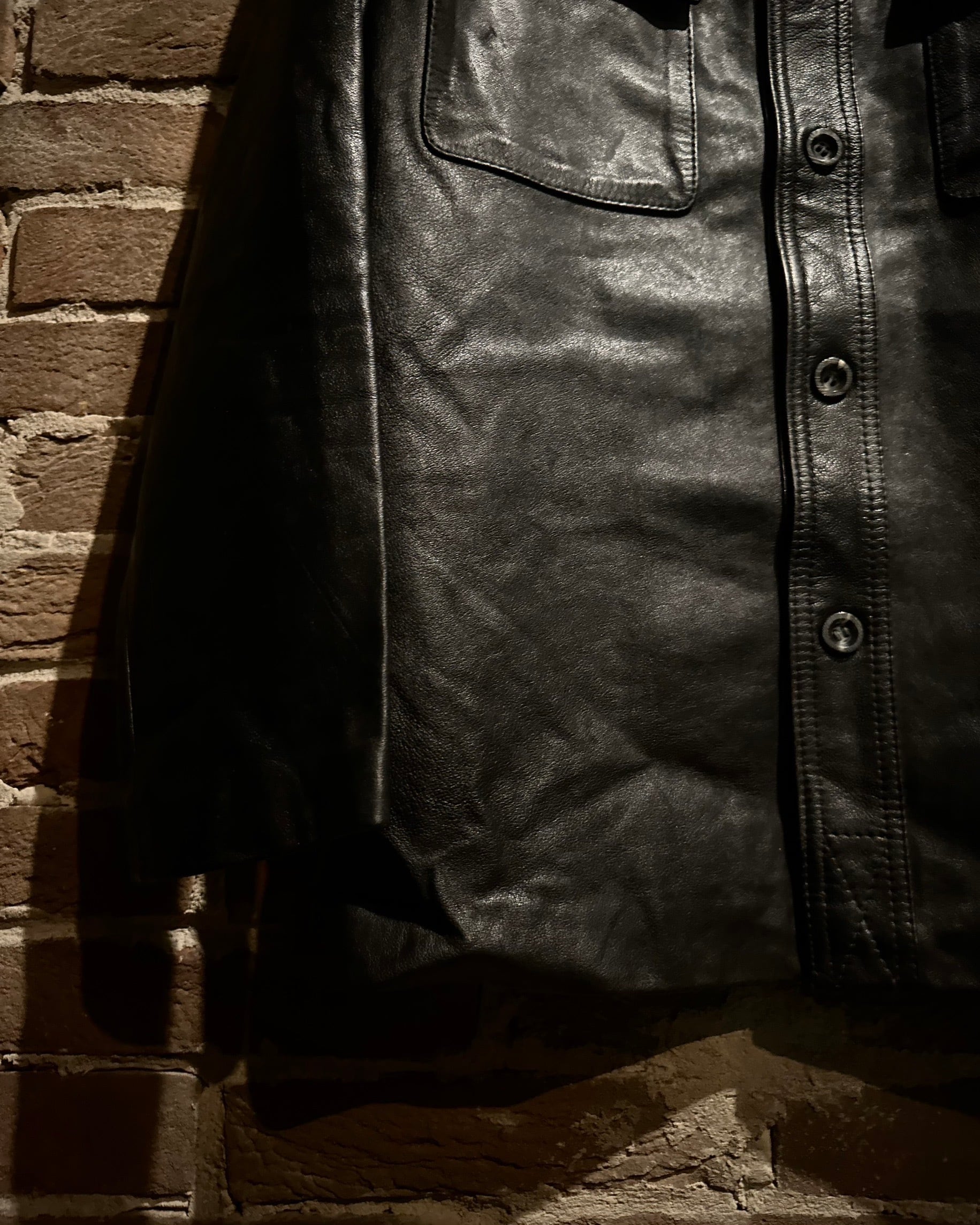 柔らかく馴染んだブラックレザーを贅沢に使用した、レザーシャツ型ジャケット。