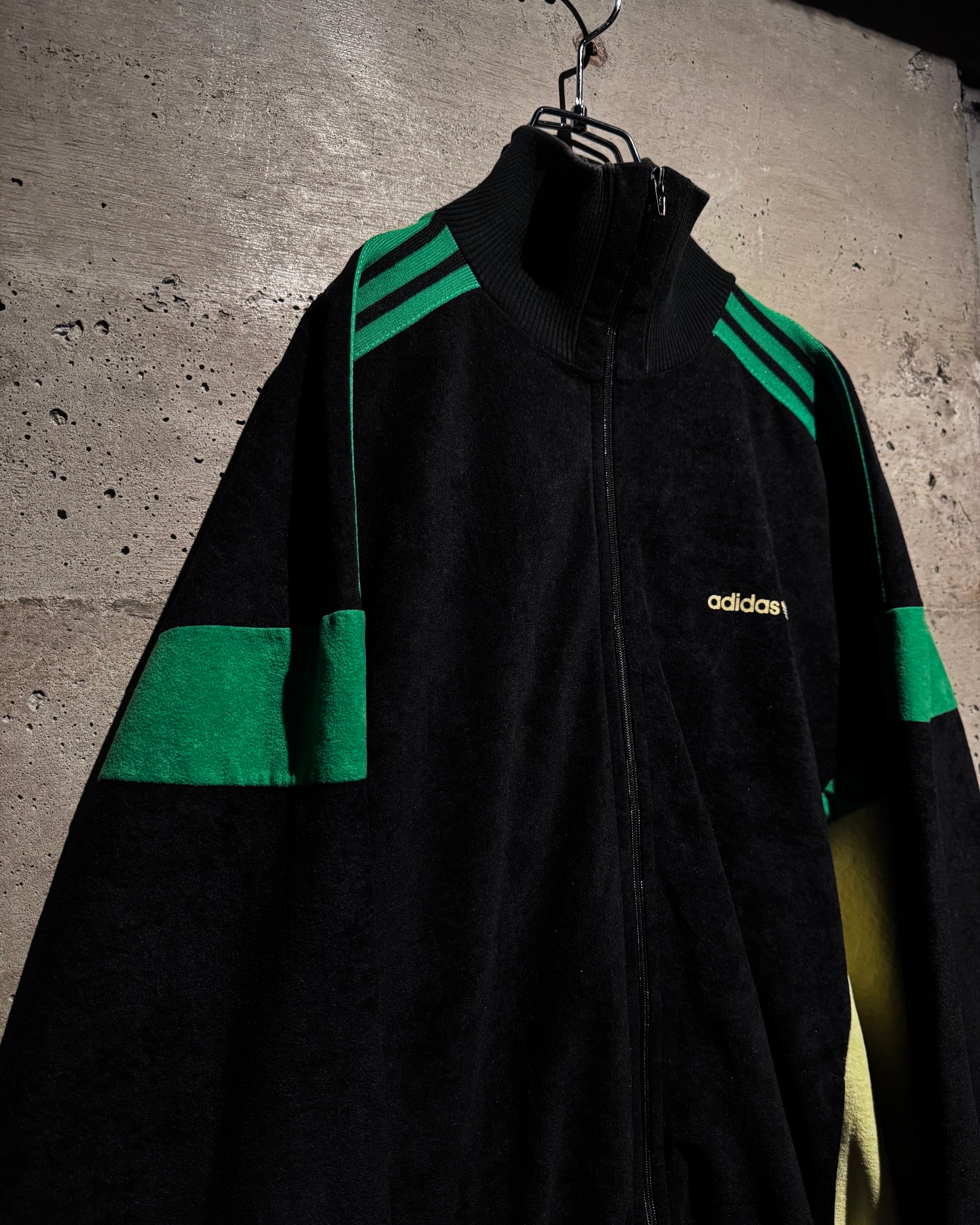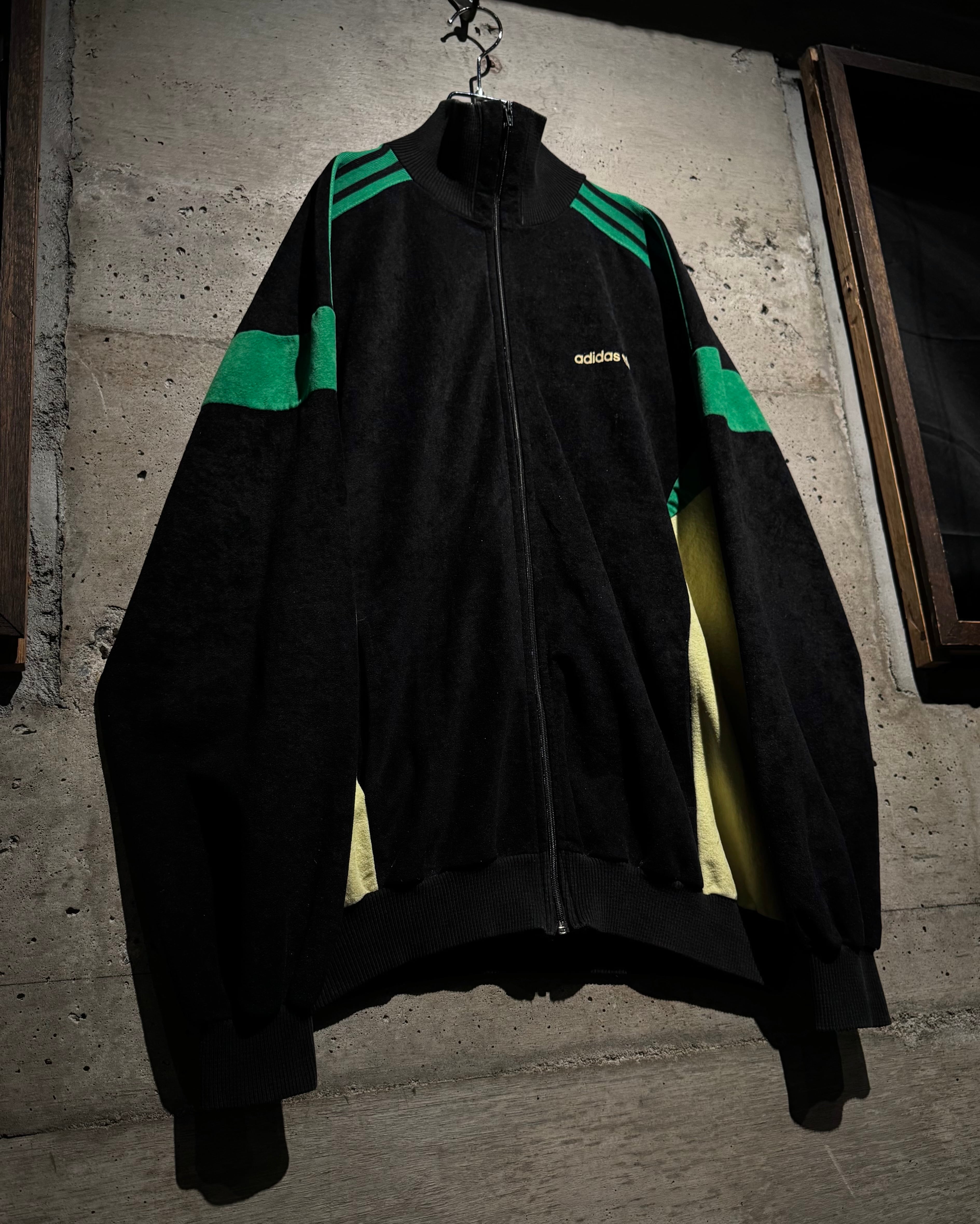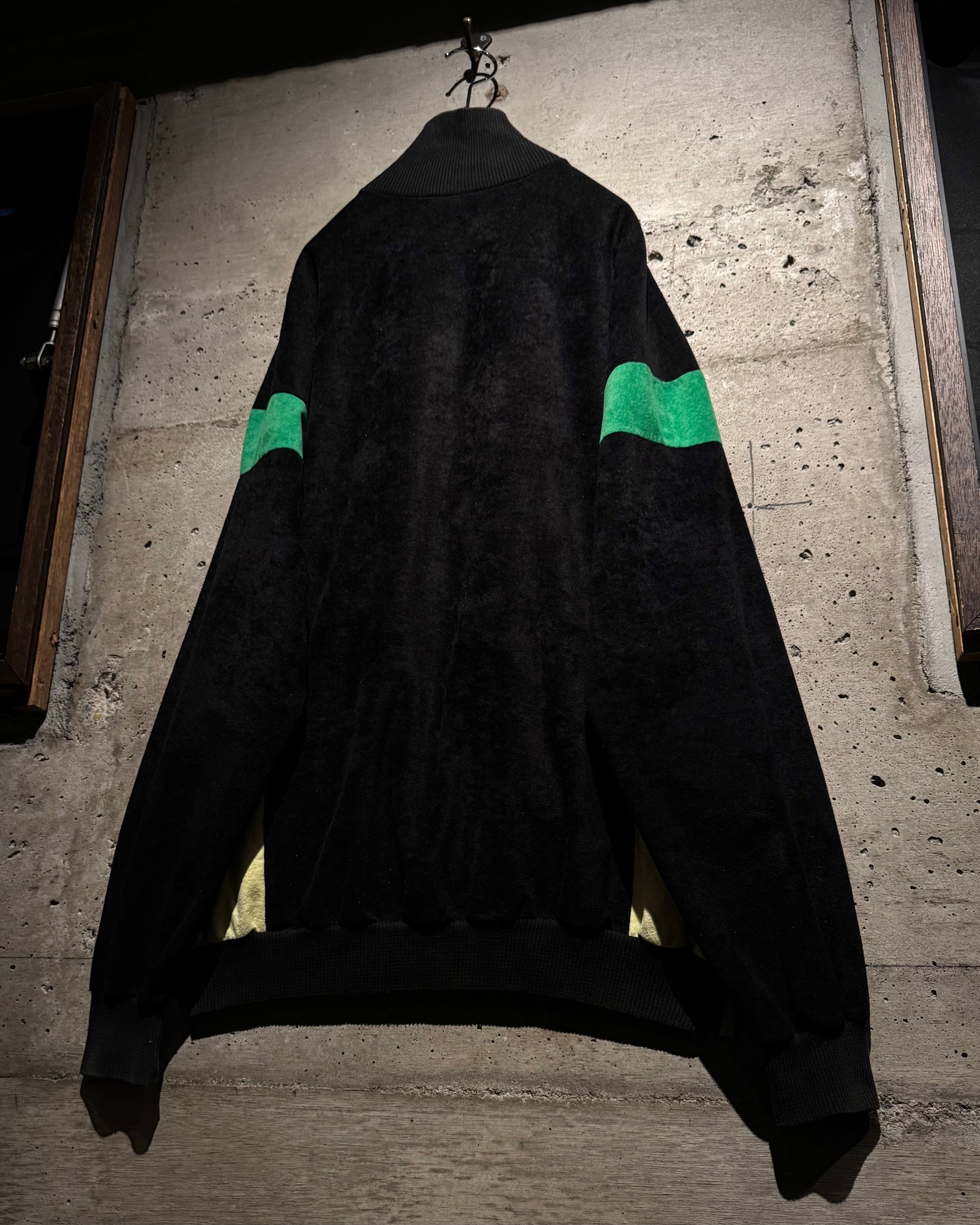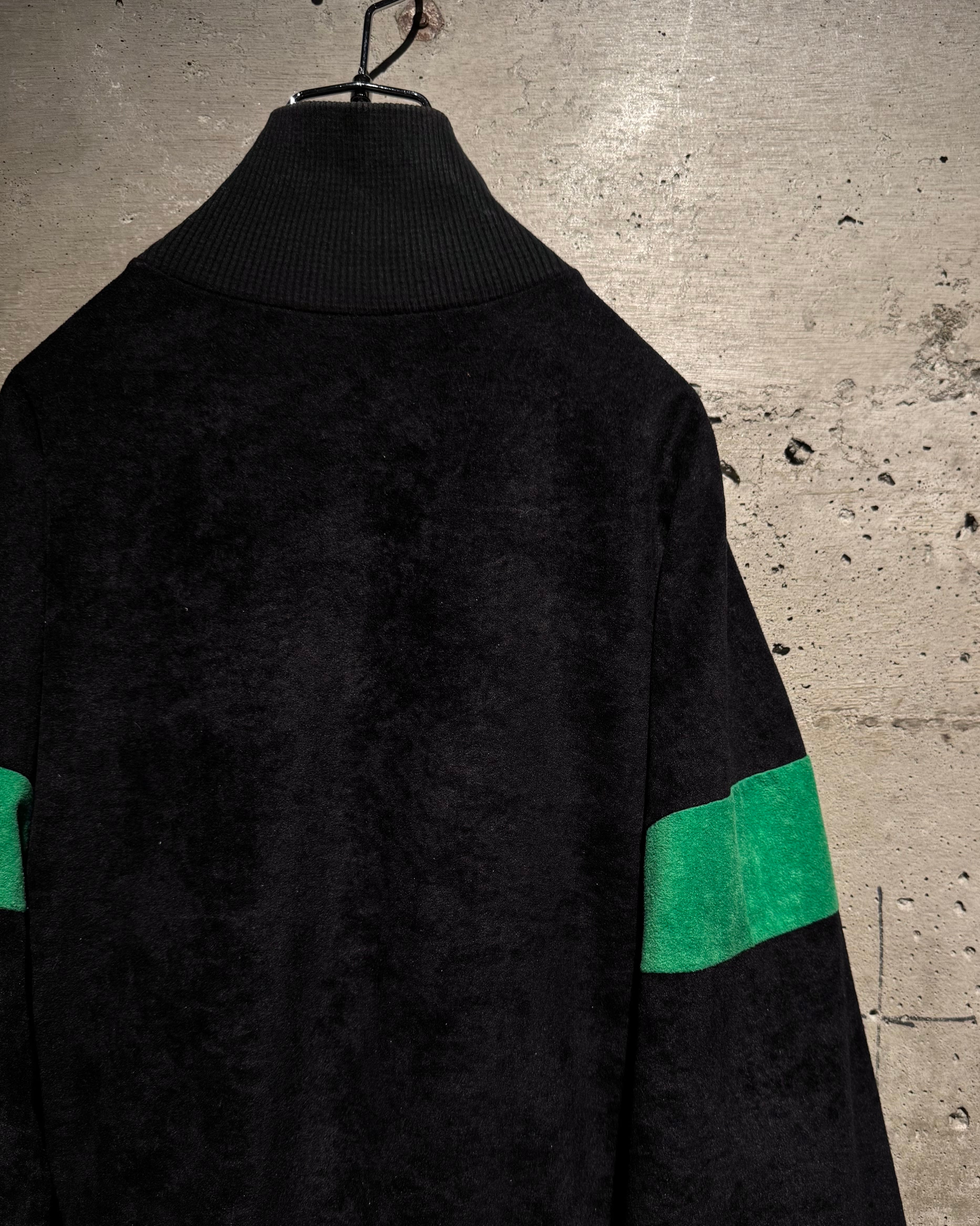 ブラック、鮮やかなグリーン、黄色の配色に、切替でエッジを効かせたデザインバランスが素晴らしい逸品。いわゆるジャージ素材では無く、"ベロア調"の素材を用いた稀少モデルです。