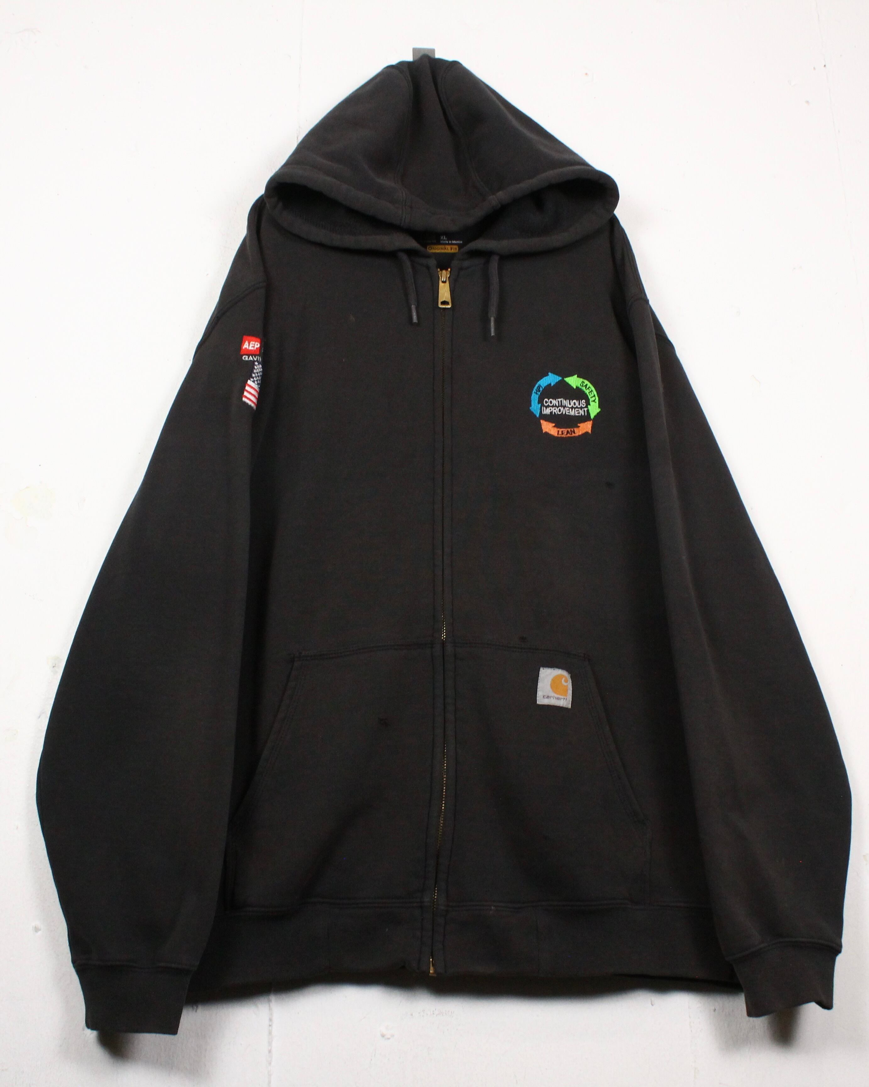 経年変化によってボディがサンフェードした“Carhartt”の定番でもあるジップフーディ。