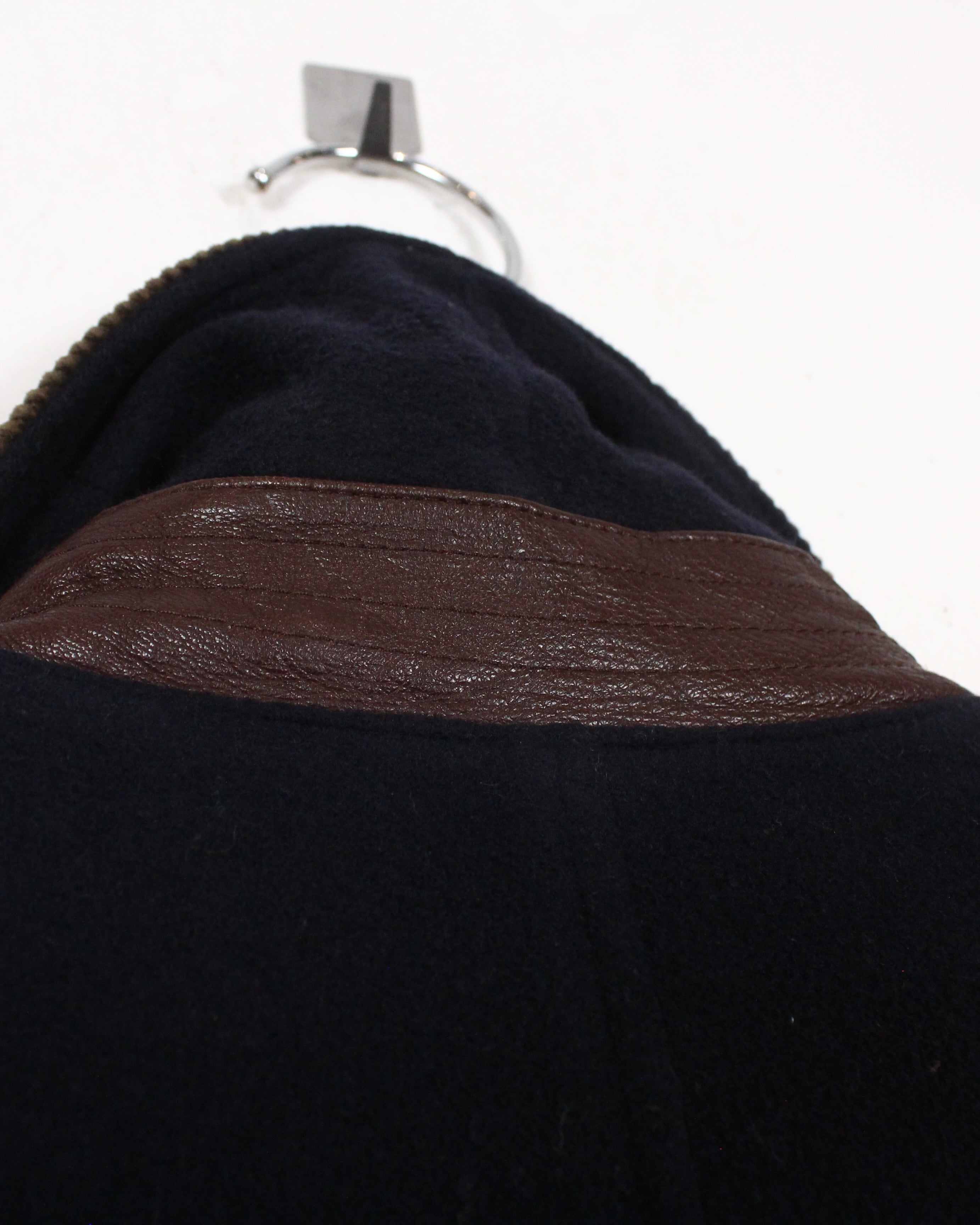 襟はコーデュロイ切り替えでクラシックな表情を持ちながら、スタンドカラー仕様にも変形可能な2WAYデザイン。フロントの大ぶりなフラップポケットや袖口、背面のレザーパイピングなど、ディテールの作り込みにもブランドの魂が宿っています。
