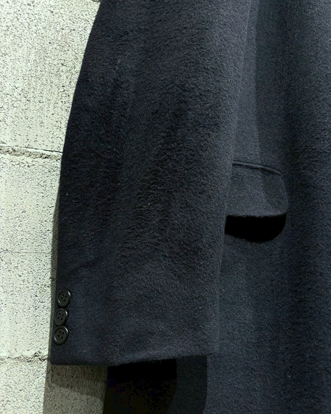フロントはミニマルな3ボタン、フラップポケットを採用し、無駄を省いたシルエットで、 上品さだけでなくストリートにも自然と馴染むバランスになっています。