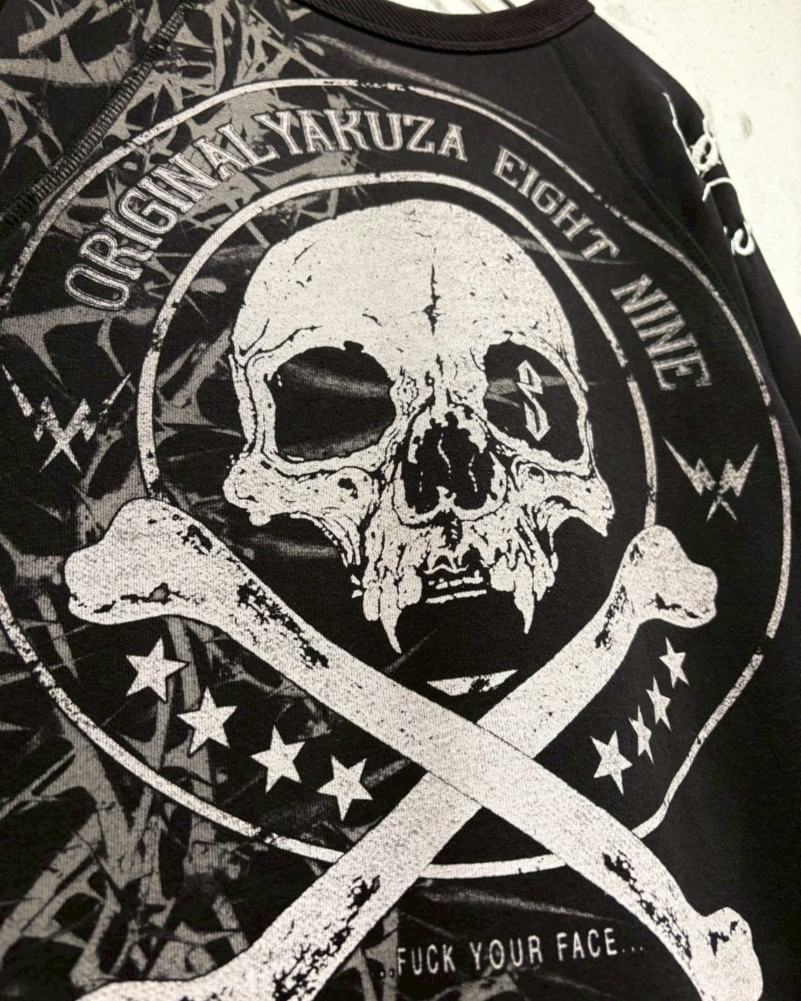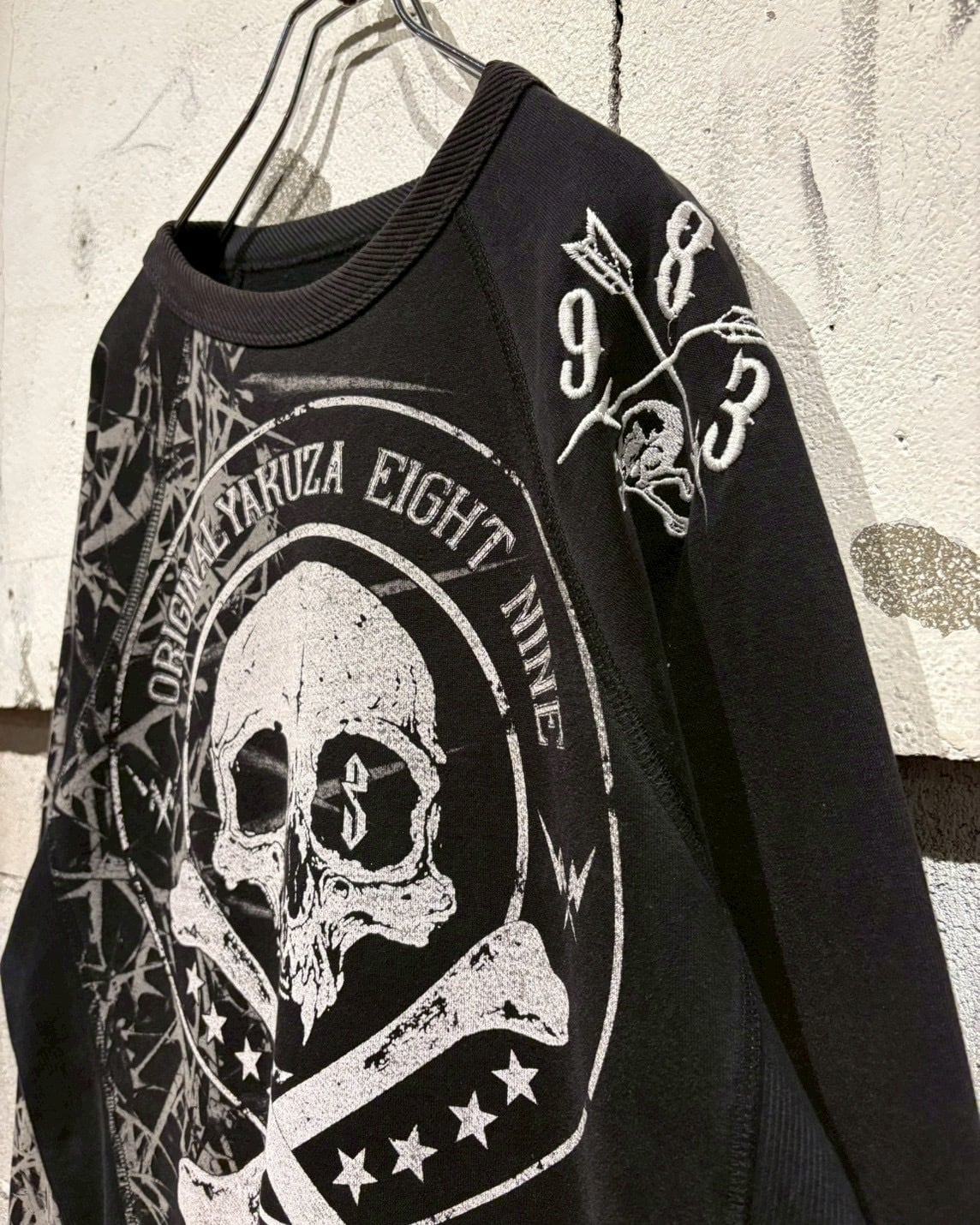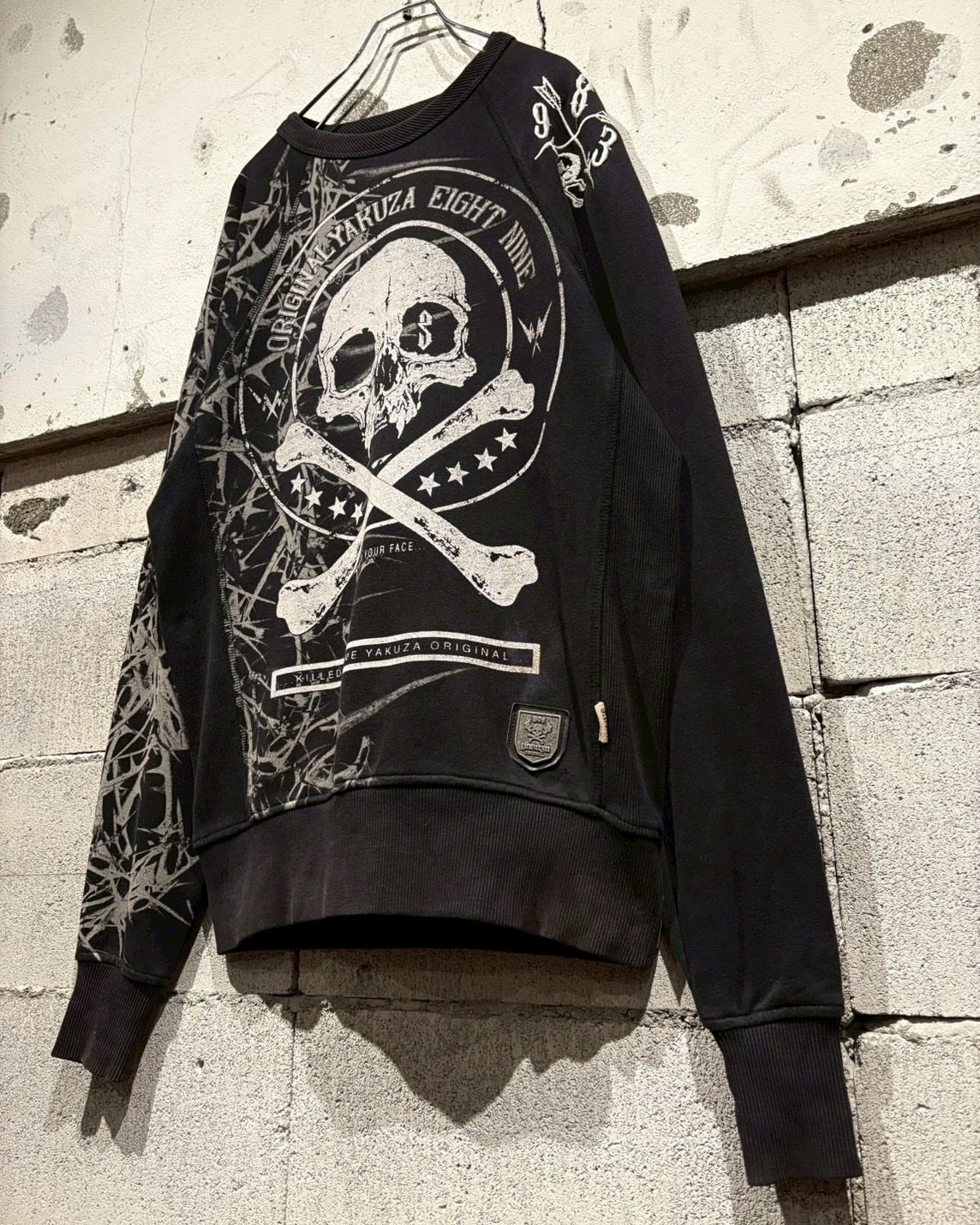 フェード感の良いブラックのボディに、ダークな雰囲気を漂わせるスカルのプリントを載せたプルオーバースウェット。