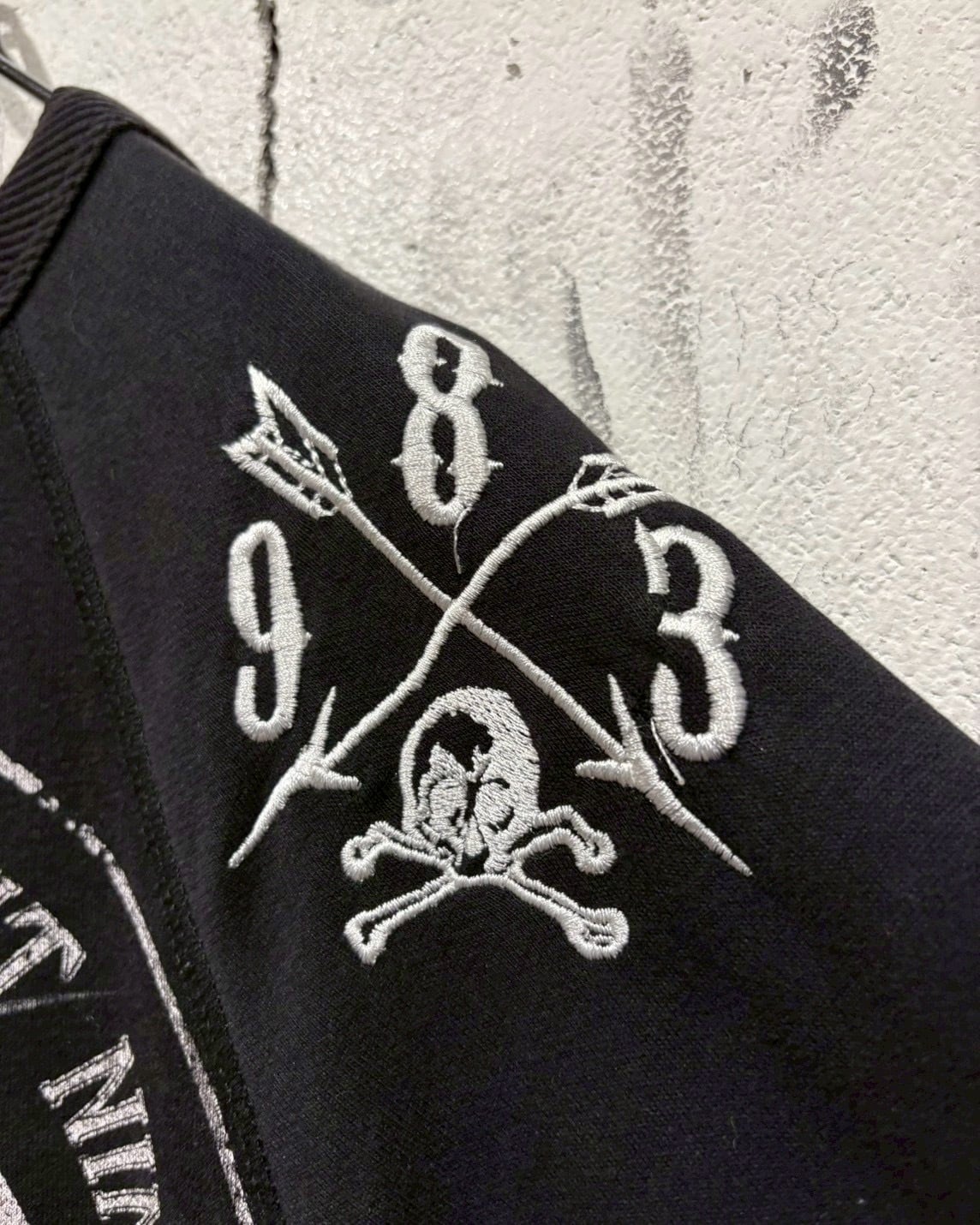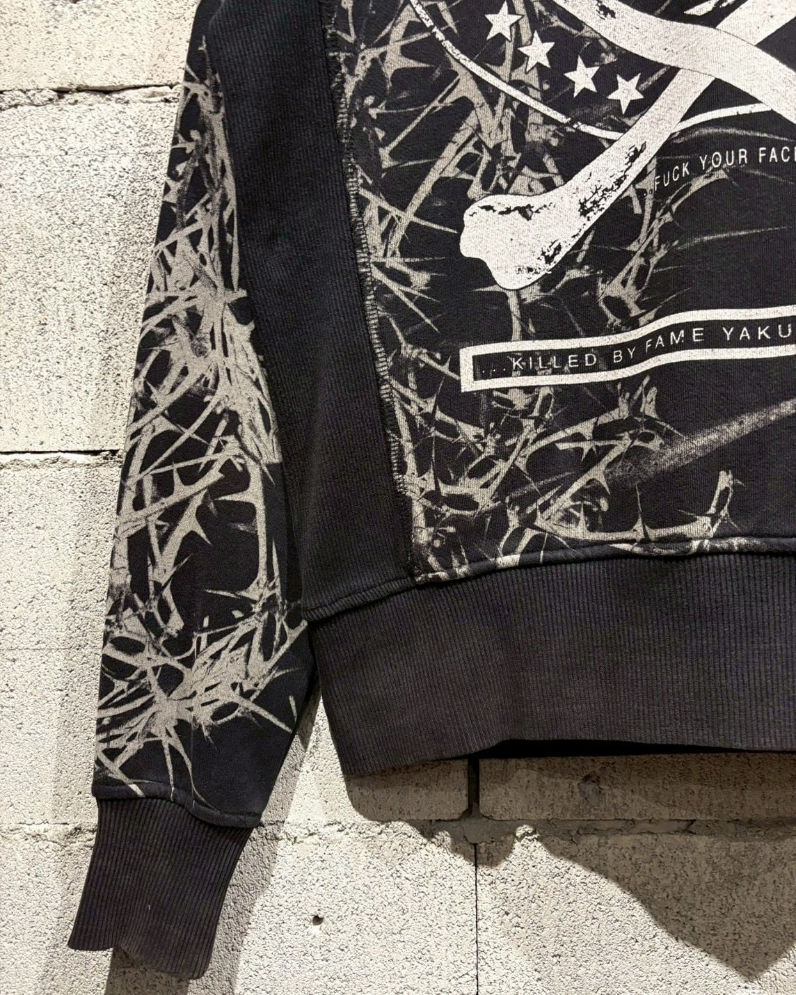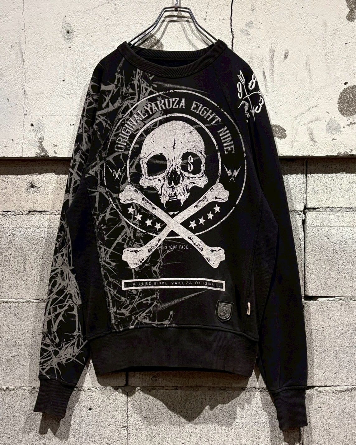 フェード感の良いブラックのボディに、ダークな雰囲気を漂わせるスカルのプリントを載せたプルオーバースウェット。