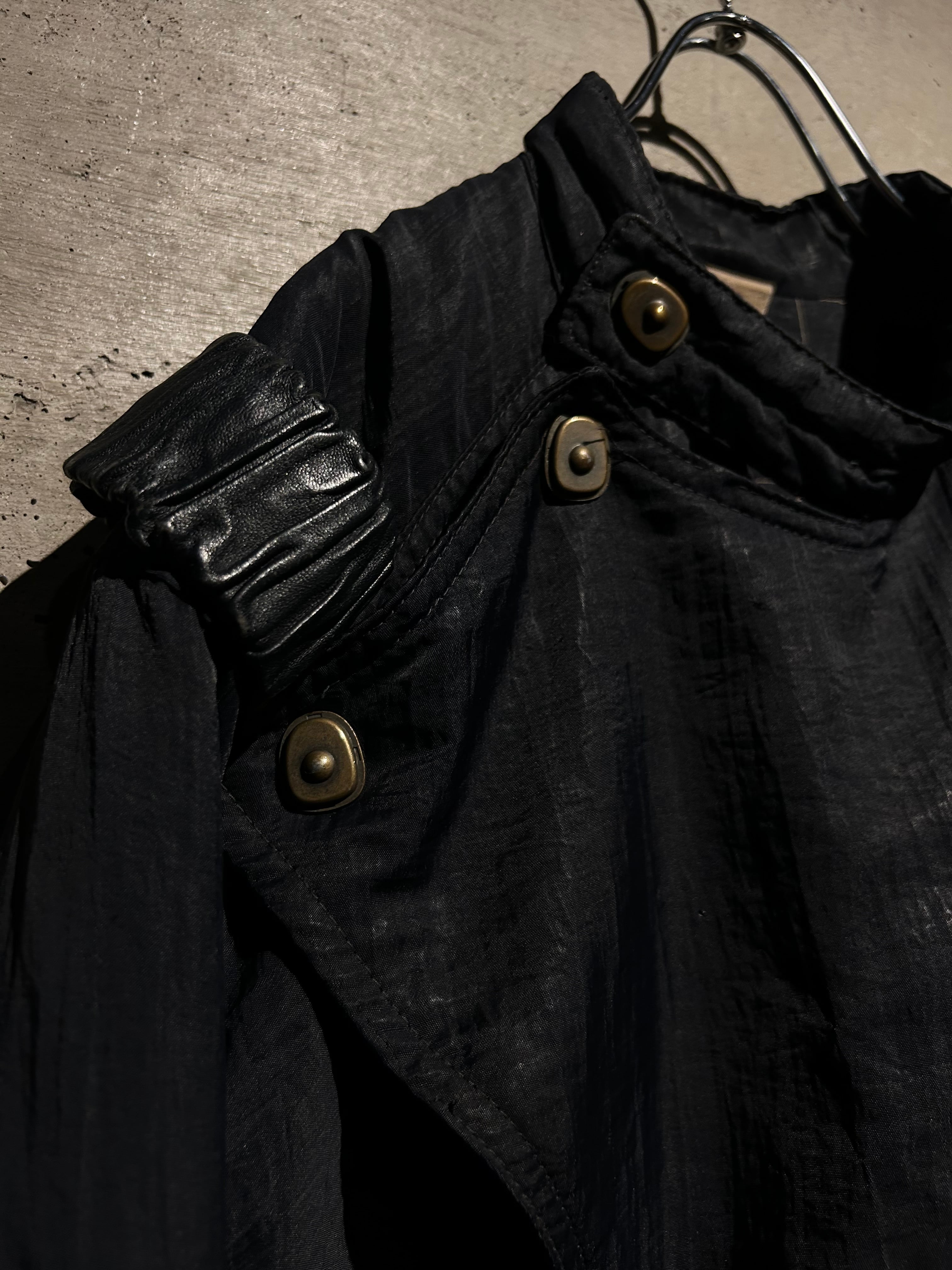 まず目を惹くのは、フロントに配されたフラップ。そして肩周りや裾のシュリンクが効いたレザーベルトの装飾など、現代のデザイナーズにも負けない独創的なデザインが唯一無二な表情を生み出しています。