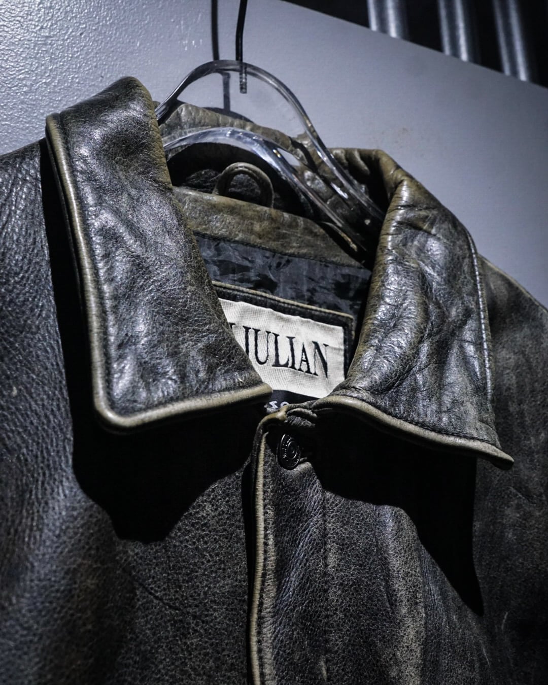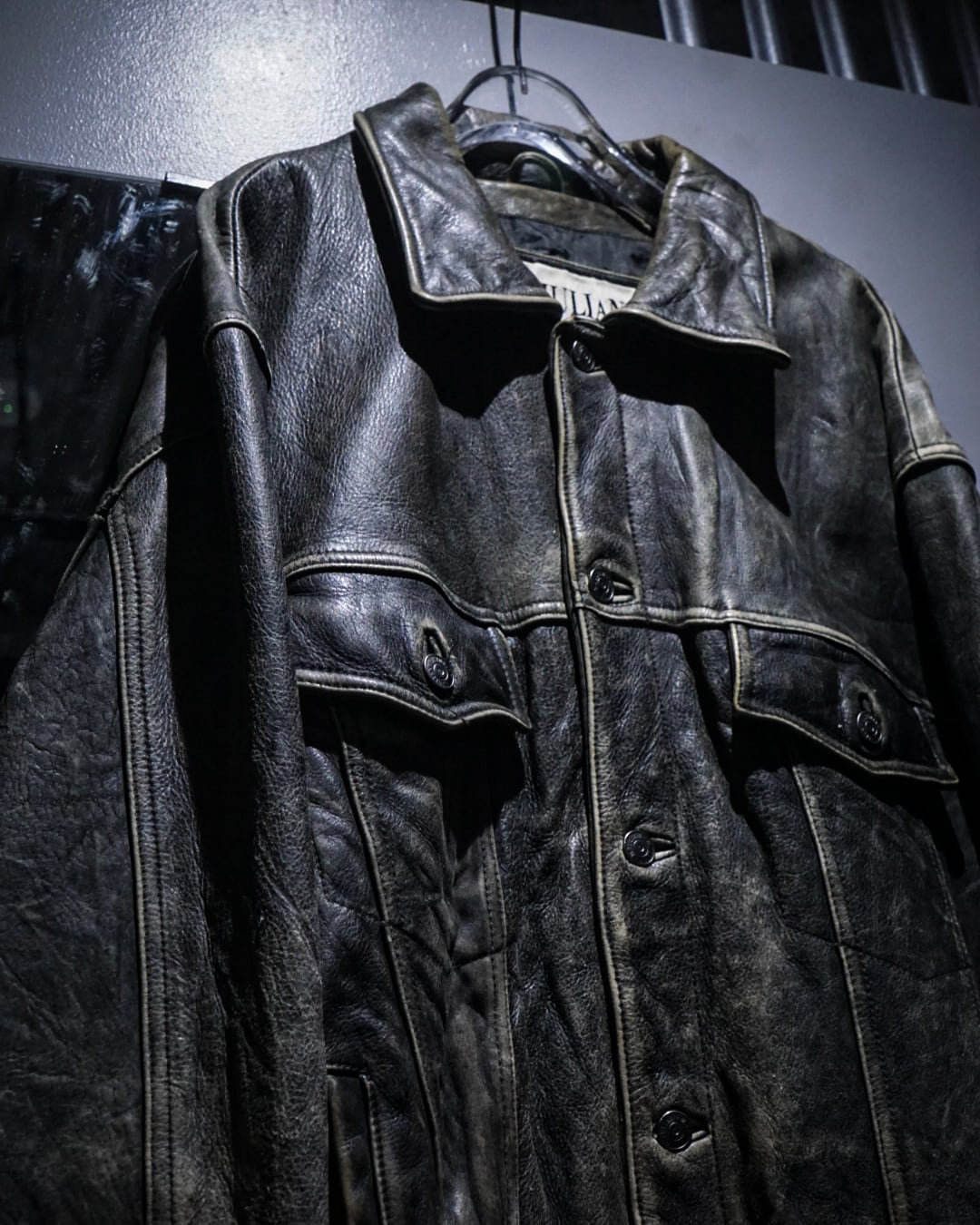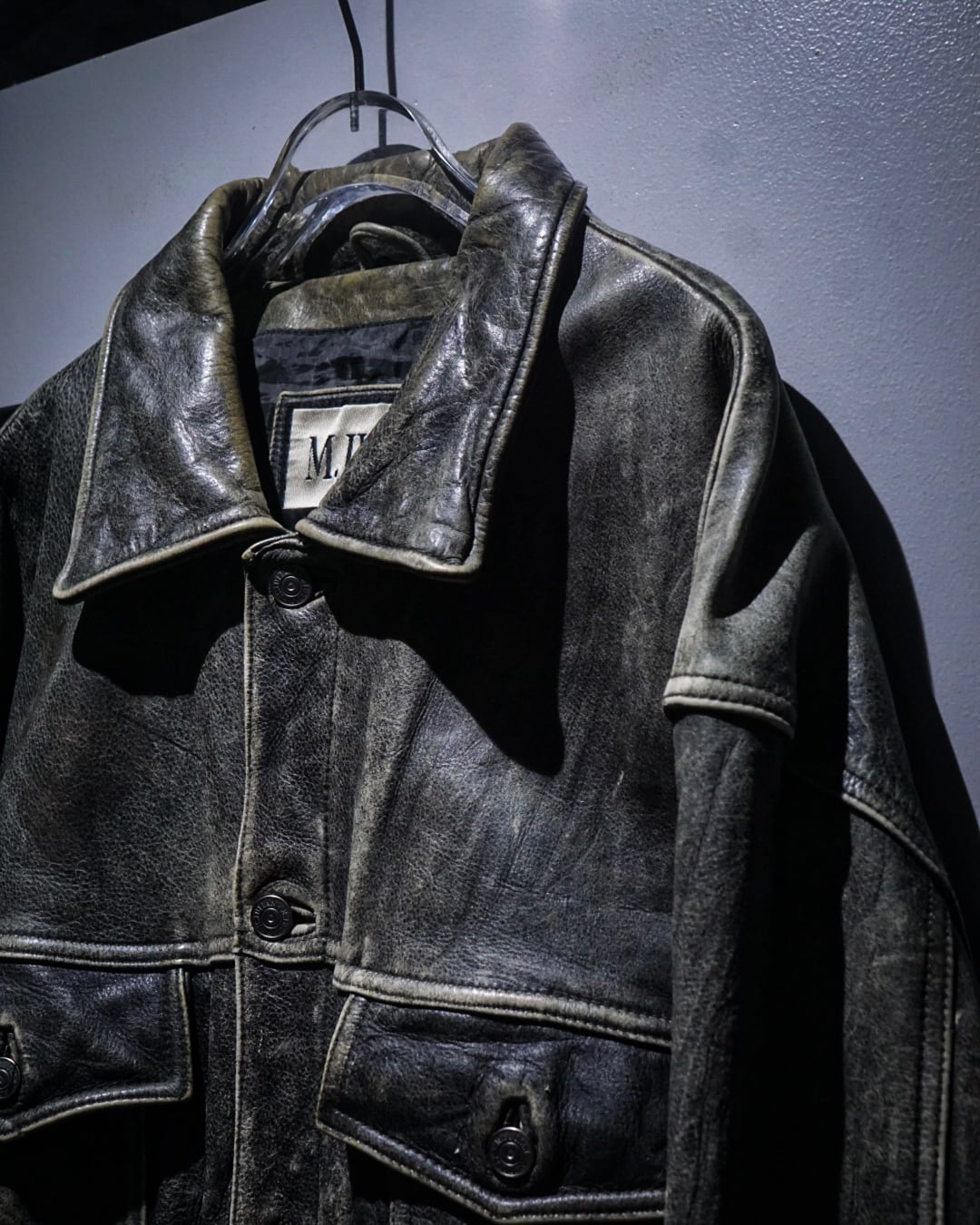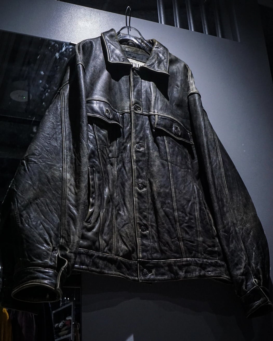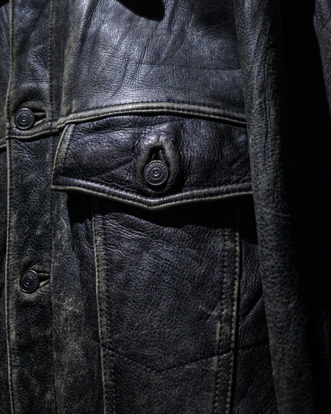 加工ではなく、時間だけが刻めるリアルなエイジング。レザーの奥深さをそのまま味わえる、存在感抜群のトラッカージャケットです。