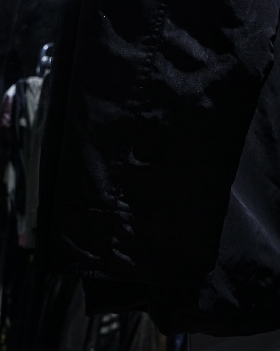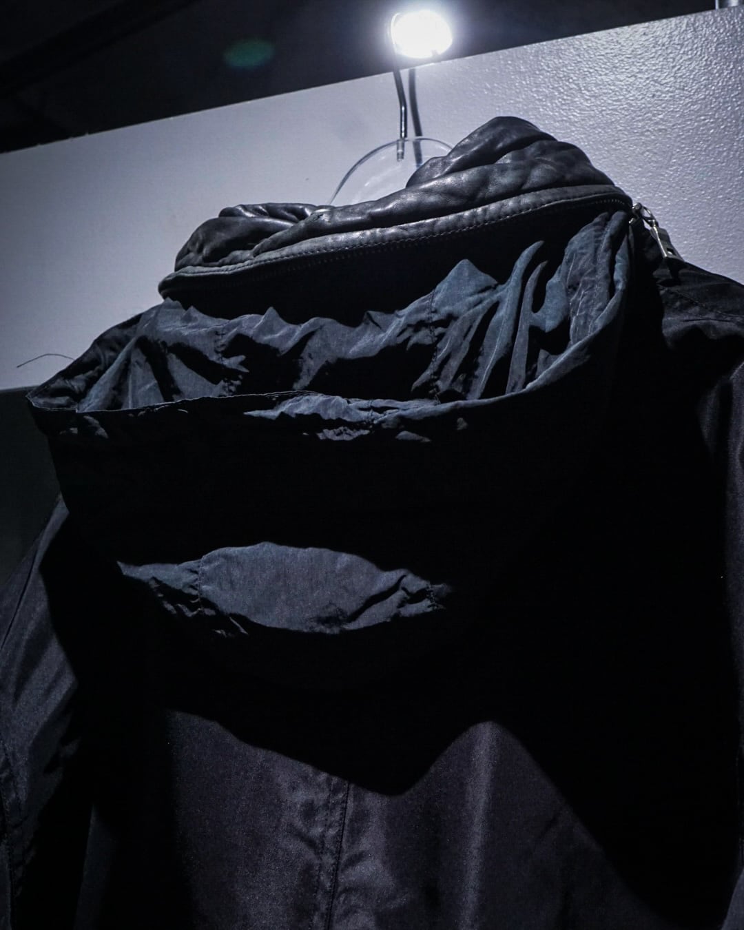 またフードはビルトインタイプで、必要な時にだけ取り出して使えるギミック仕様。無駄のないシルエットを保ちながら、しっかりとギミックが盛り込まれており、服好きの心がかなりくすぐられる1着かと。