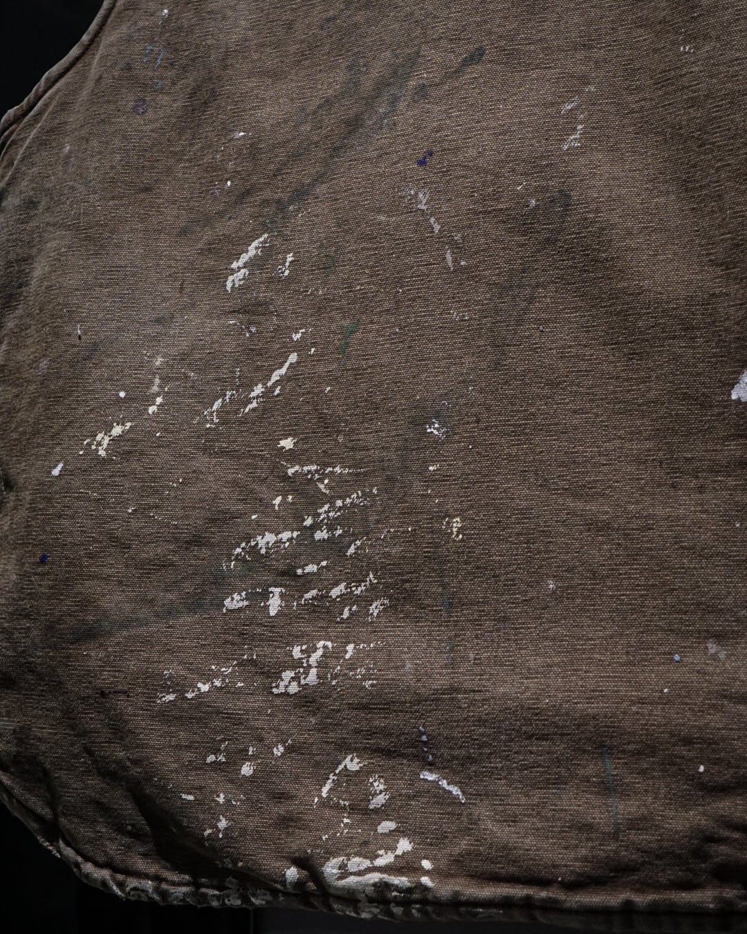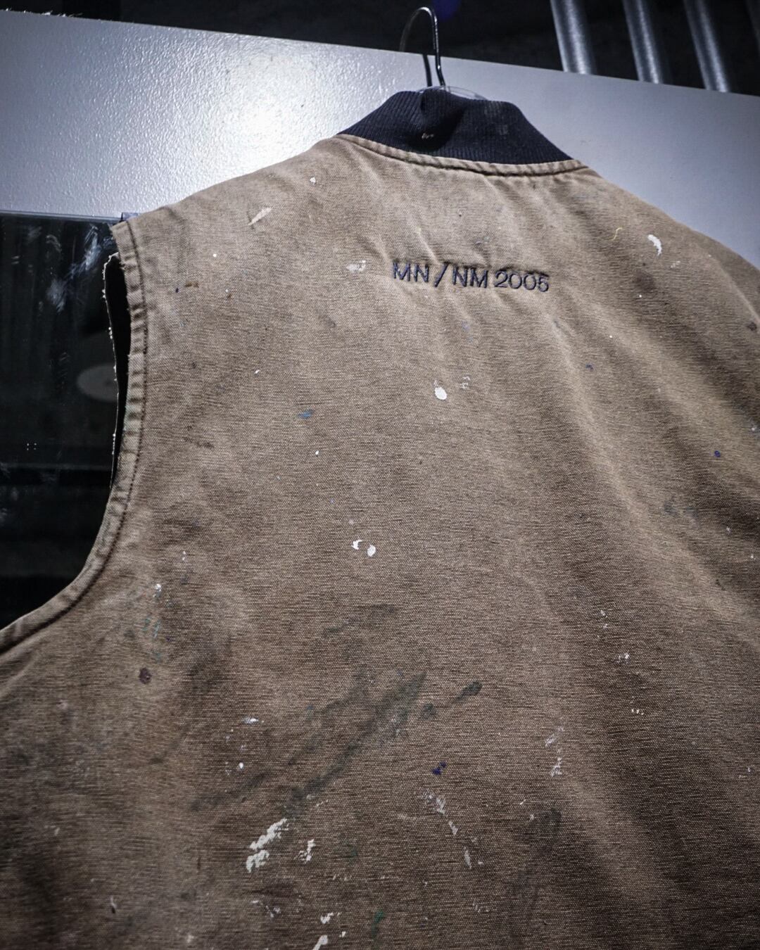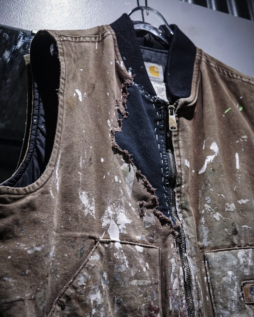 撥水性と耐風性に優れた12オンスのヘビーウェイトコットンダックを用いたアークティックベスト。定番のアイテムですが、こちらは前所有者のカスタムに服好きの心が擽られる1着。