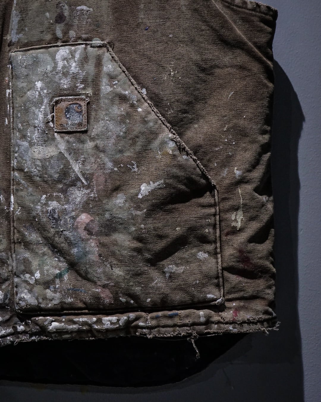 ボディ全体にはペイント、そしてフロントにはボディとは異なるダック生地をドッキング。ハンドステッチの粗野さやペイントの荒さにカスタムセンスを感じられますね。
