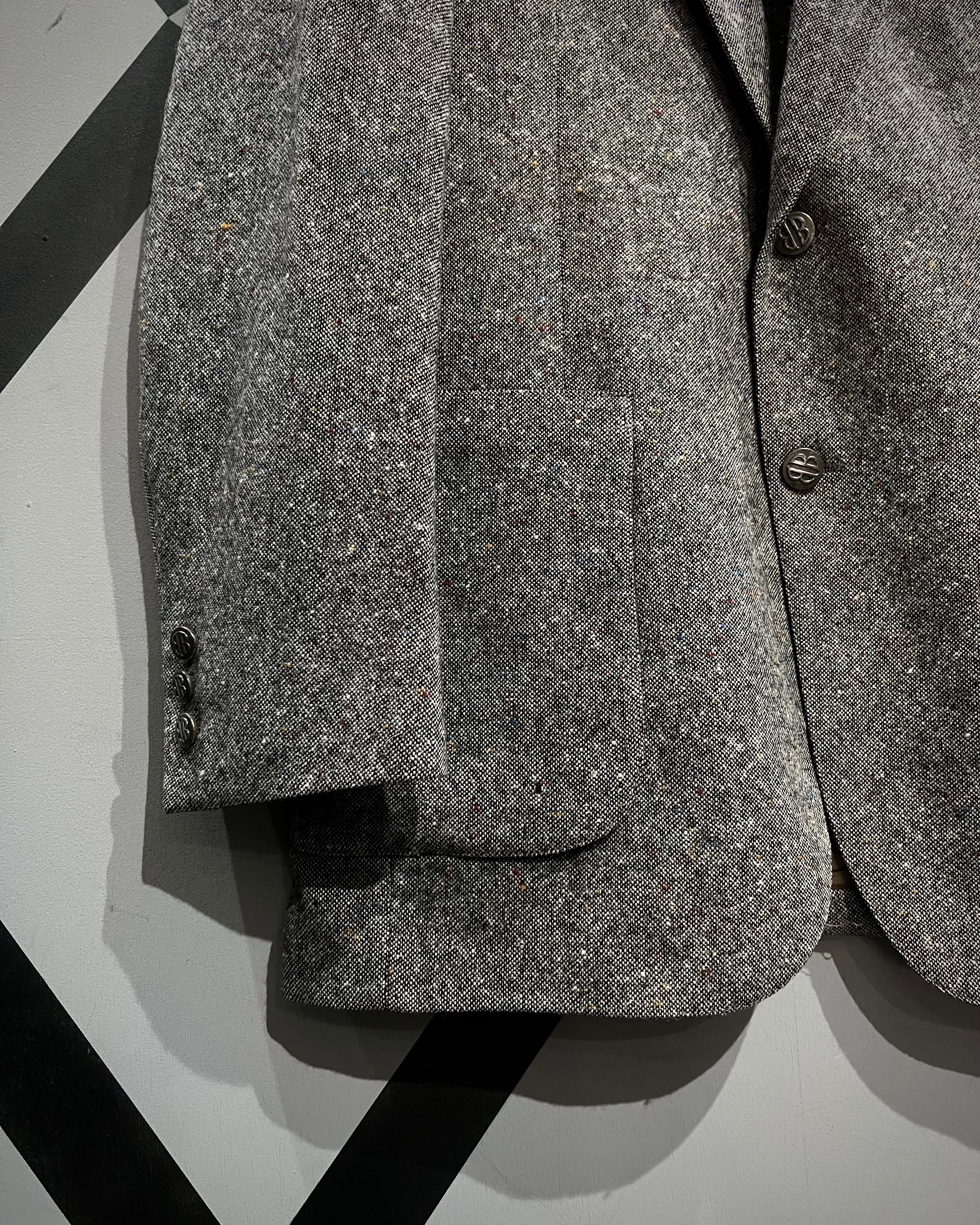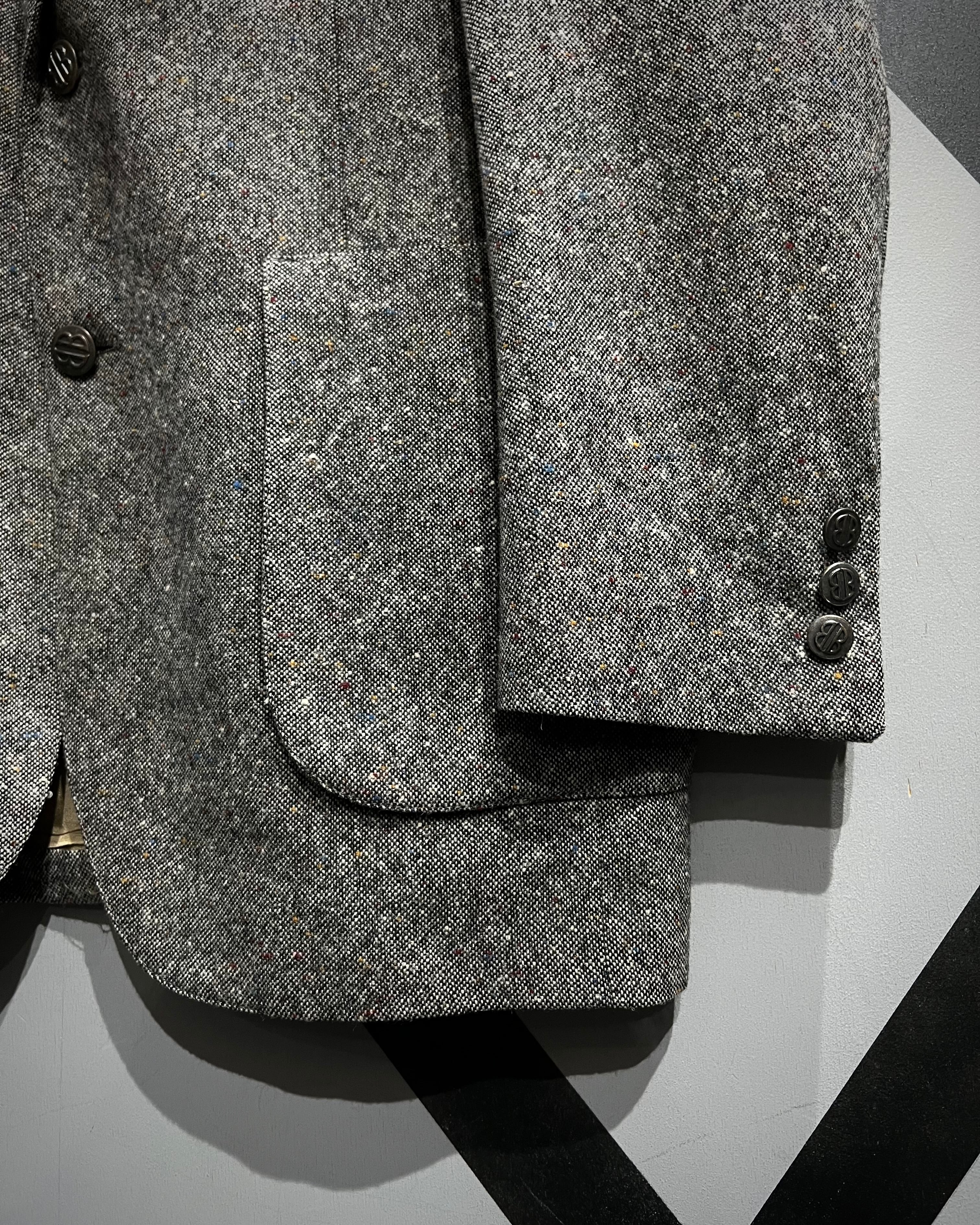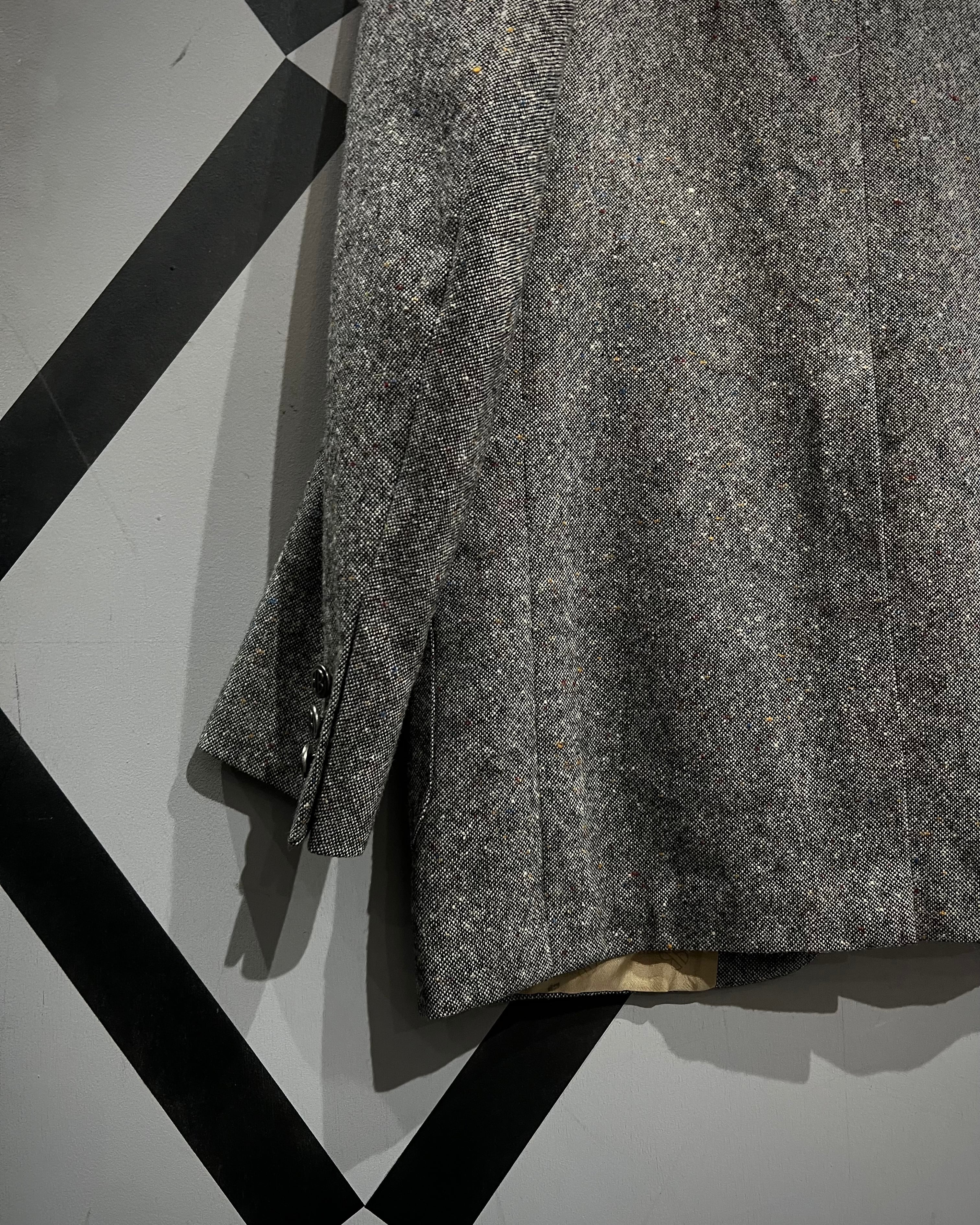 白×黒のツイード生地にカラフルなネップが散り、深みのある表情がヴィンテージならではの雰囲気を漂わせています。