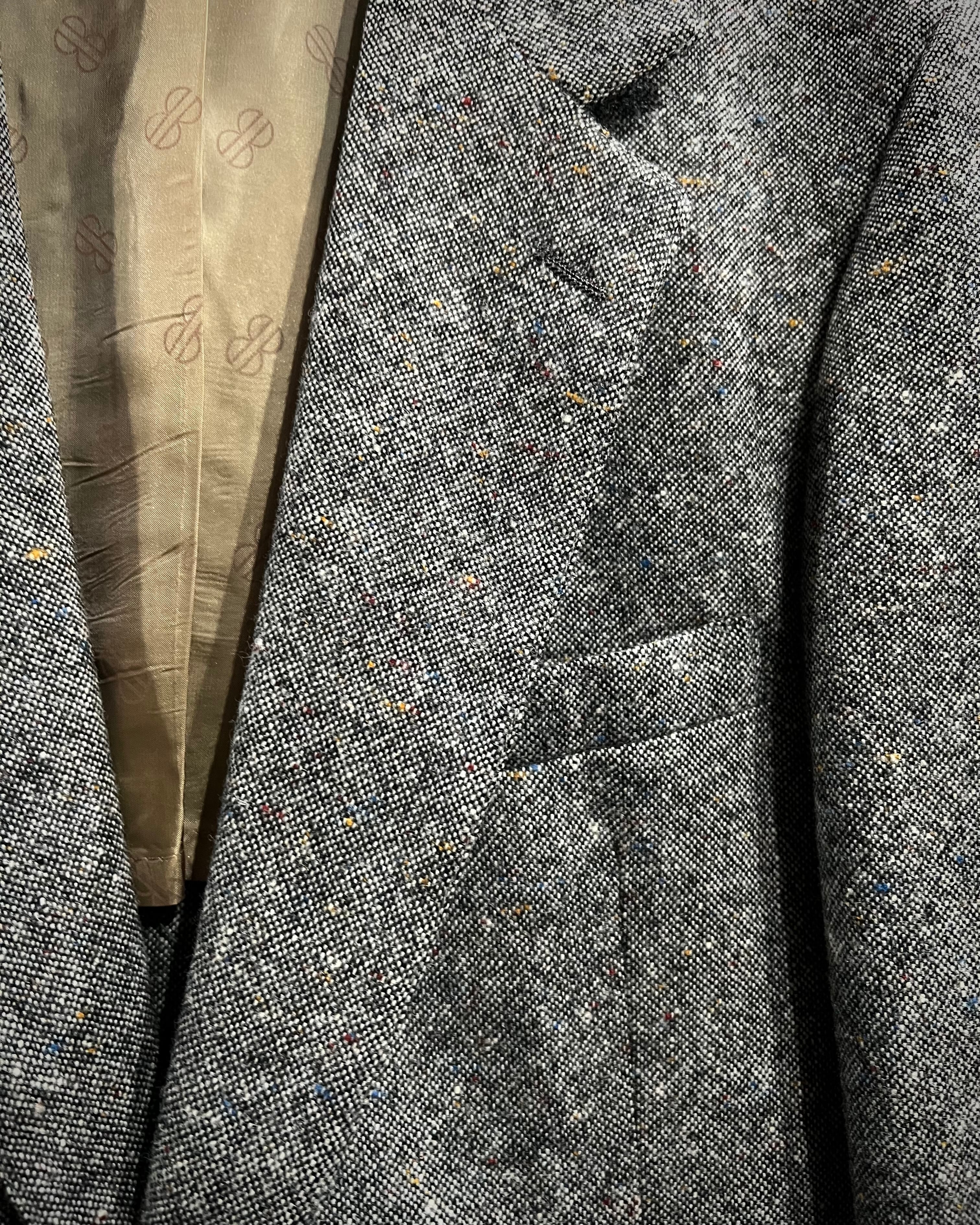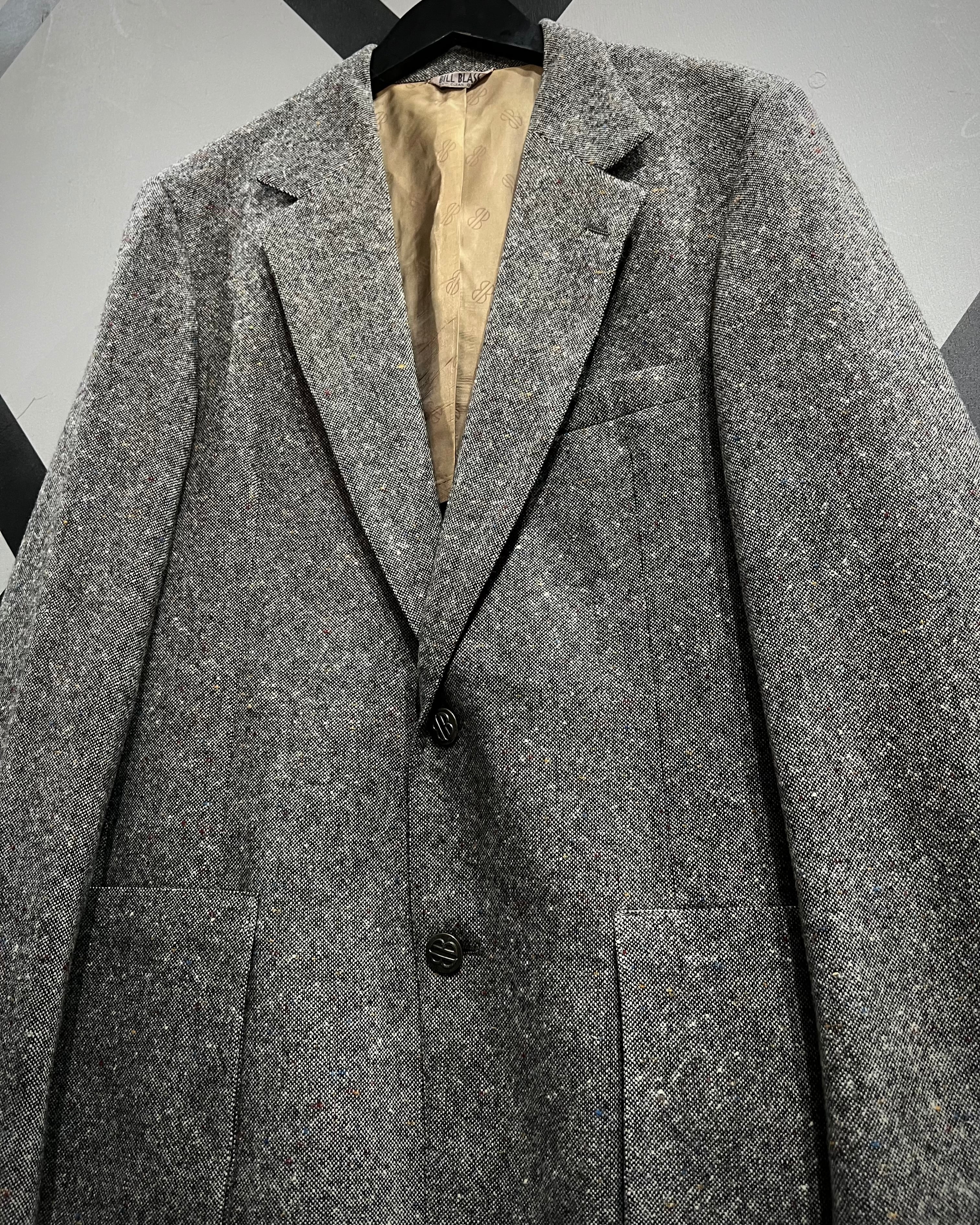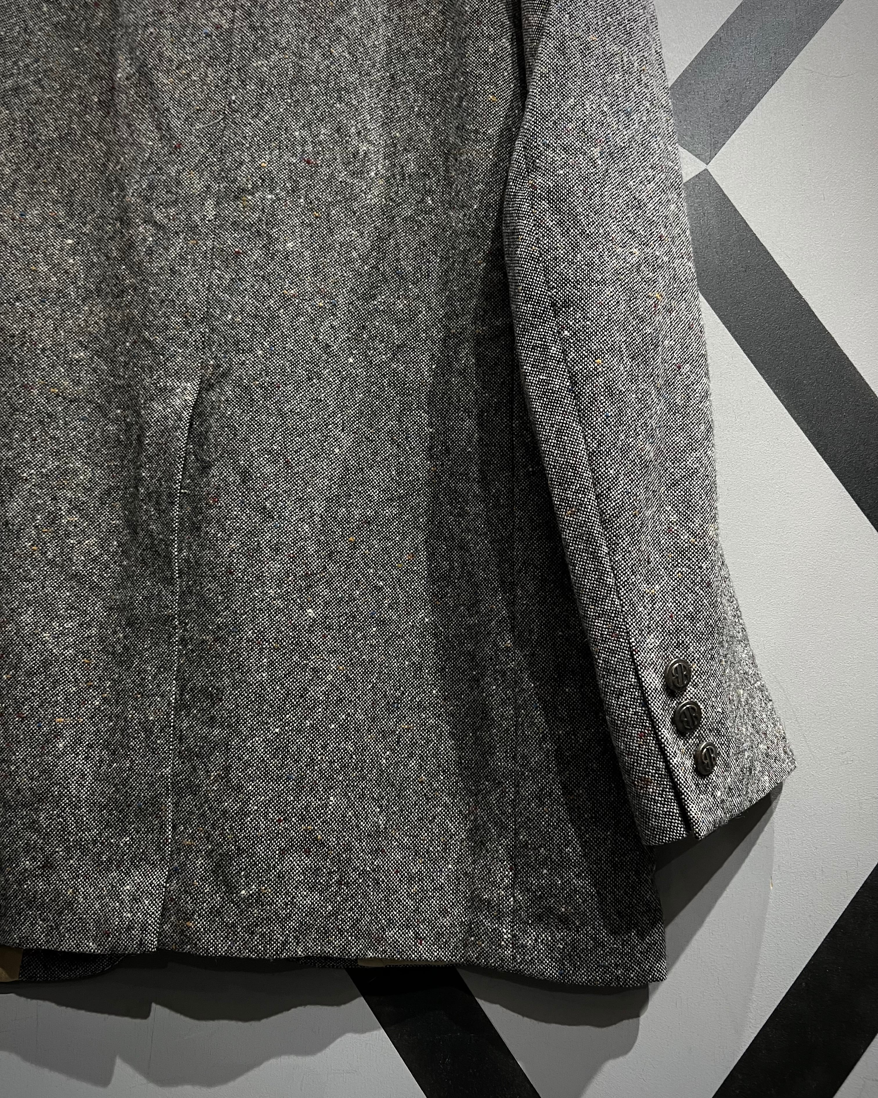 白×黒のツイード生地にカラフルなネップが散り、深みのある表情がヴィンテージならではの雰囲気を漂わせています。