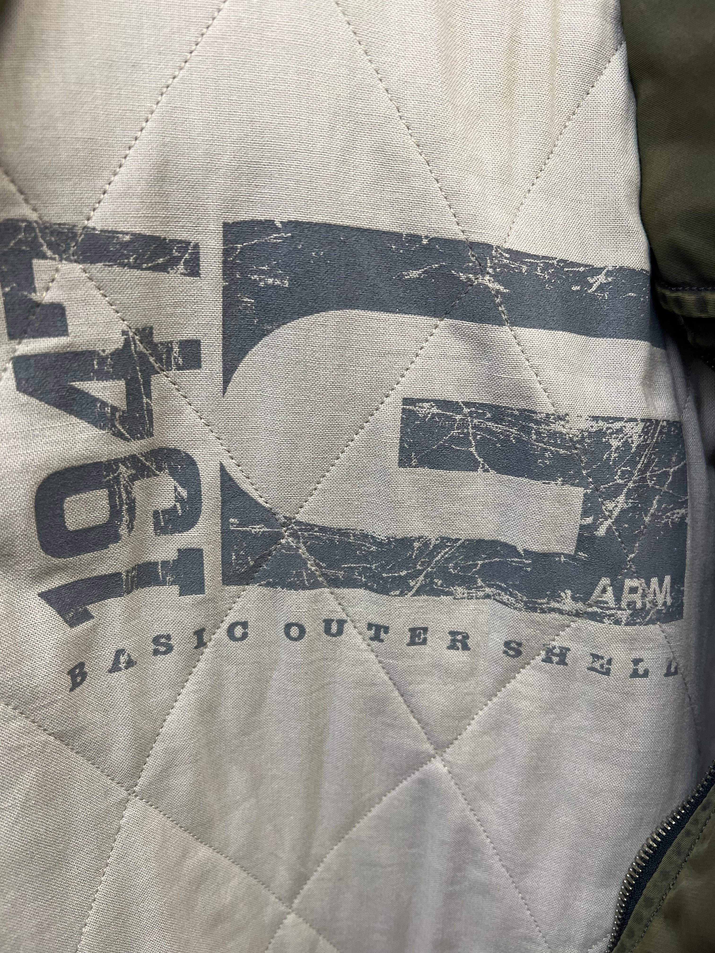 素材はわずかに光沢を含むオリーブカラーのナイロンを採用し、アームのワッペンが程よくアクセントに。
