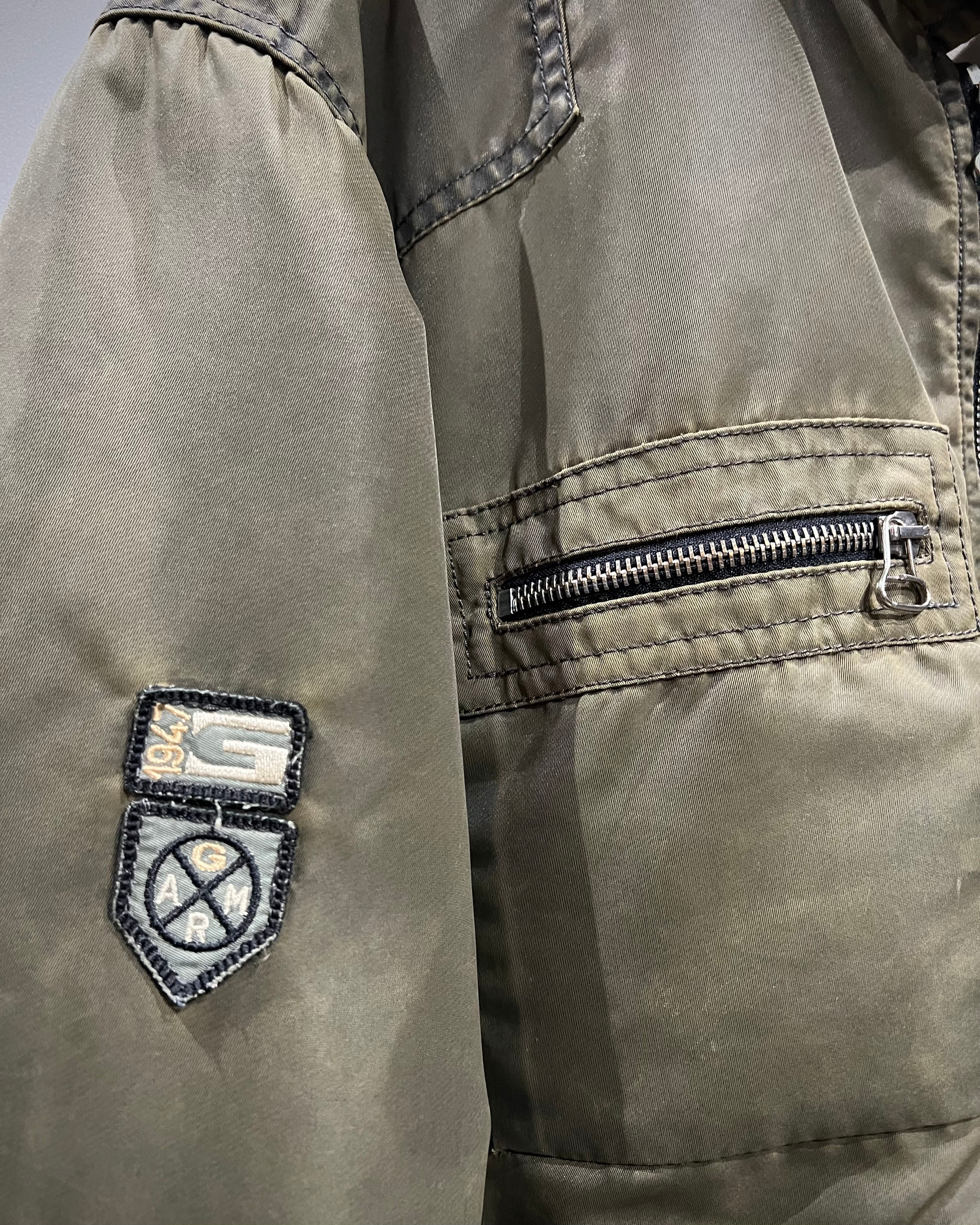 イタリアメイドらしい端正な空気を纏いながら、ミリタリーの無骨さとストリート要素が独特のバランスで融合したジャケット。