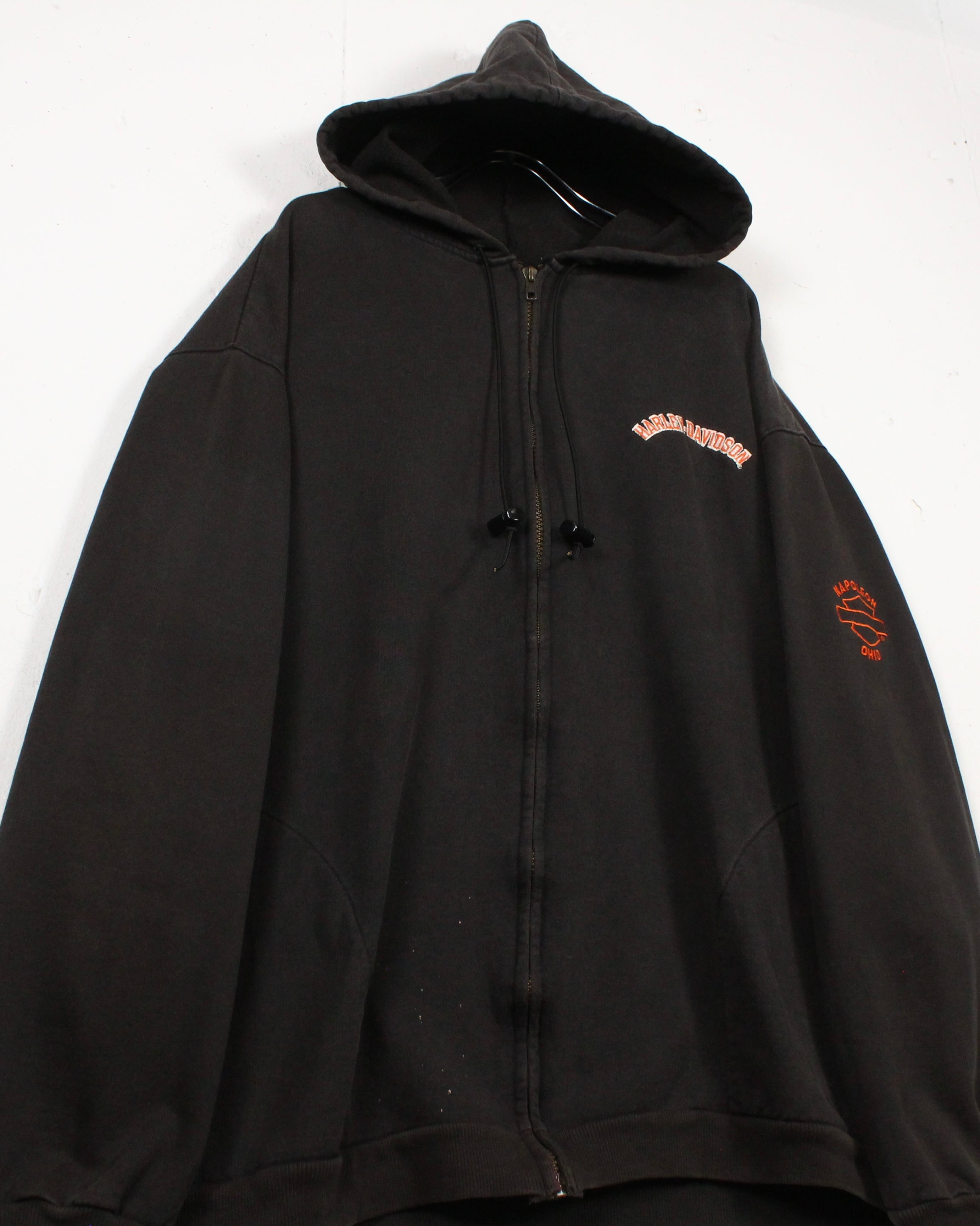 ほどよいフェードが雰囲気抜群の、“Harley-Davidson”のジップフーディー。
