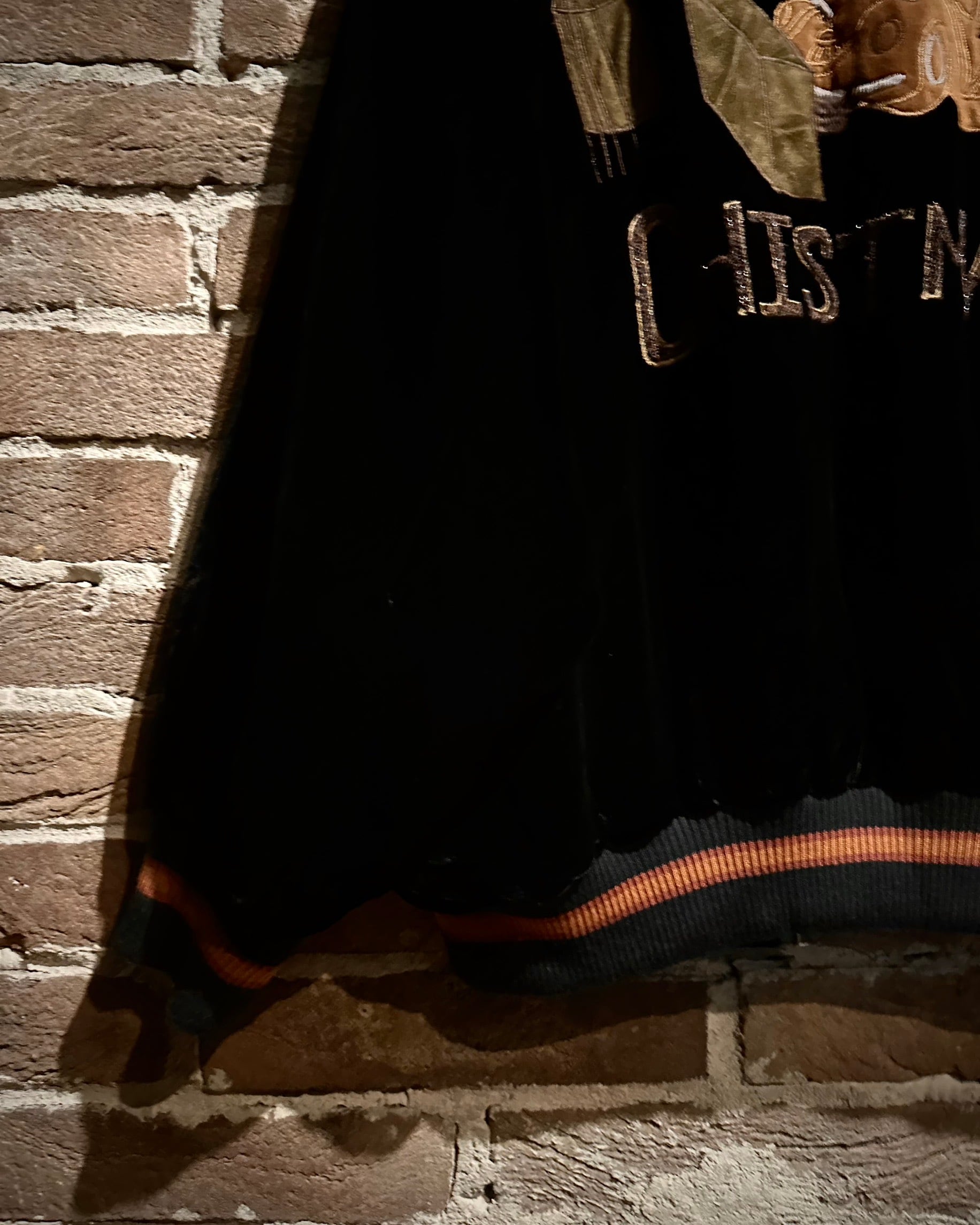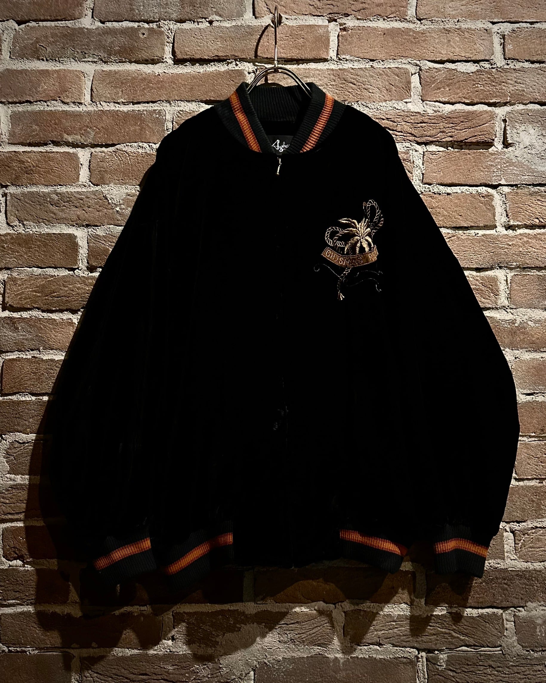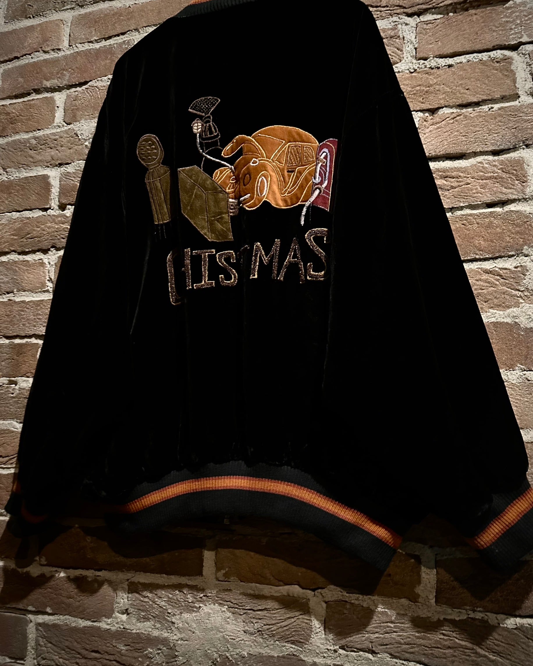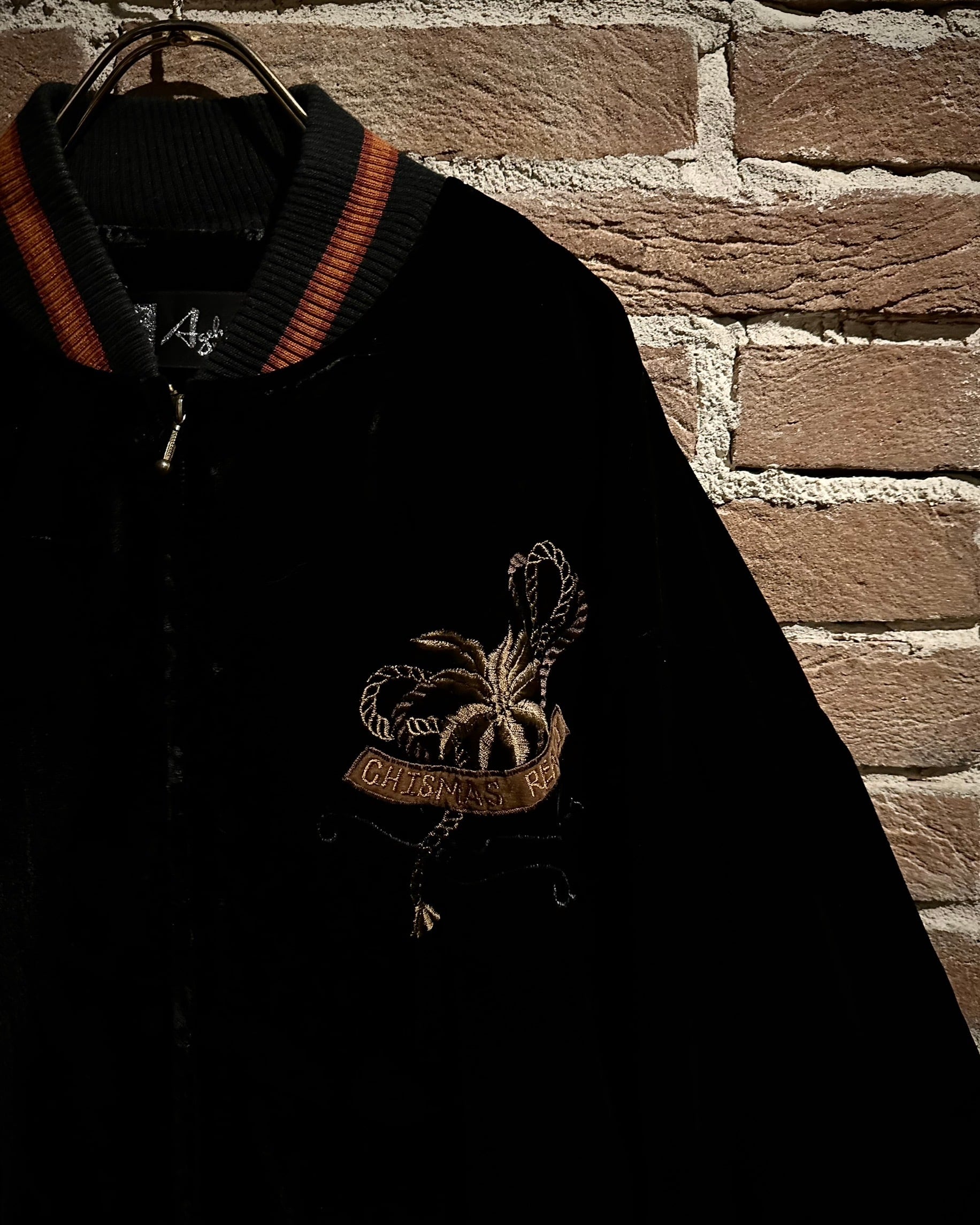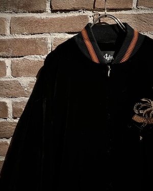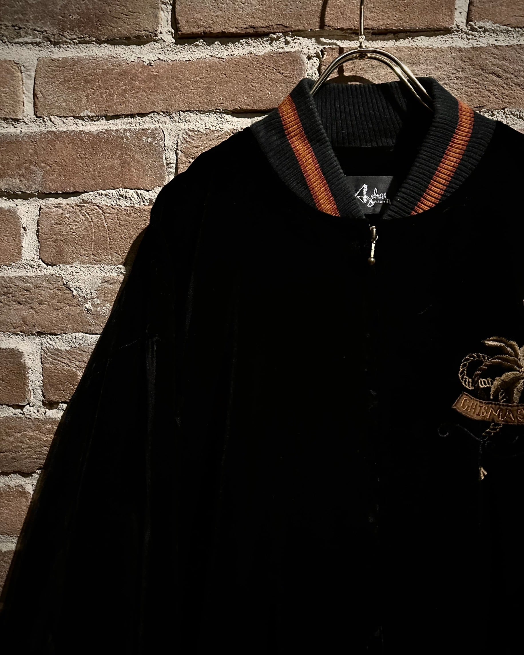 深いブラックベロアのボディに、独特の光沢が静かに浮かび上がるヴィンテージボンバージャケット。