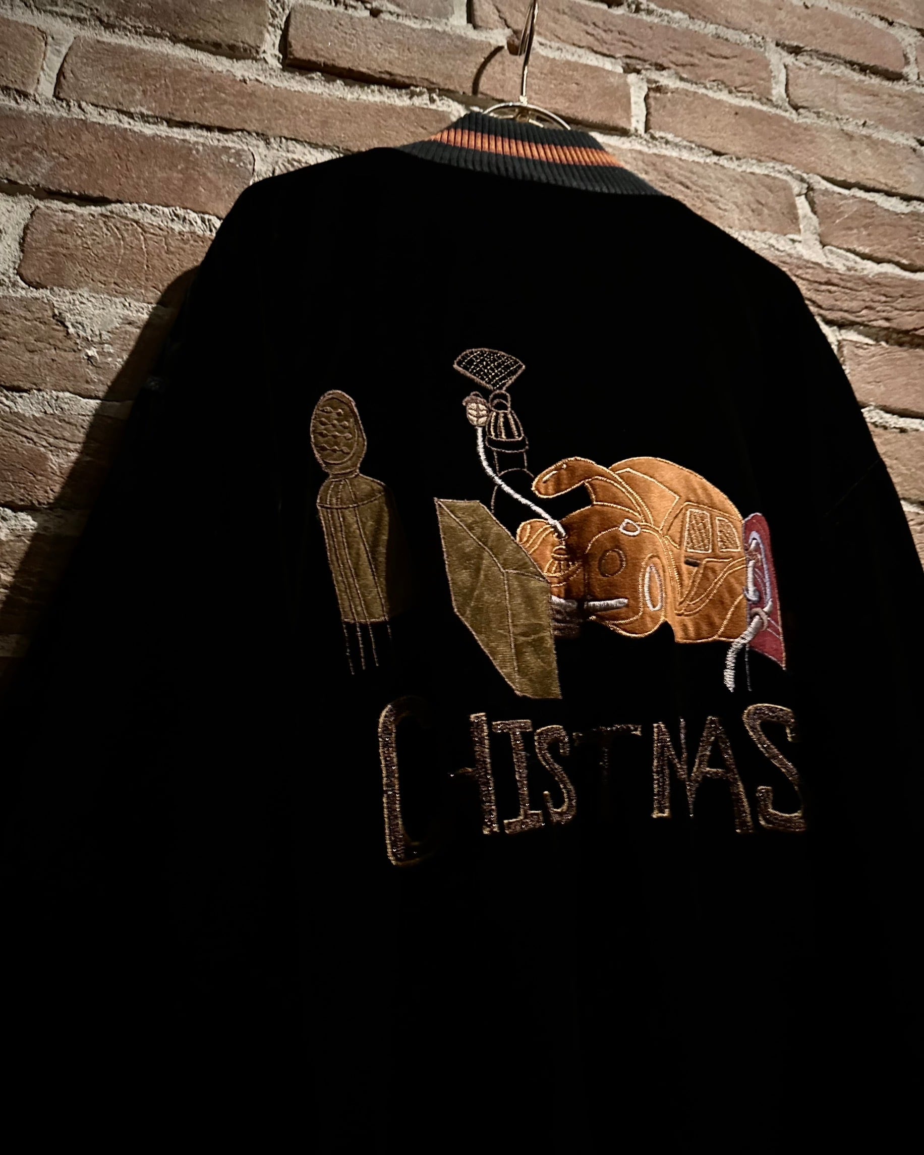 胸元にはワンポイントの刺繍、背面には思わず目を奪われるユーモラスでアートライクな“CHISTMAS”刺繍。程よい抜け感がジャケット全体に柔らかな温度を与えてくれます。