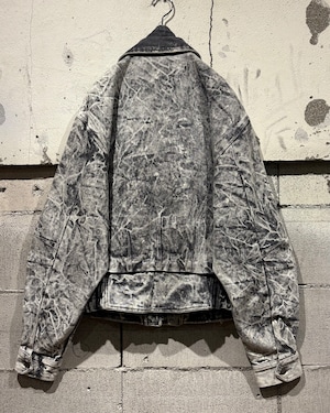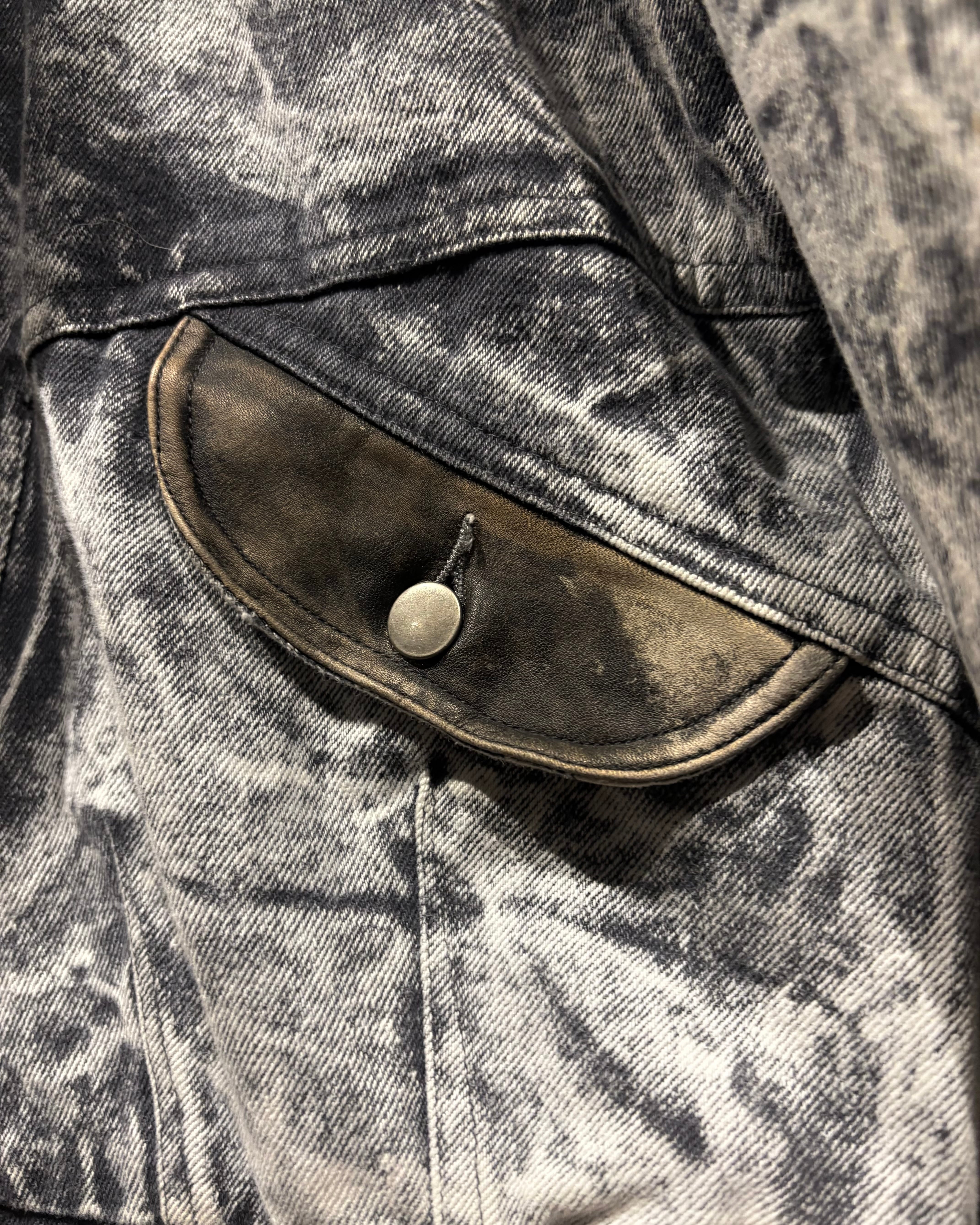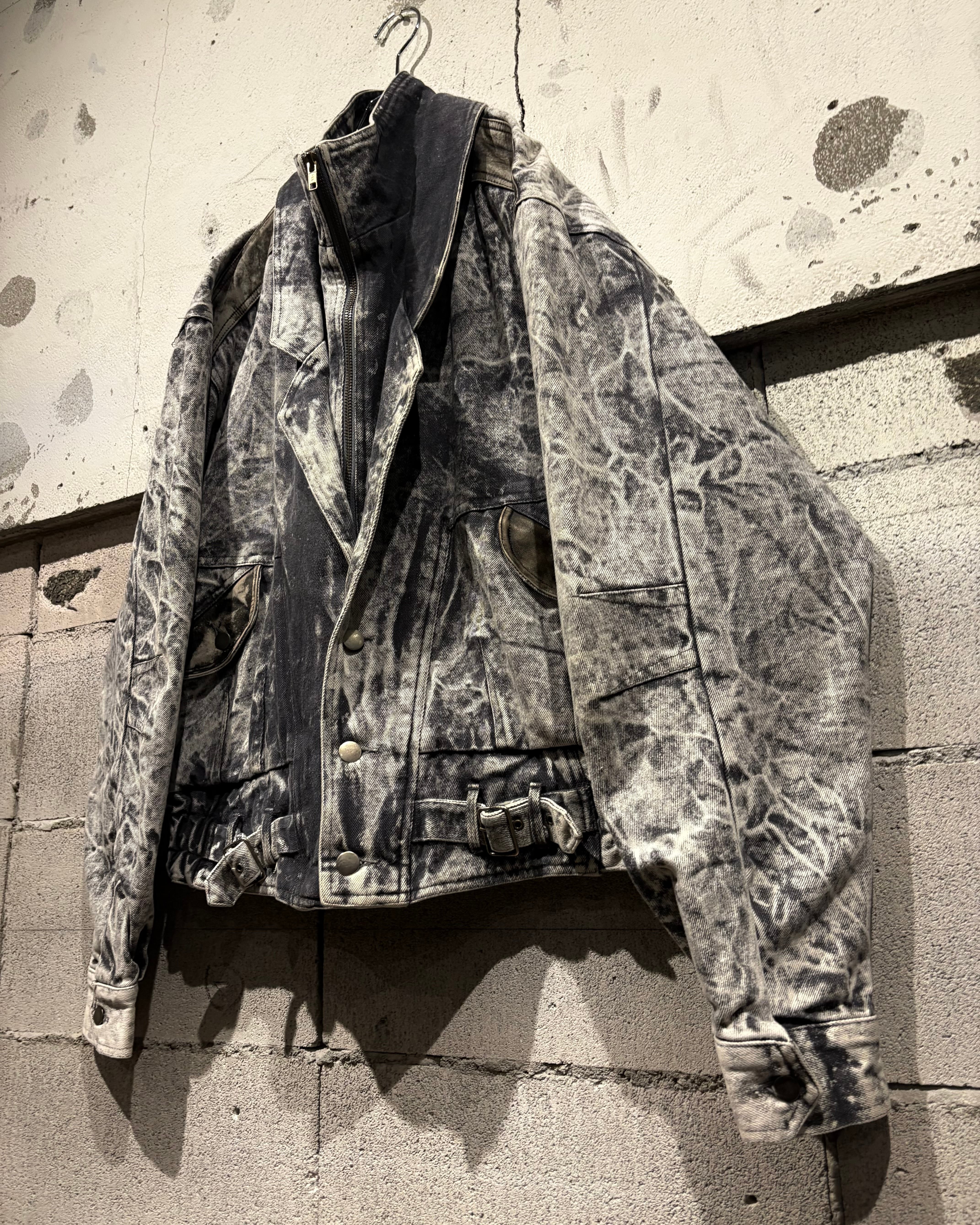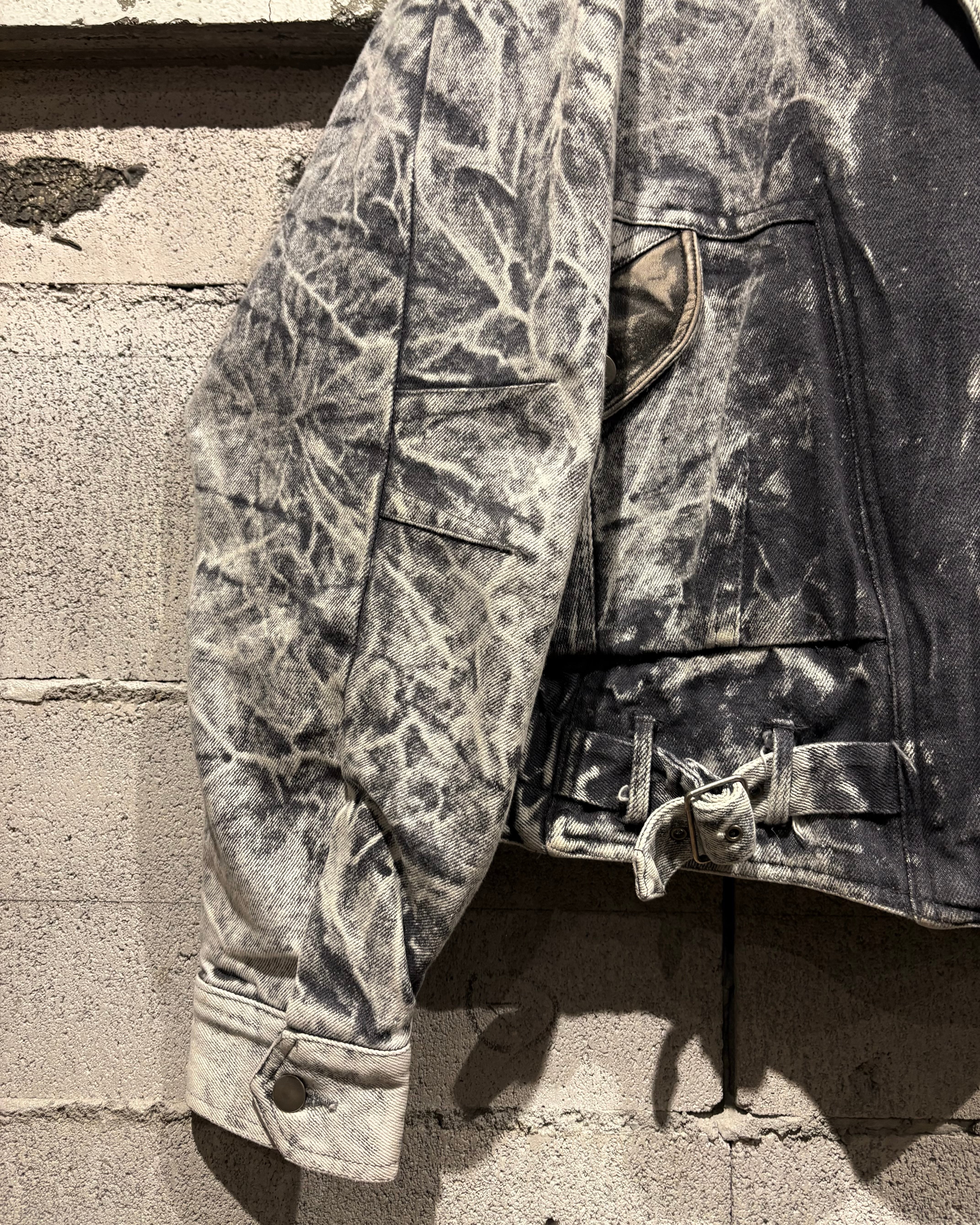 退廃的かつハイエンドな雰囲気漂う、美しいデザインバランスへと仕上げられた当店ならではのデニムジャケットの逸品となっております。