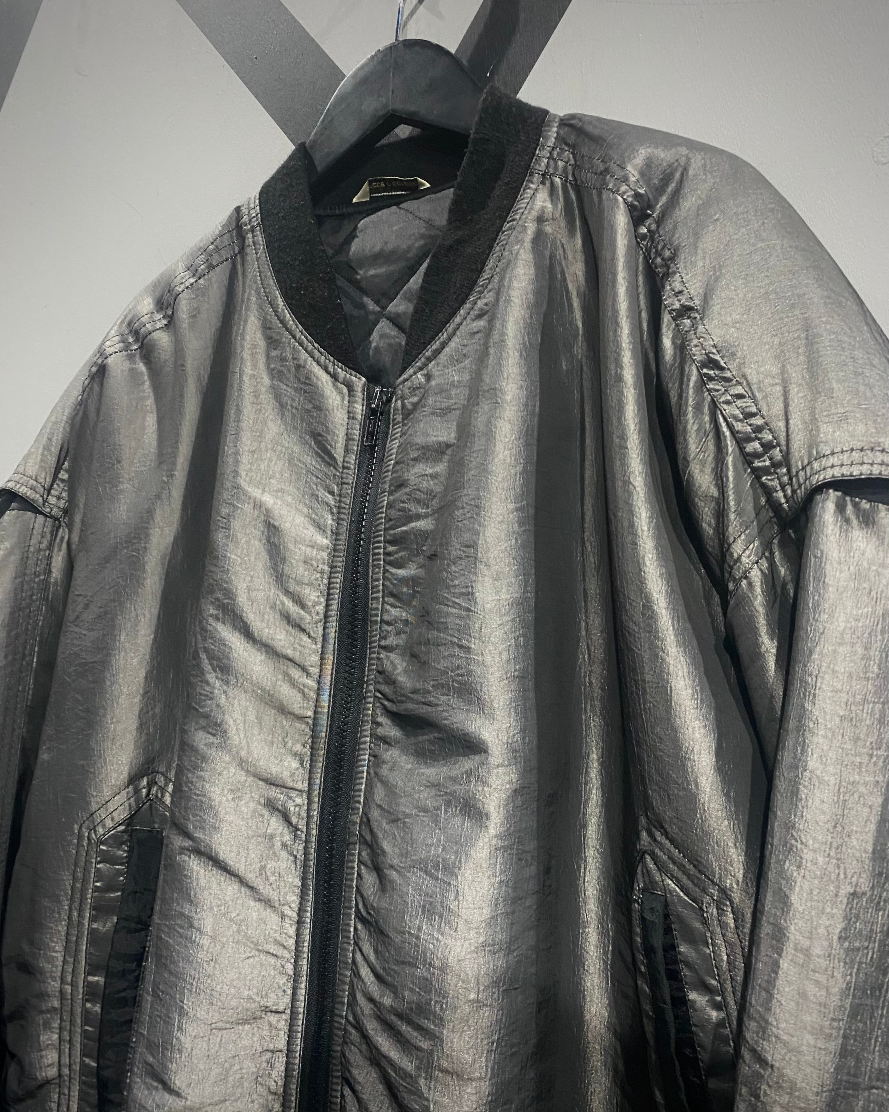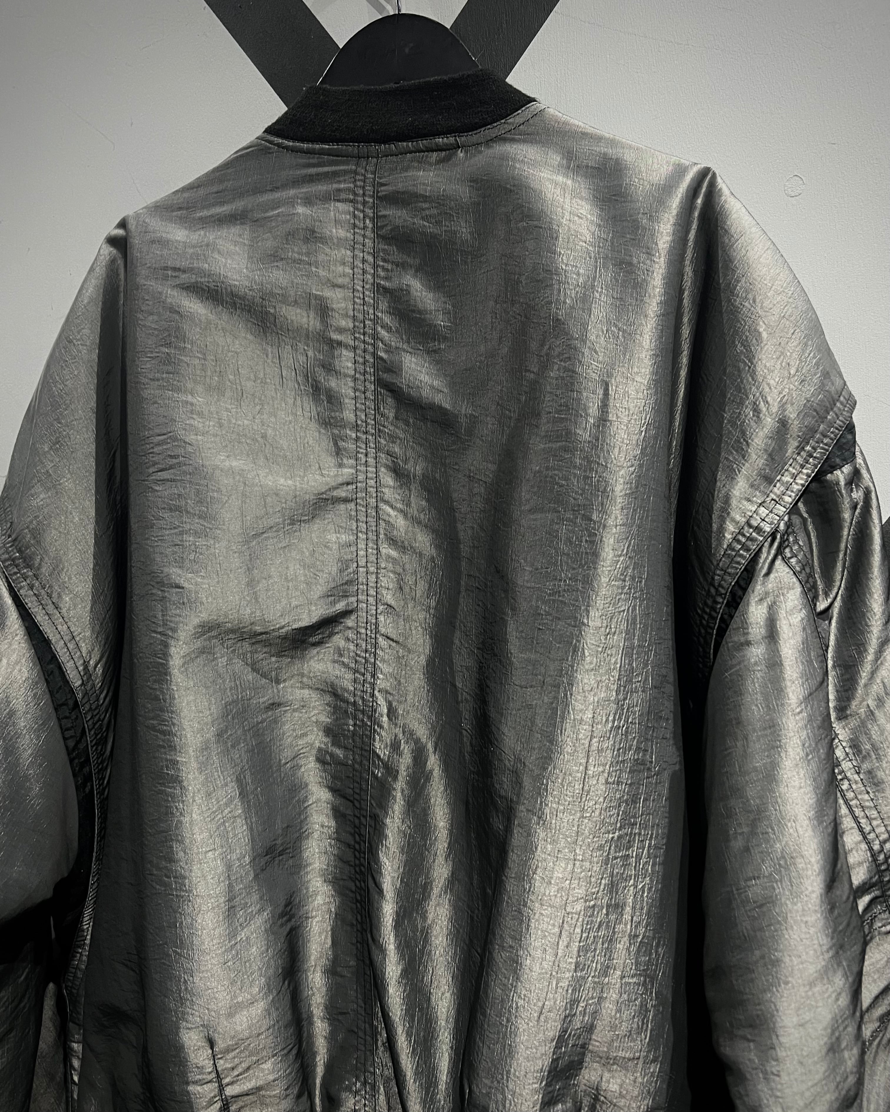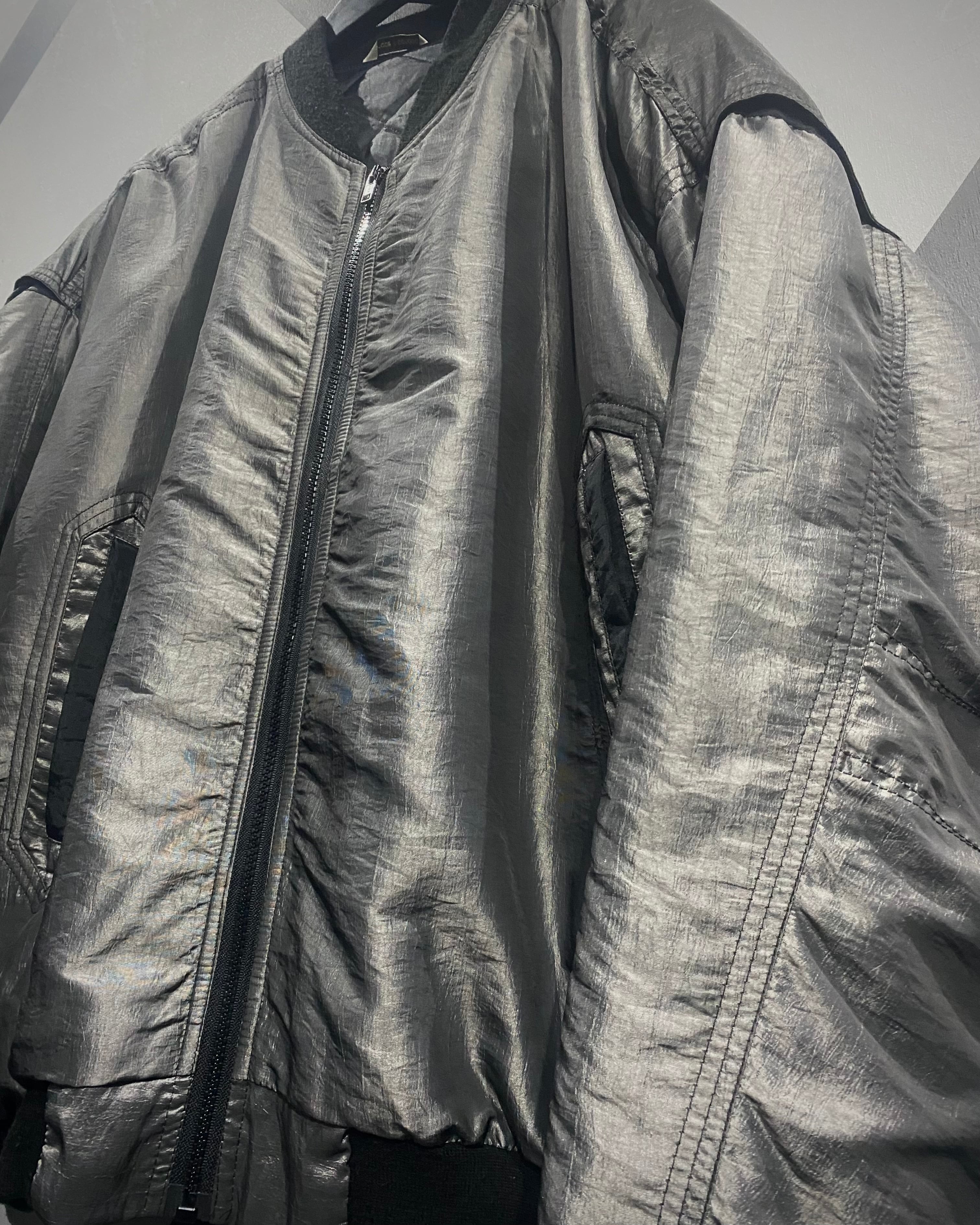 メタリックシルバーの存在感を前面に押し出した、スペシャルなボンバージャケット。