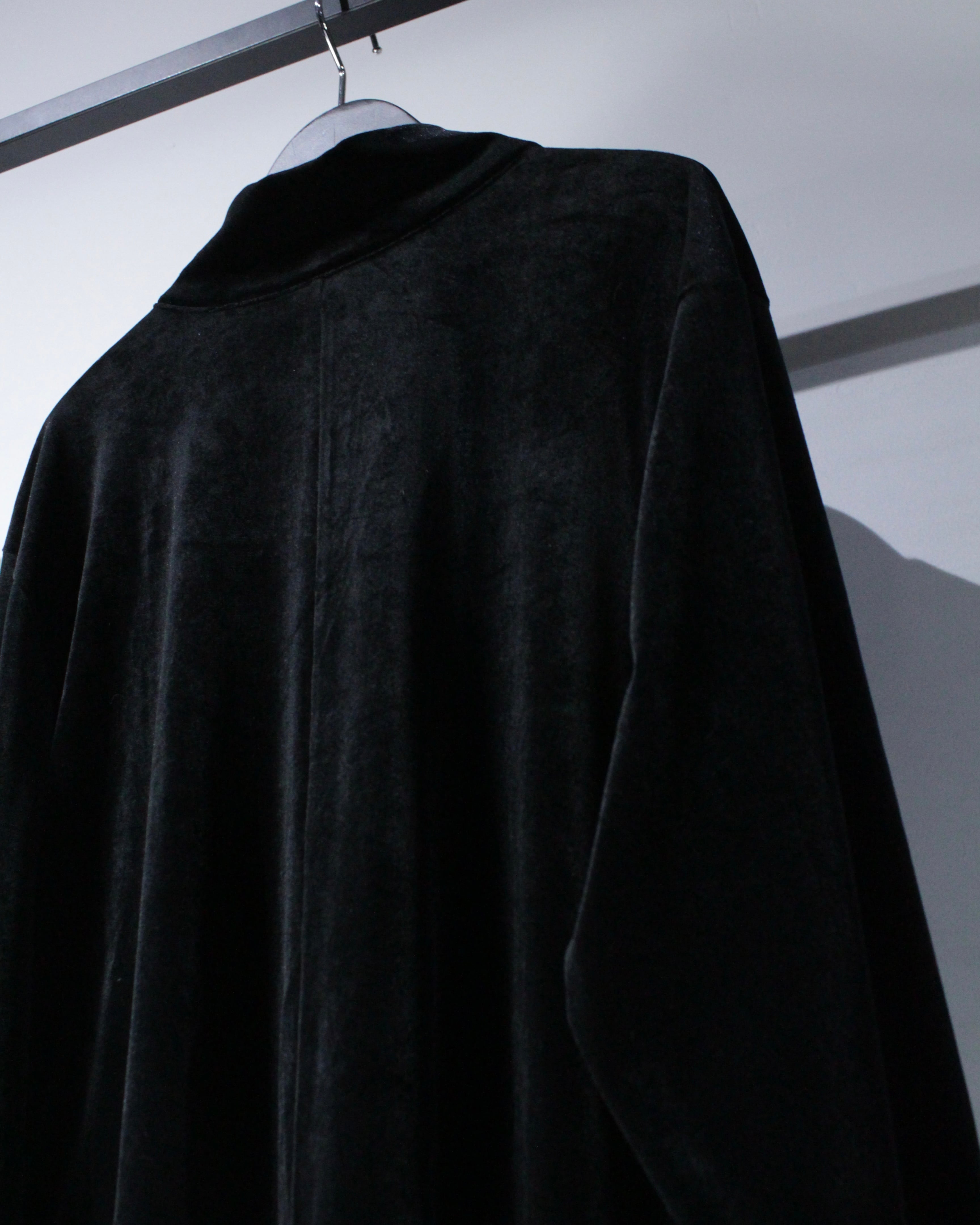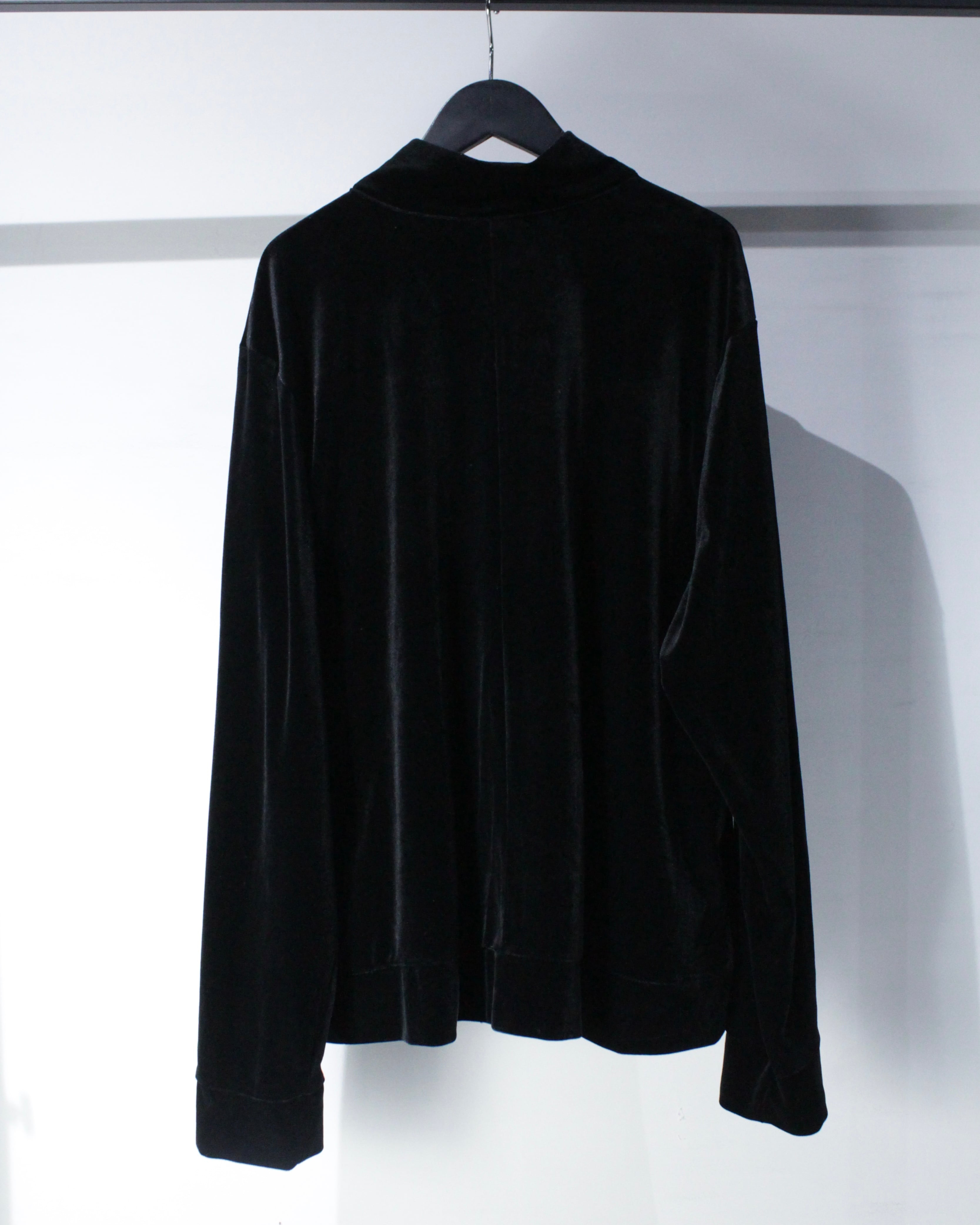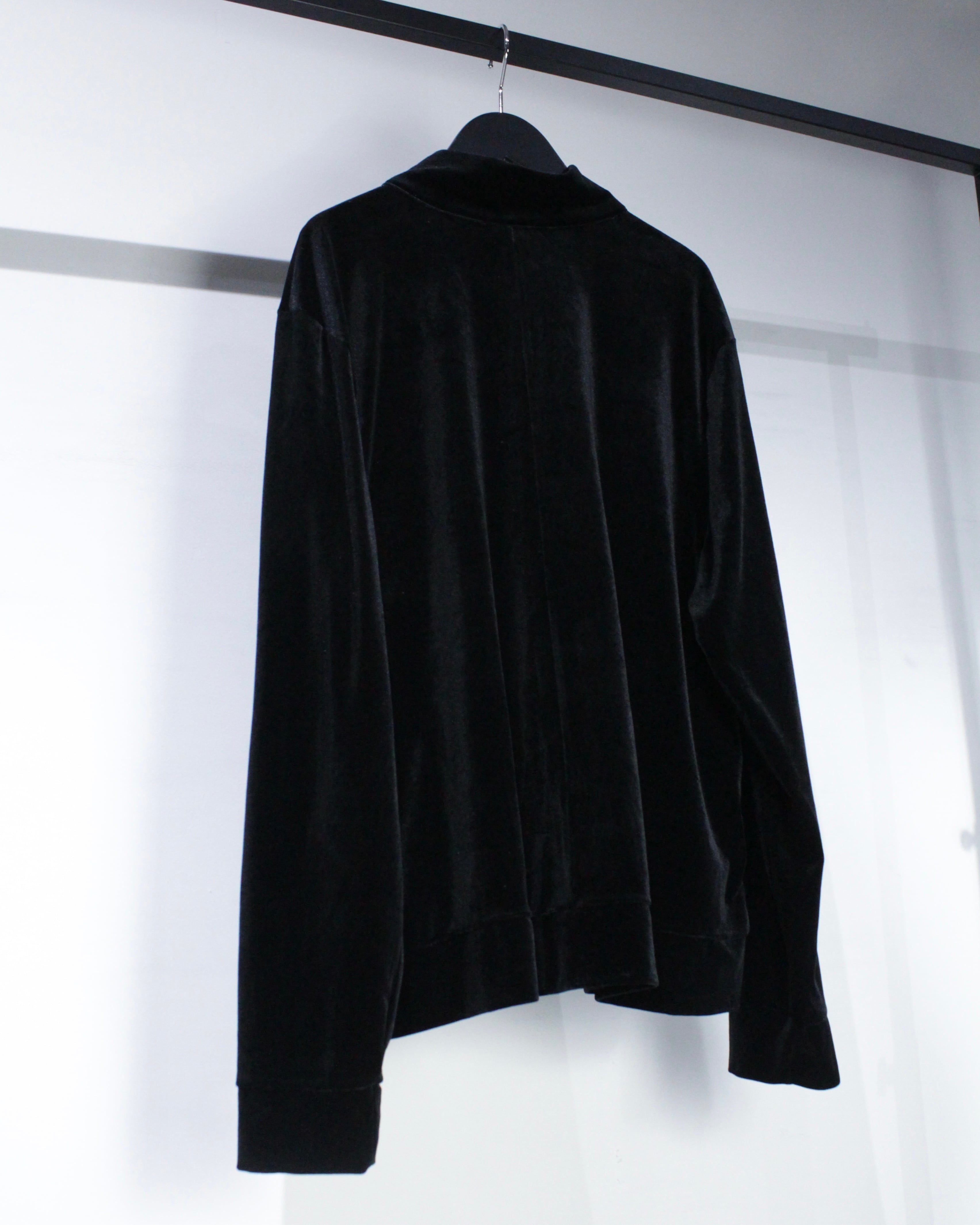 上品さと艶感をまとった、ブラックベルベットのジップアップジャケット。