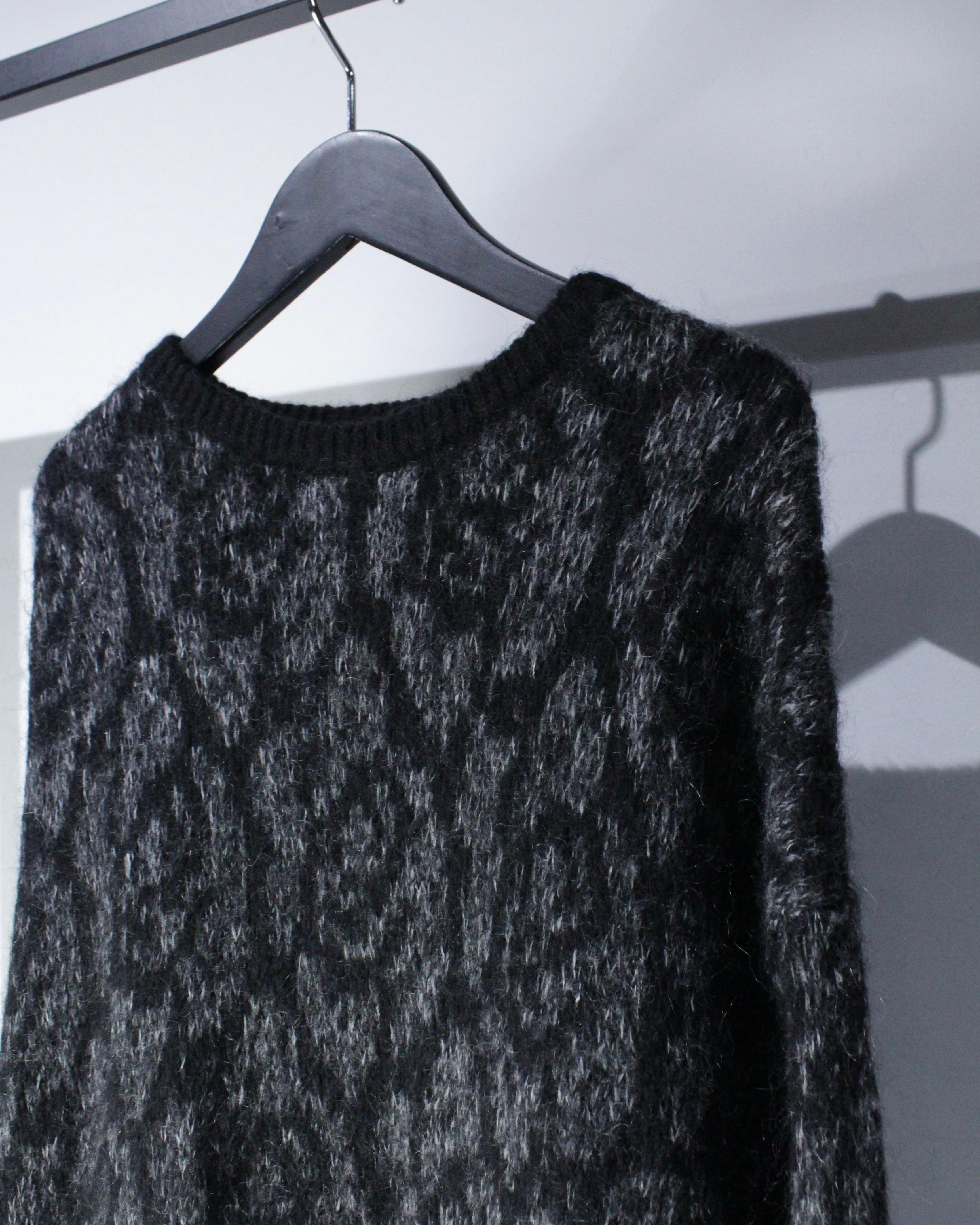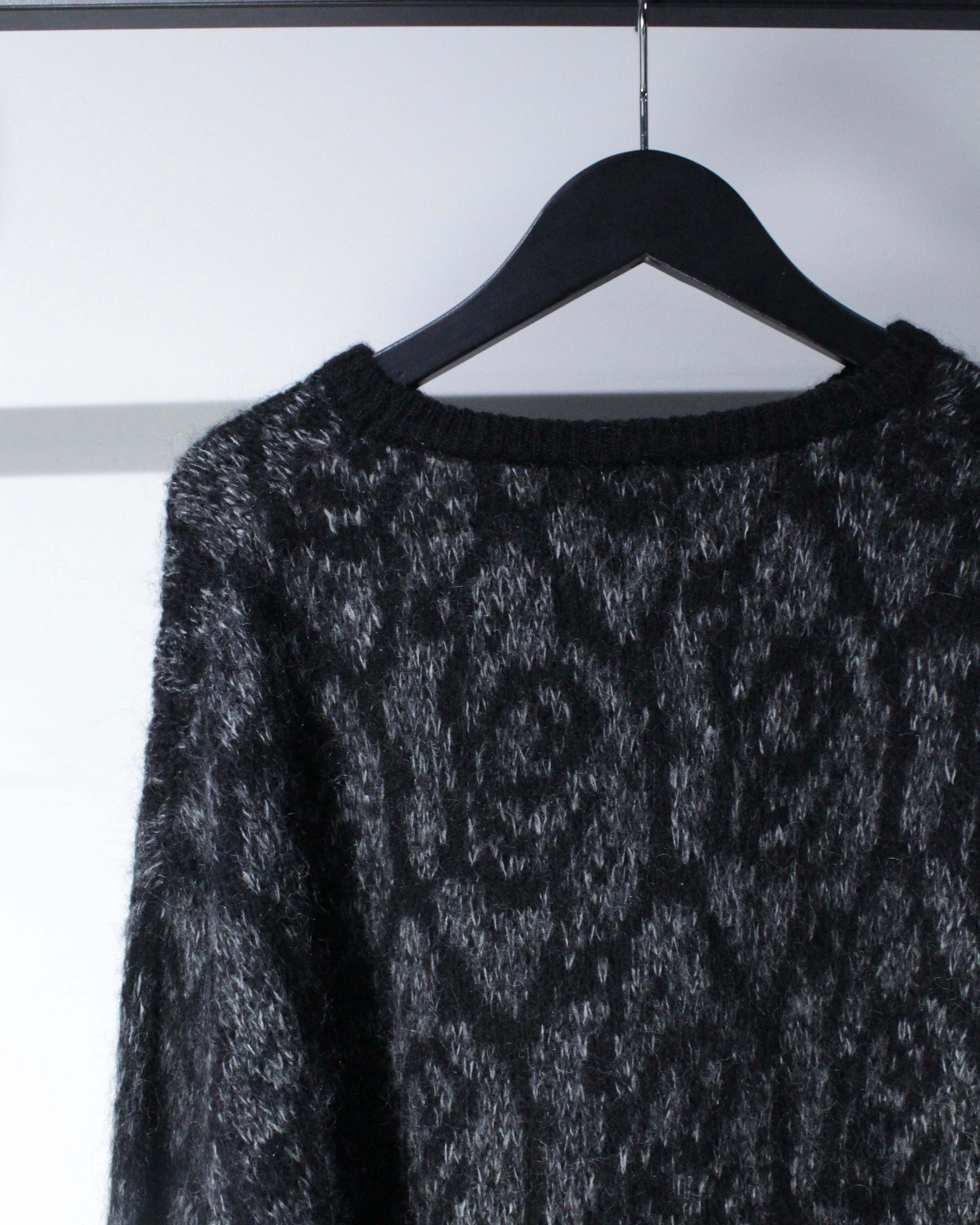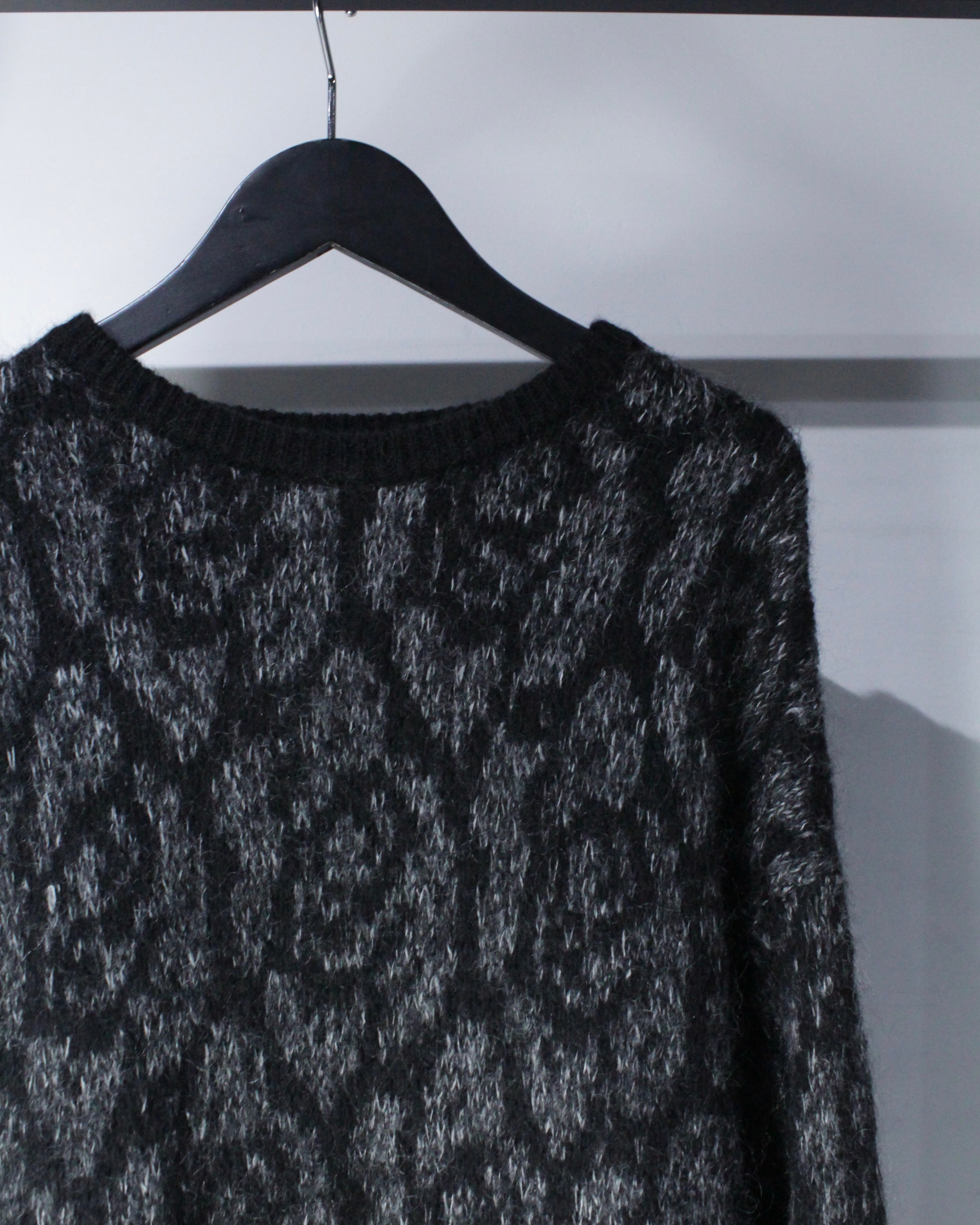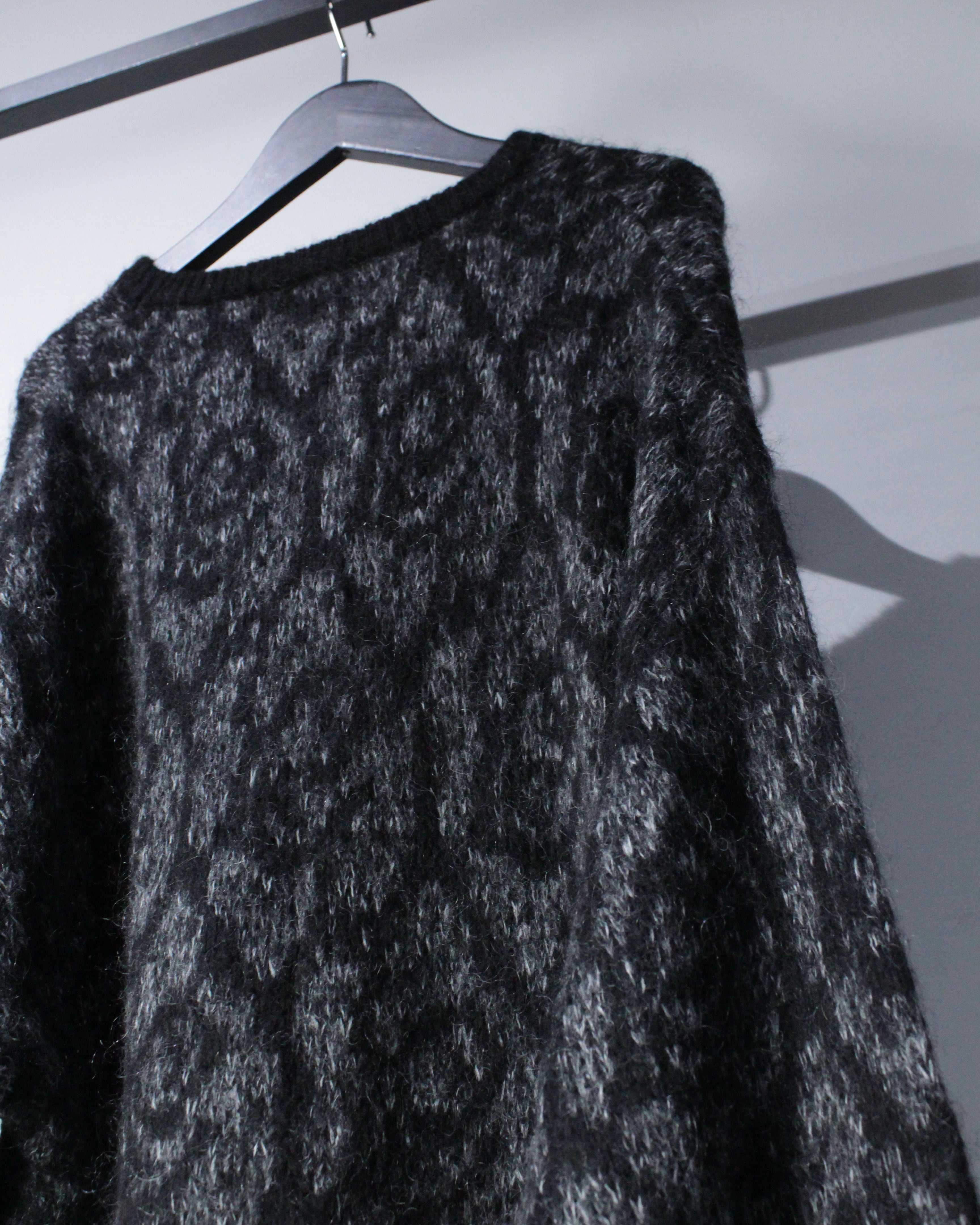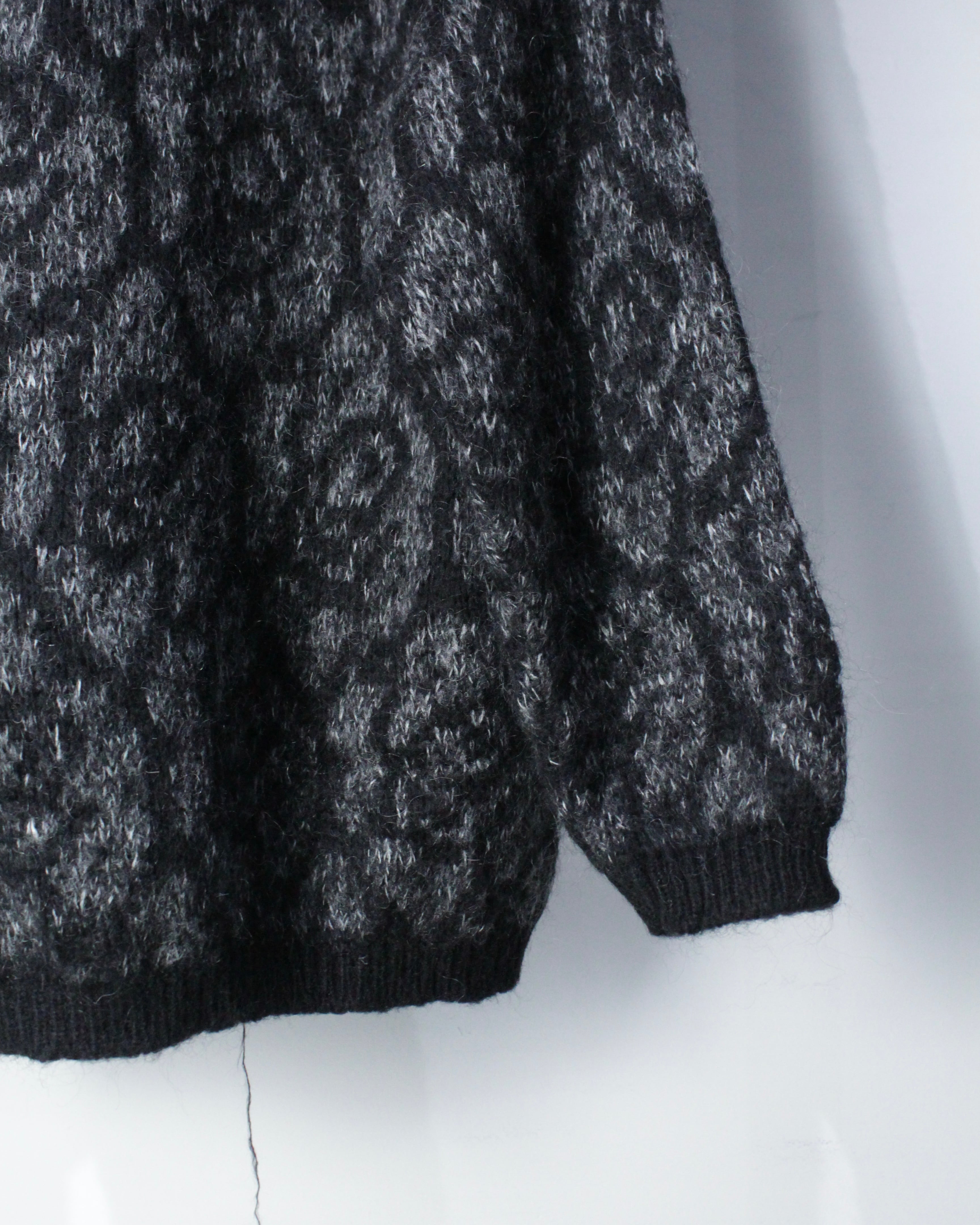 深みのあるチャコールトーンをベースに、うっすらと浮かび上がる花柄風のパターンが印象的なヴィンテージモヘアニット。