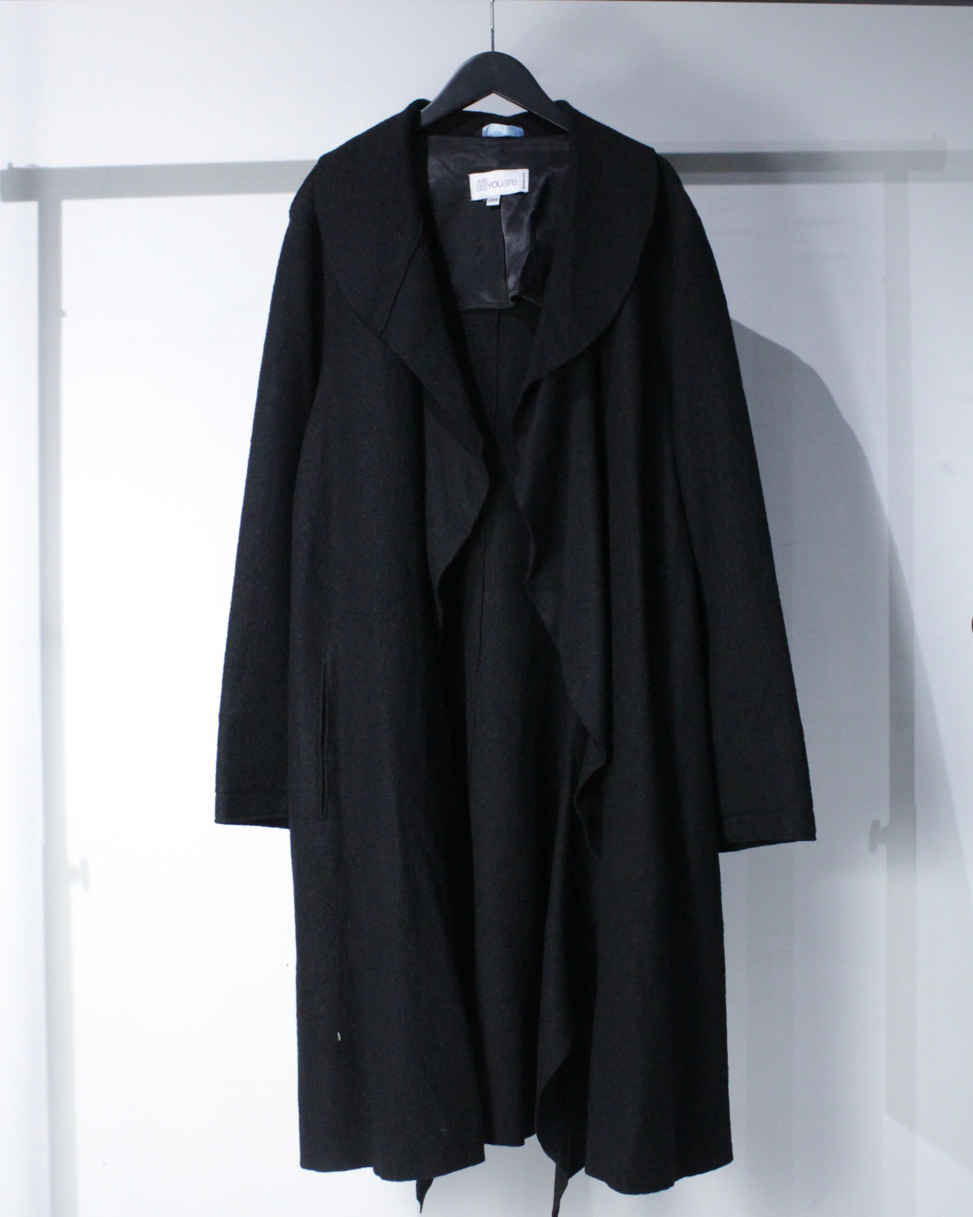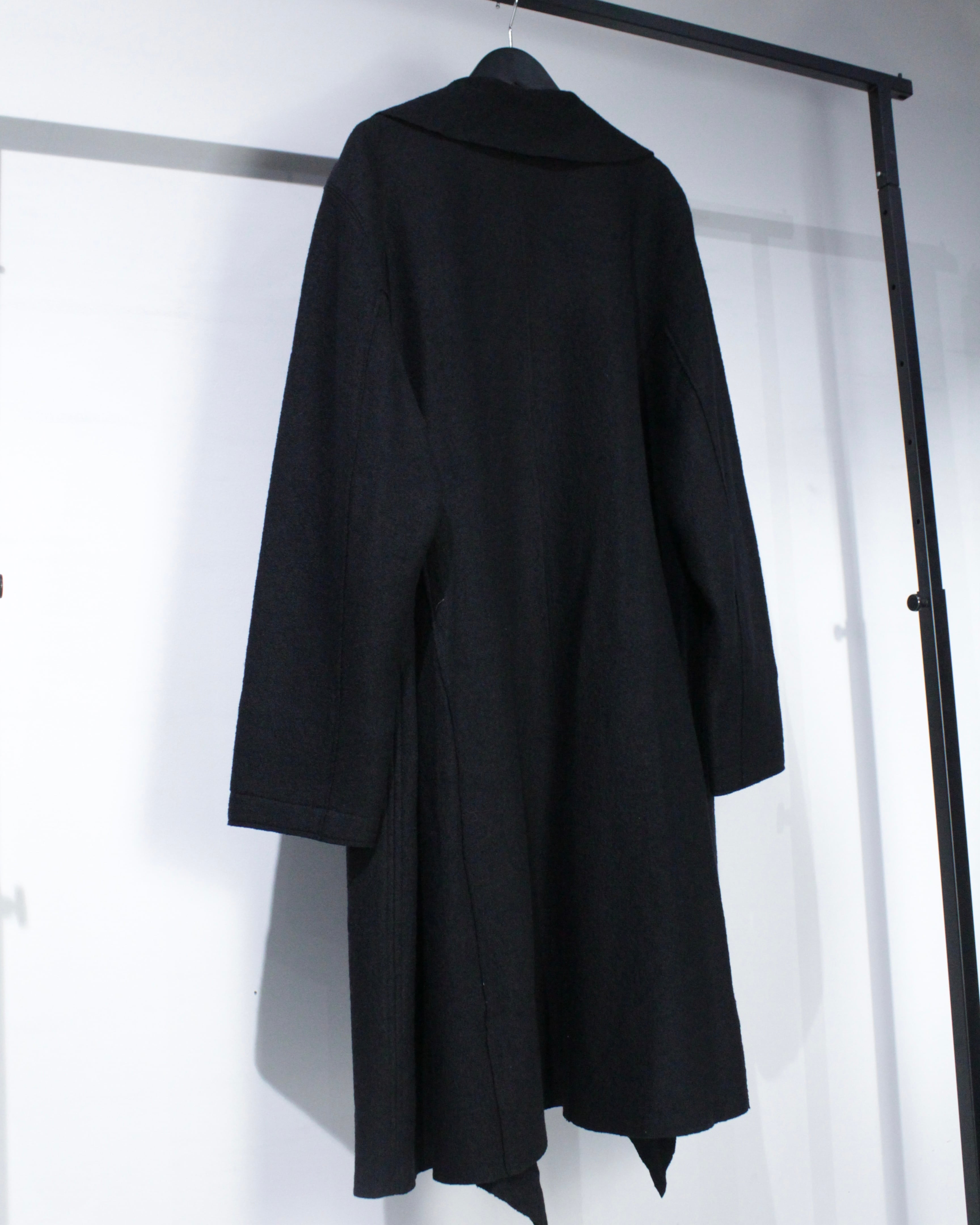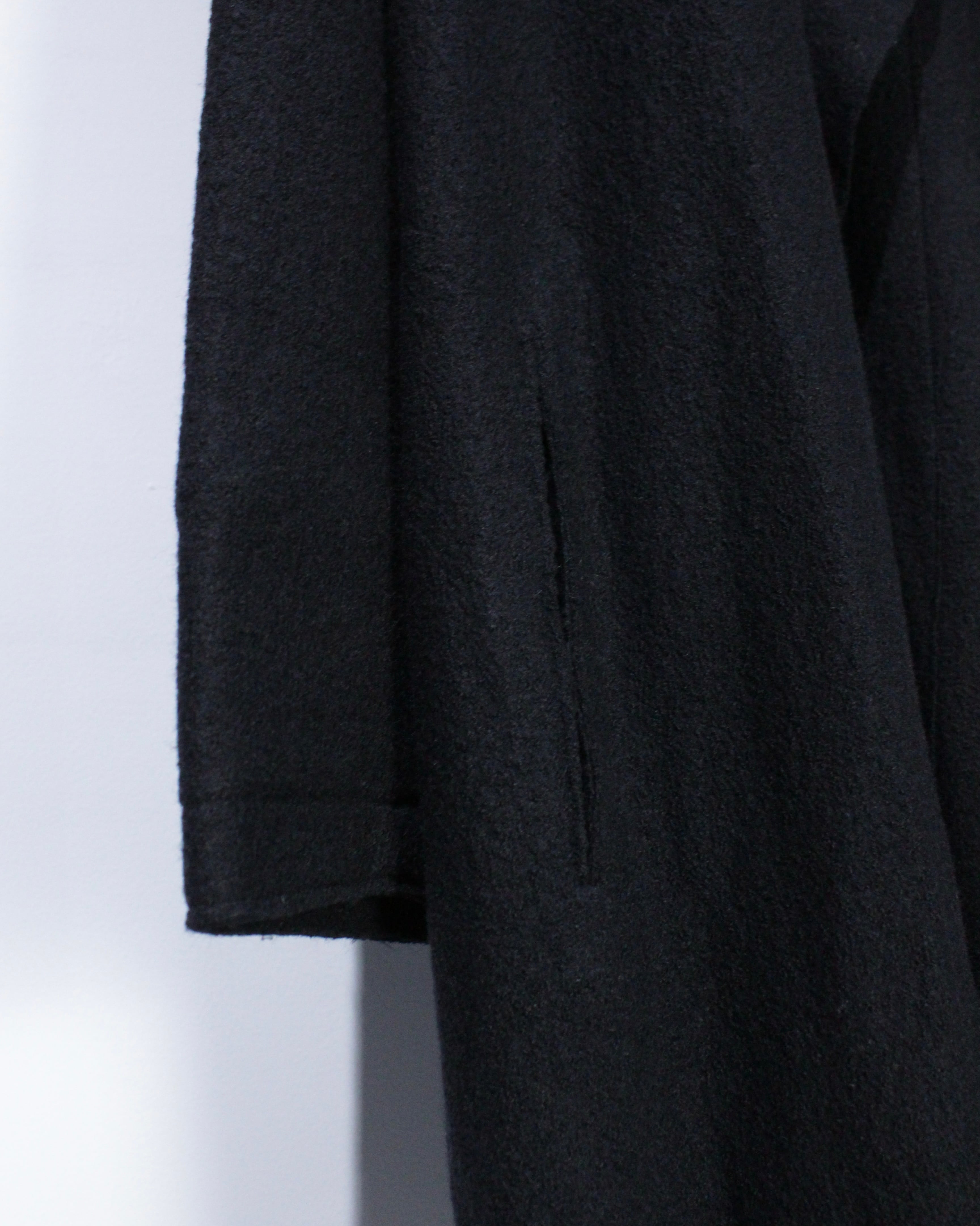 シンプルながら美しいカッティング、素材の良さで魅せるガウンコートの逸品です。