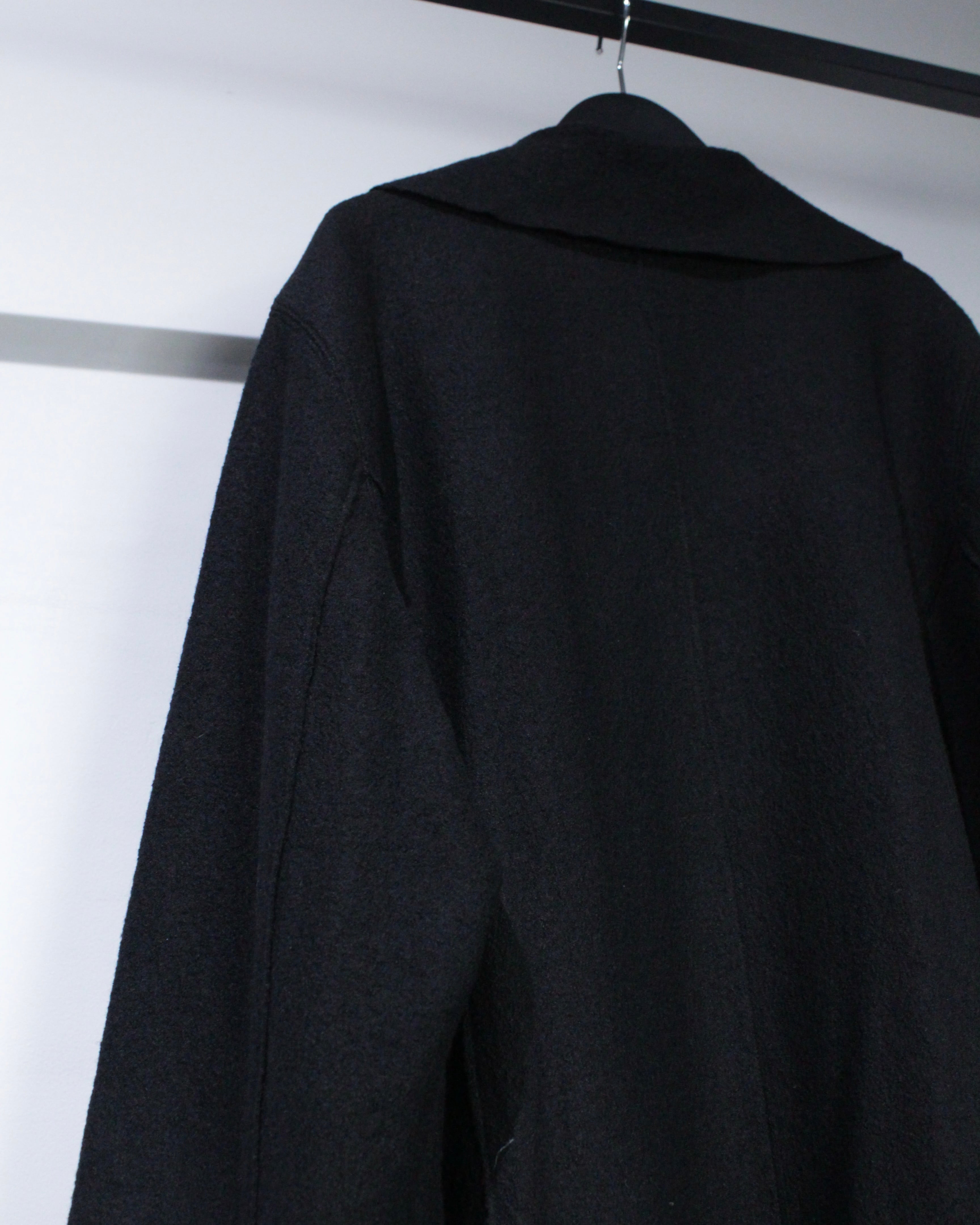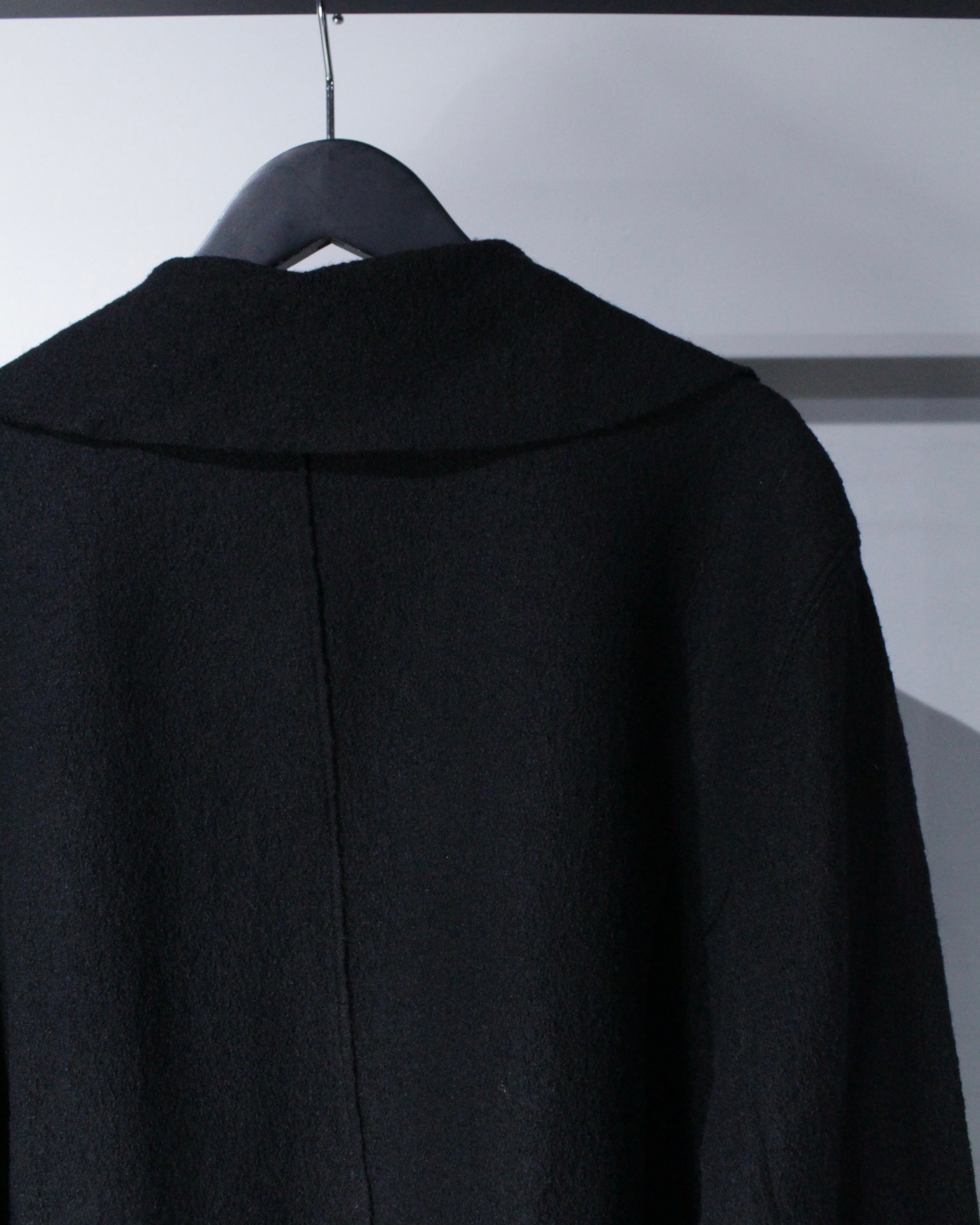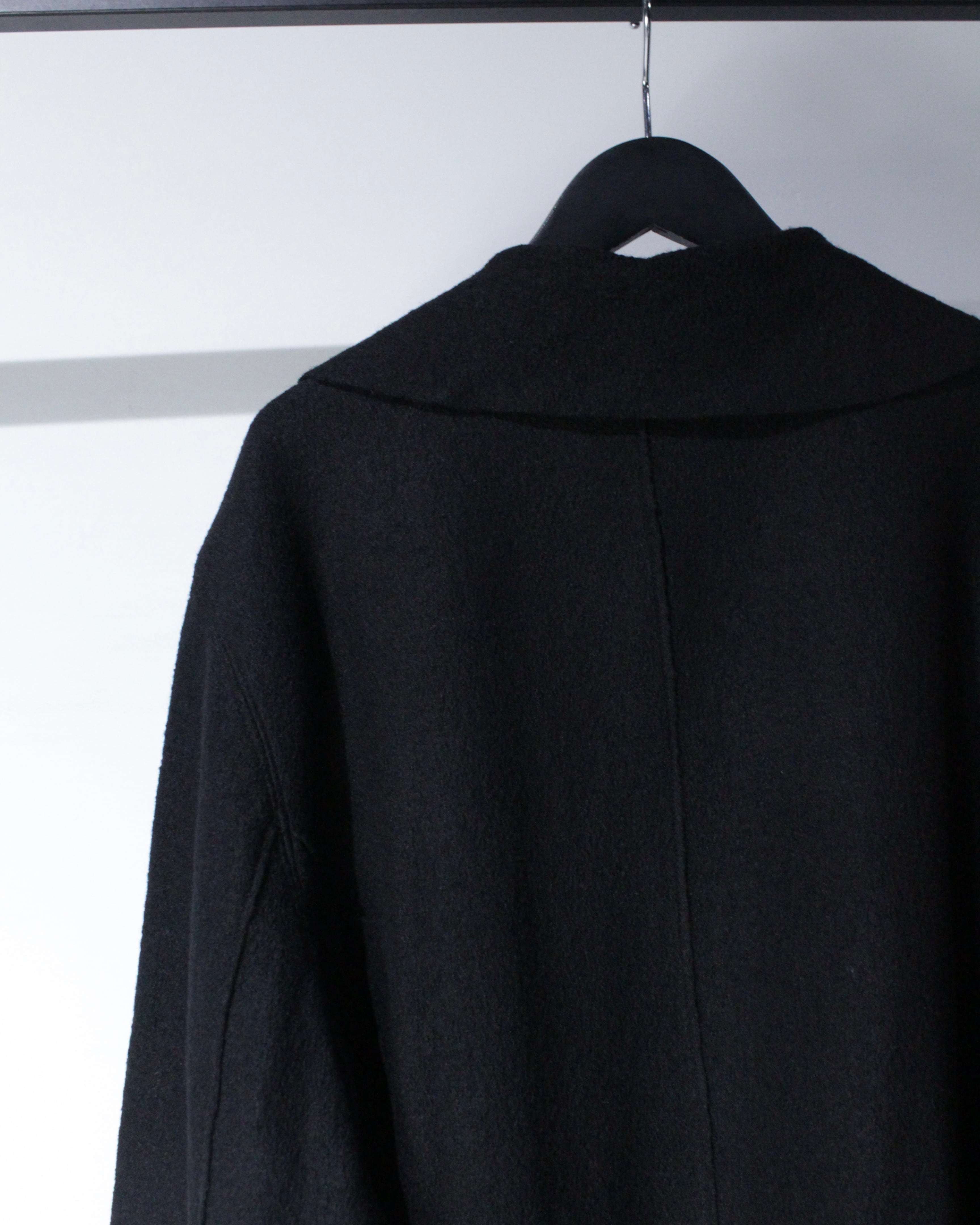 ウール×ビスコースの柔らかな表地は、肌触りが良く、秋冬の羽織としてストレスなく使える素材感。羽織るだけで雰囲気をグッと引き上げてくれるかと。
