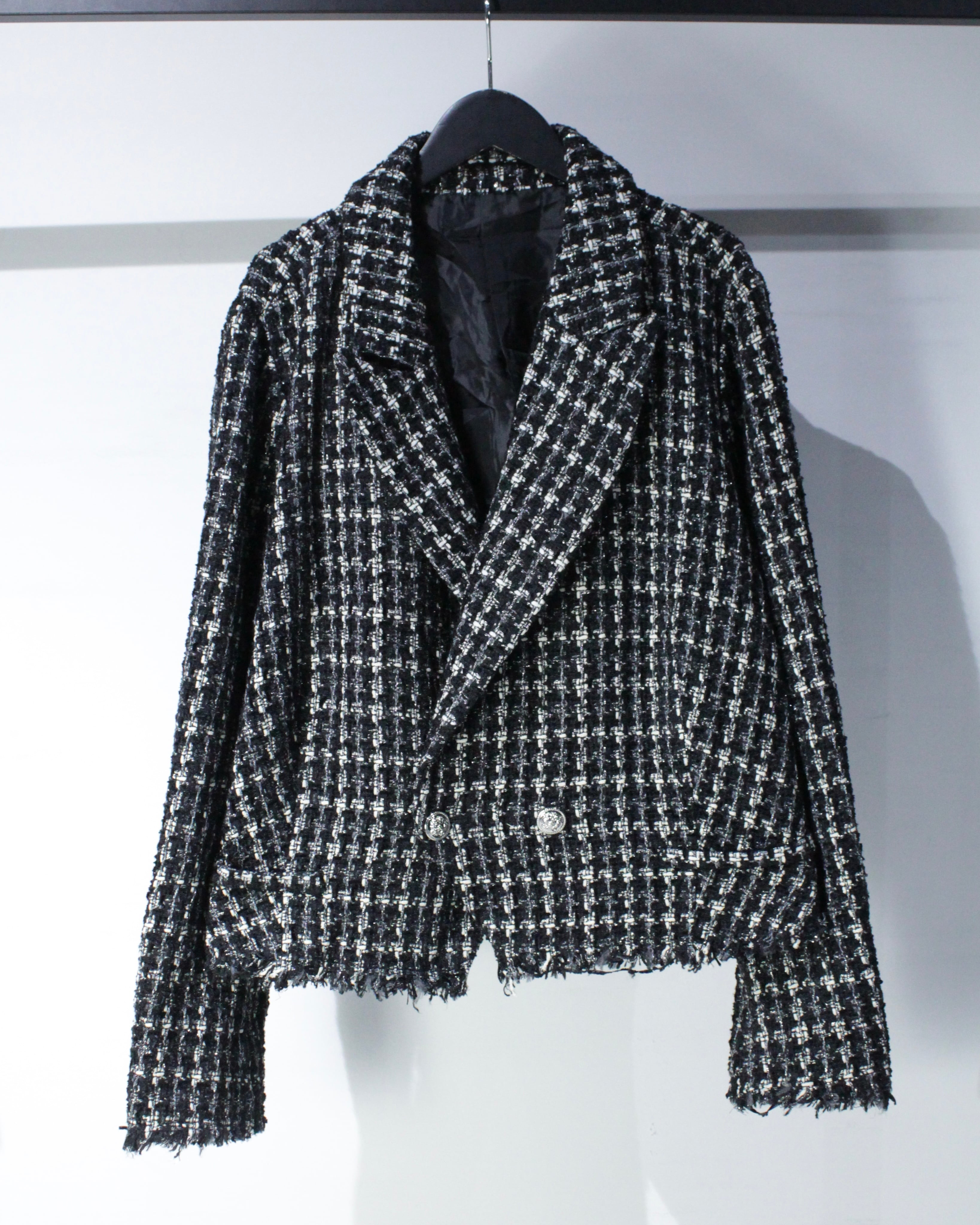 ツイード×ダブル×短丈という稀有な要素を掛け合わせたスペシャルなテーラードジャケット。