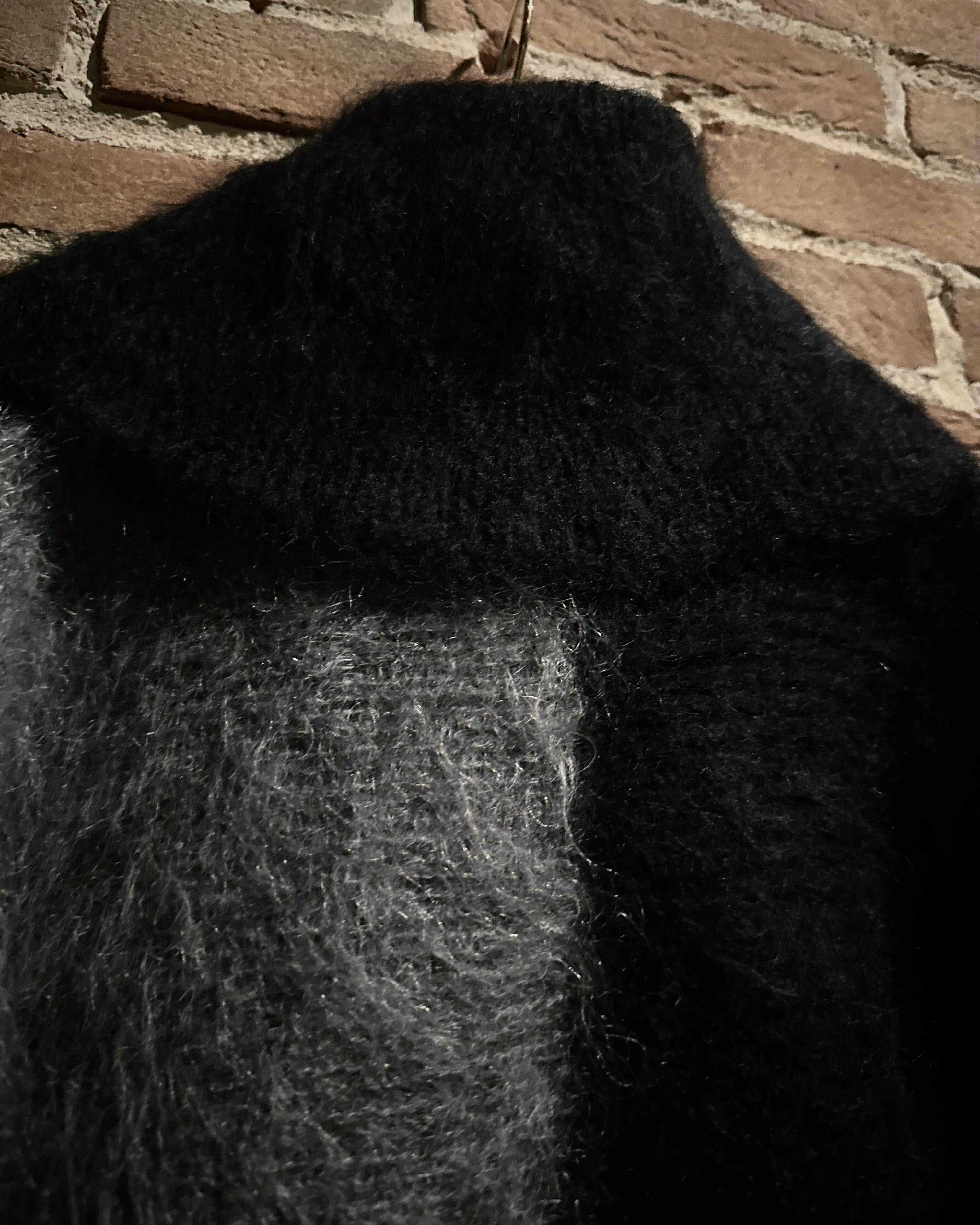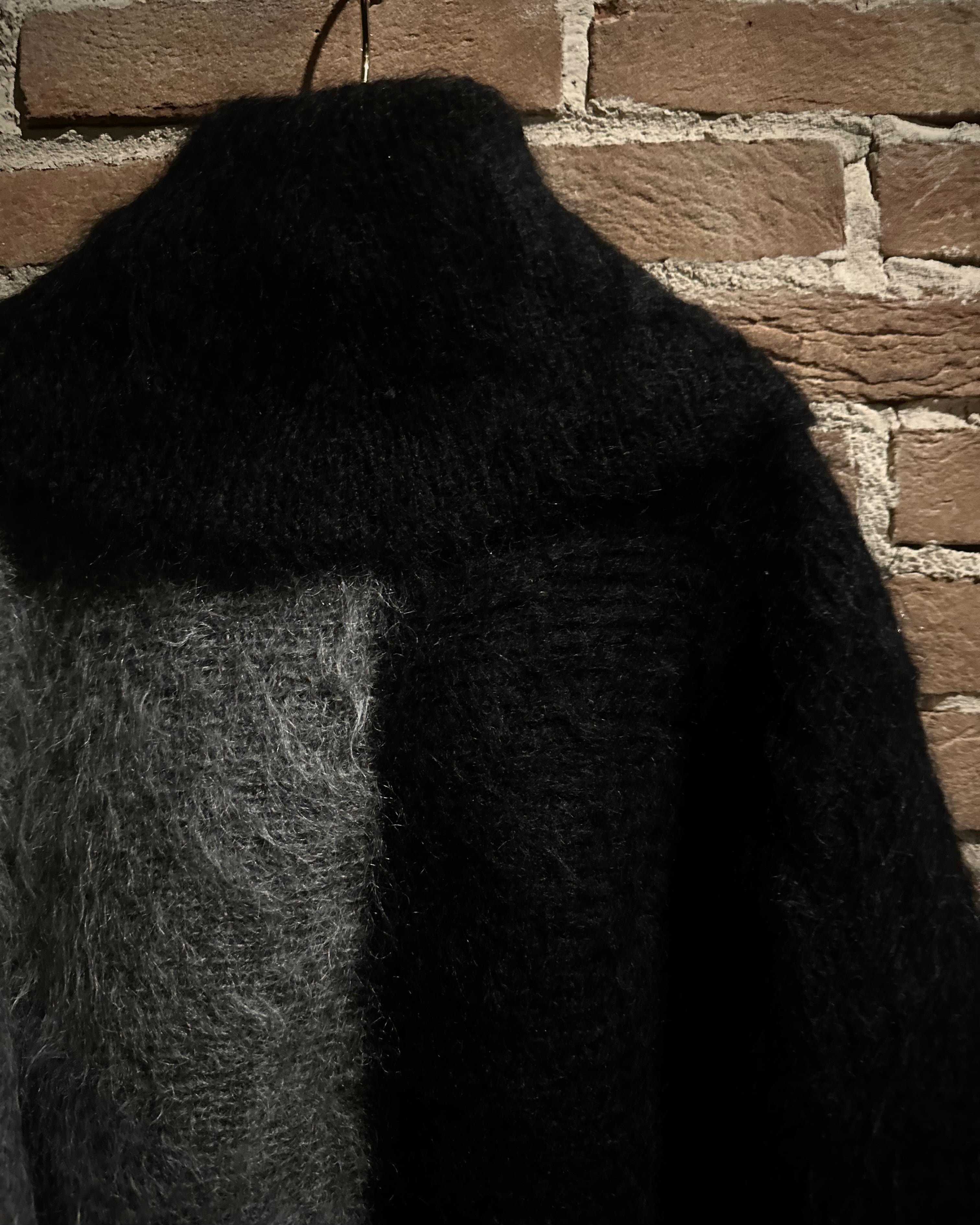 モヘアの長い毛足がゆらめくボディに、ヒョウをモチーフにした大胆なデザインを落とし込んだスペシャルなニット。