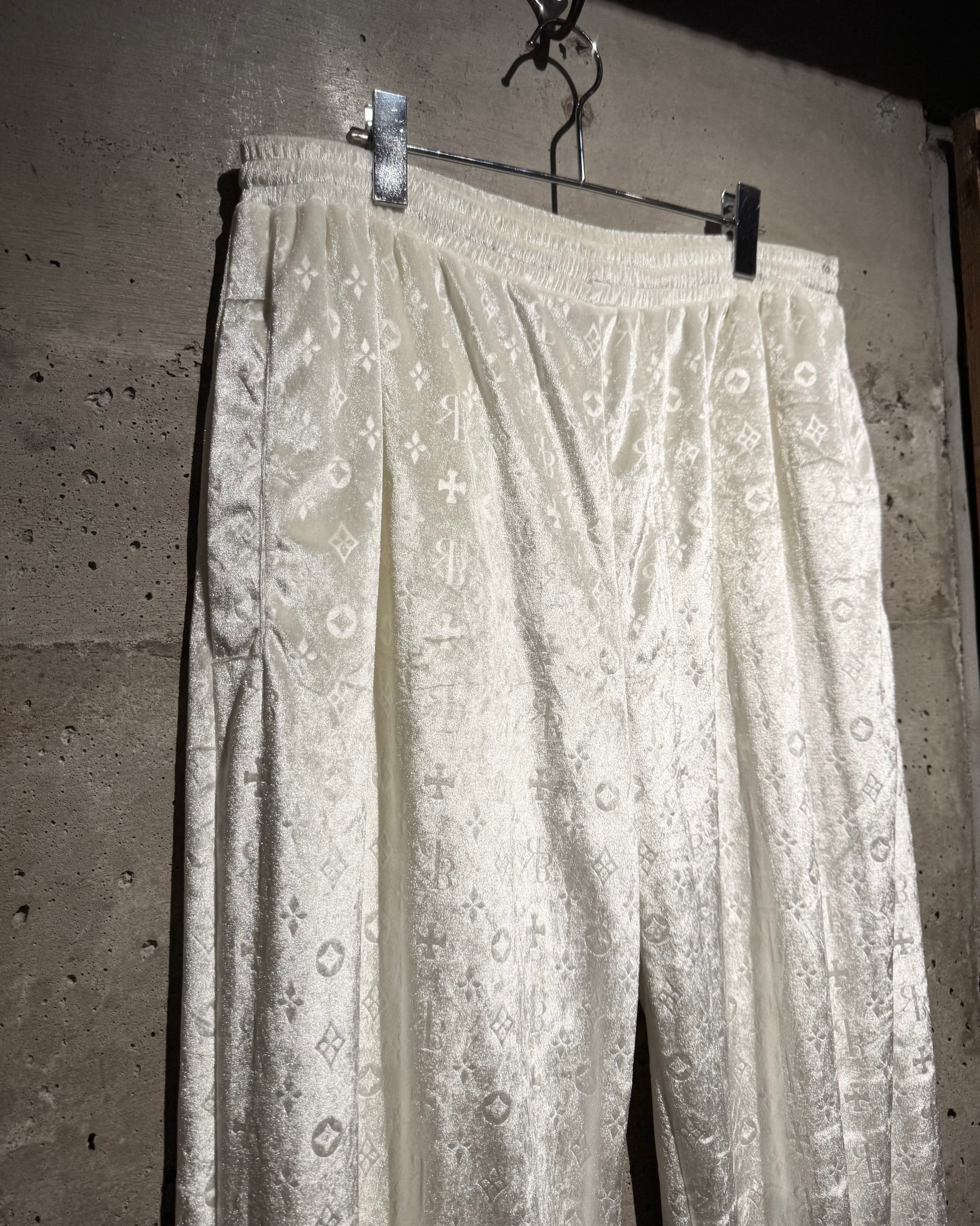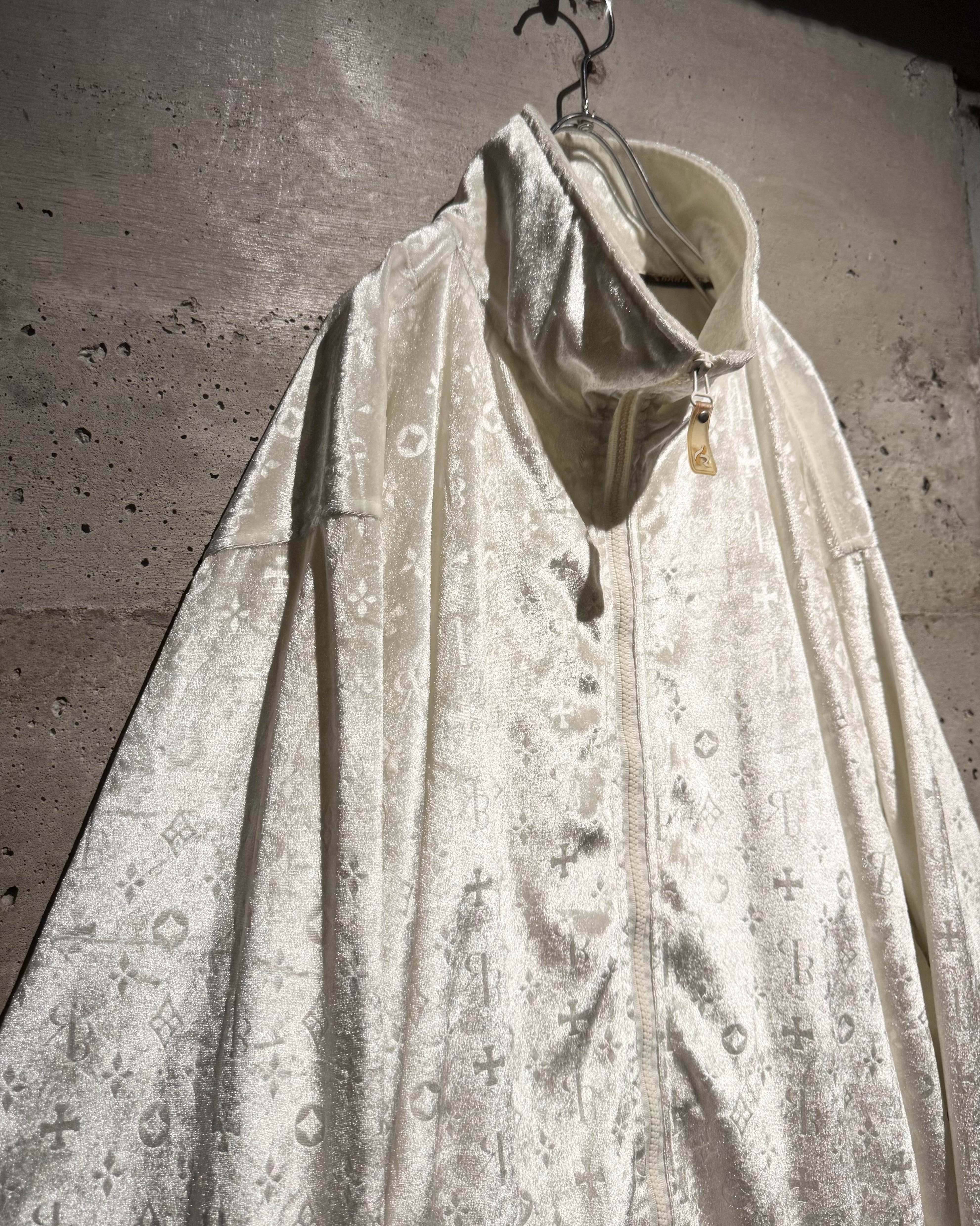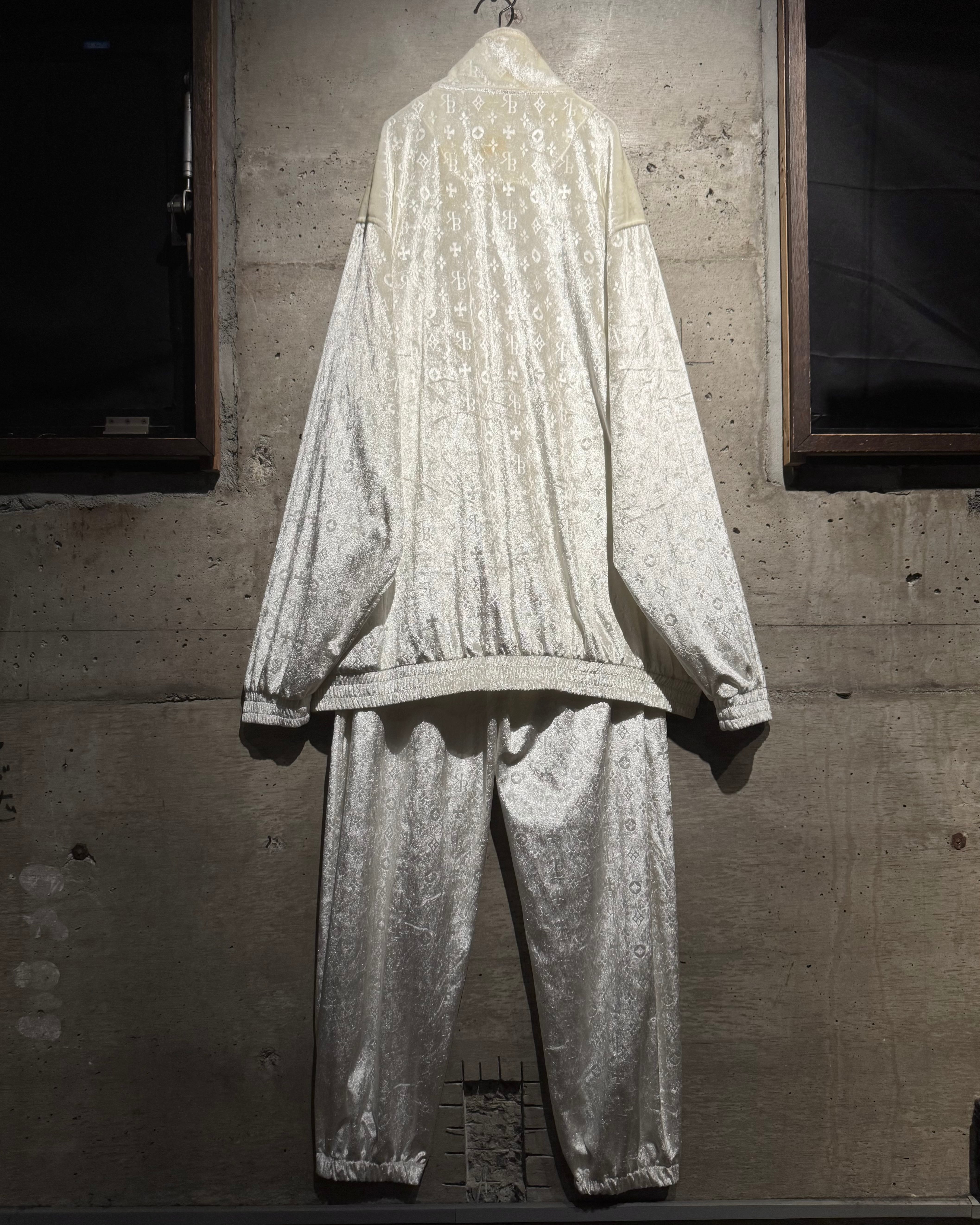 柔らかな起毛感のあるベロアをボディに用い、全体にモノグラム柄を配した稀少なベロアトラックセットアップ。