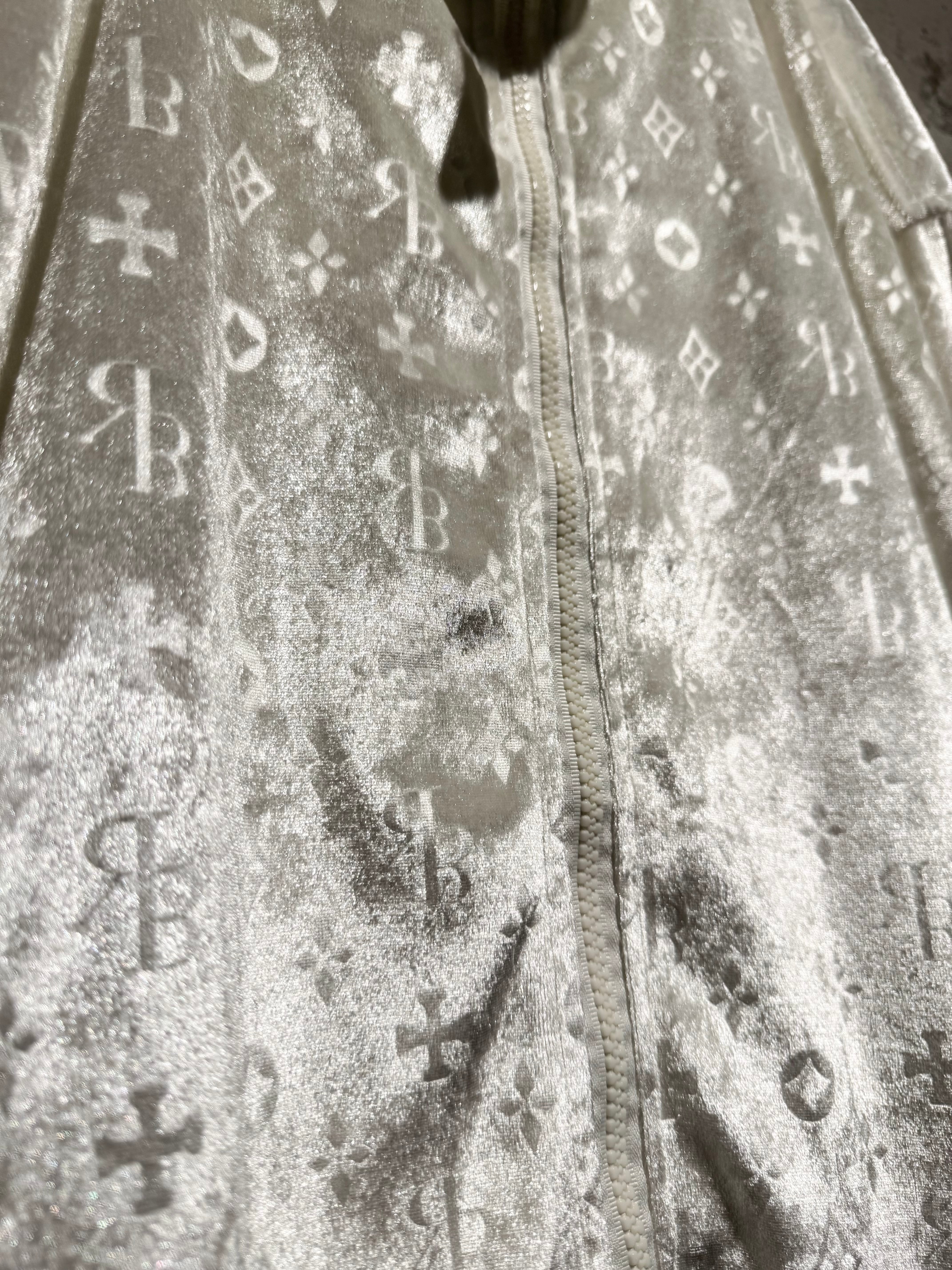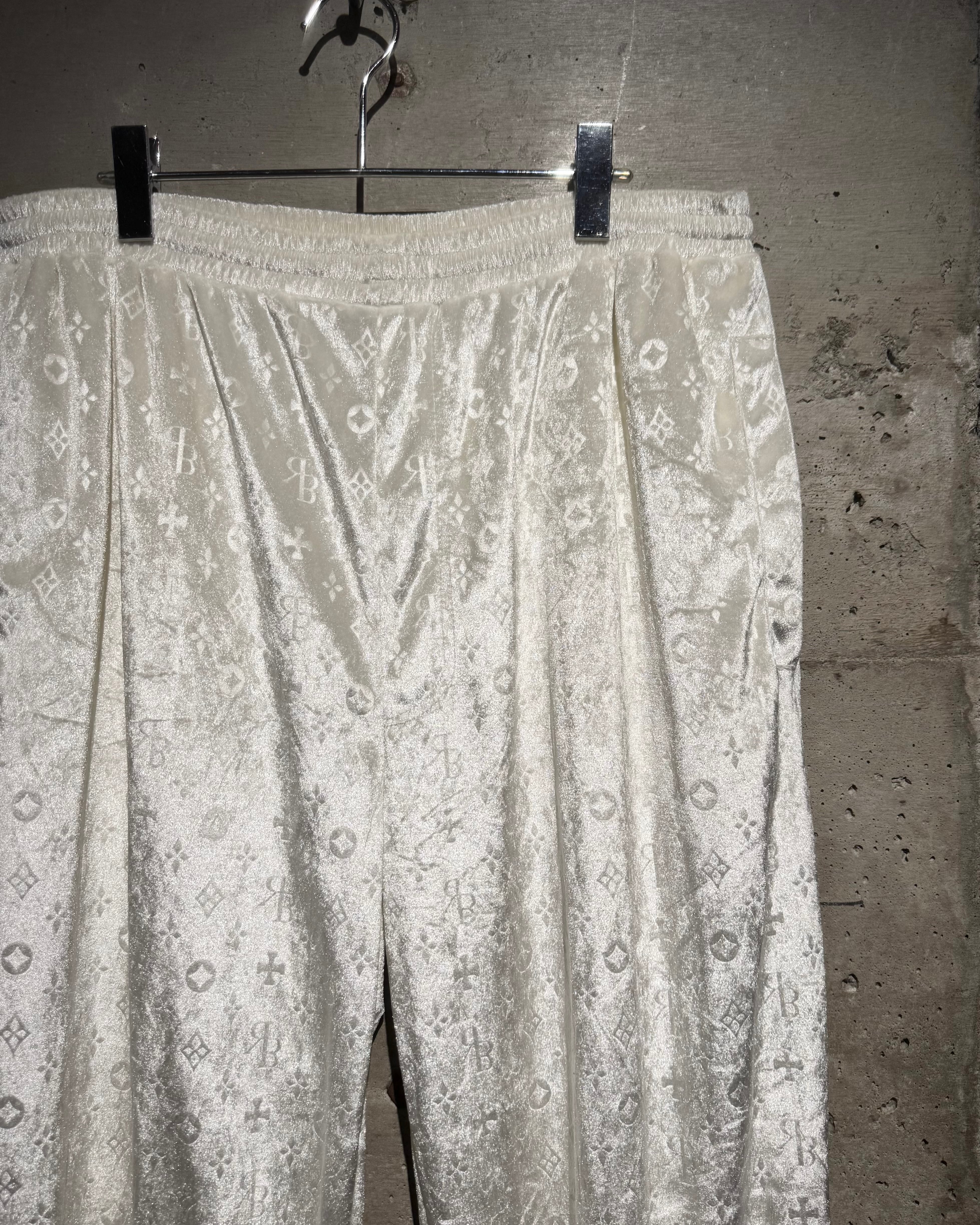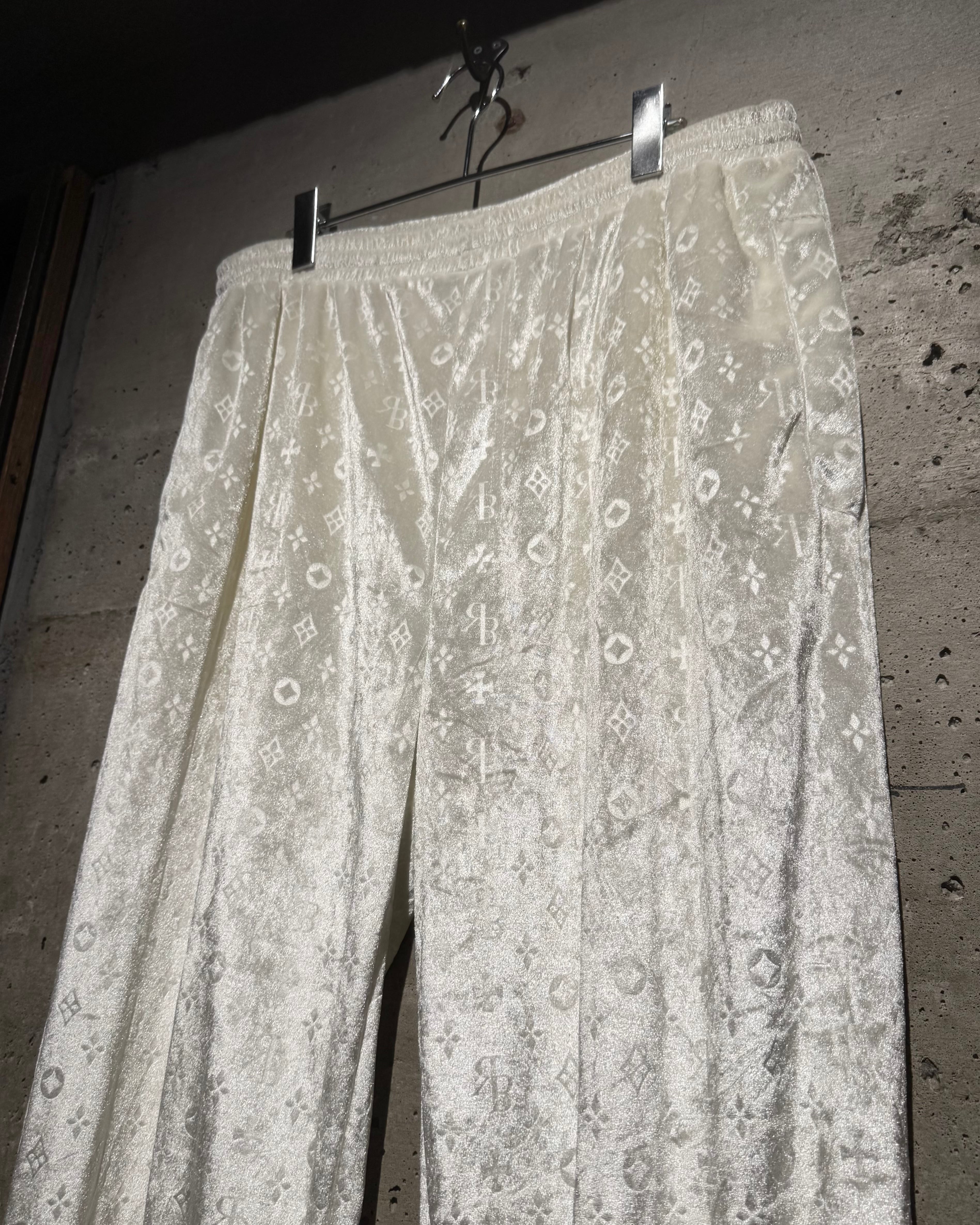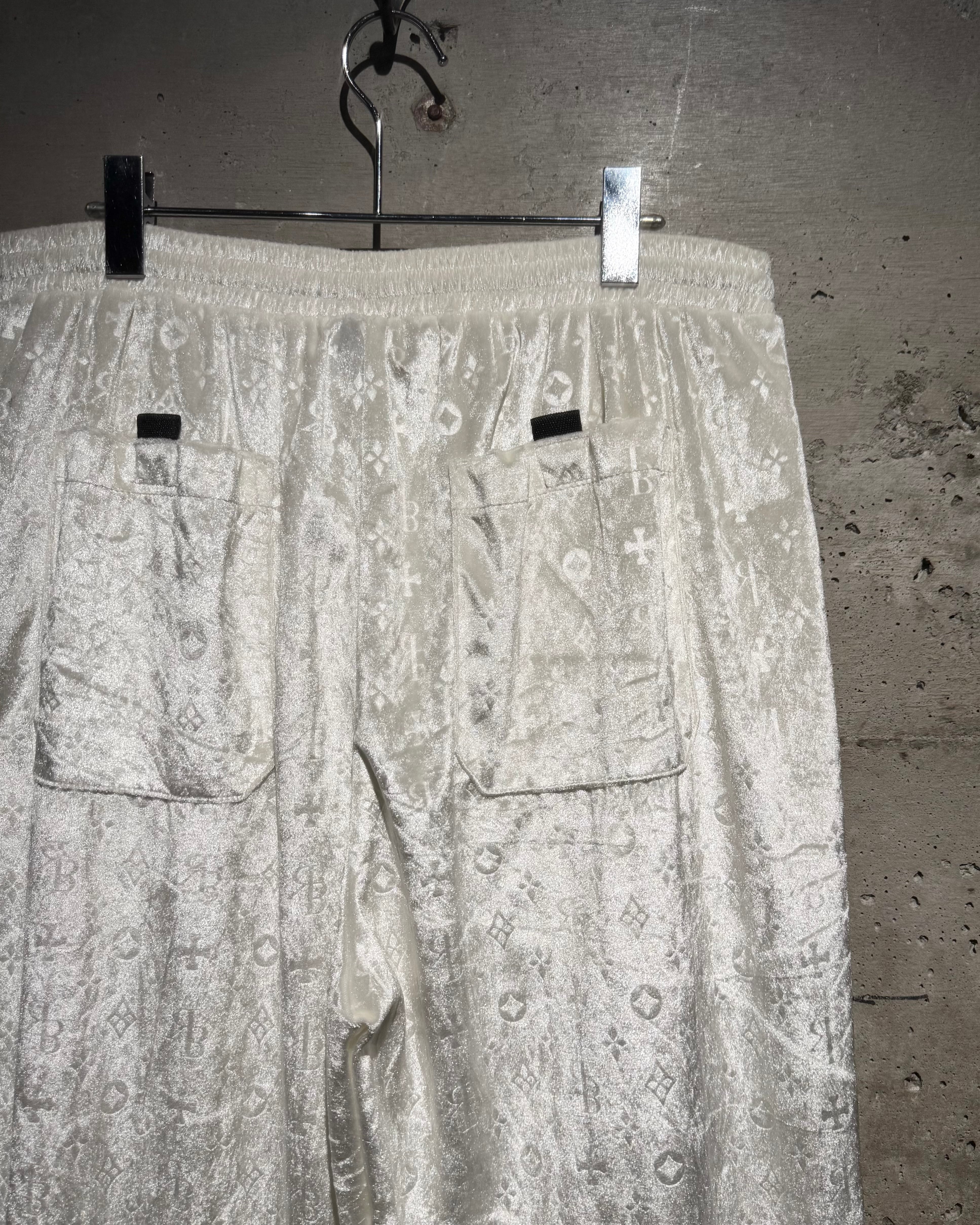柔らかな起毛感のあるベロアをボディに用い、全体にモノグラム柄を配した稀少なベロアトラックセットアップ。