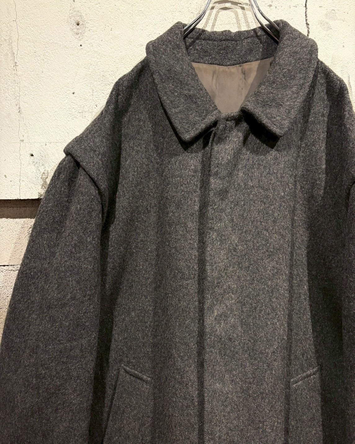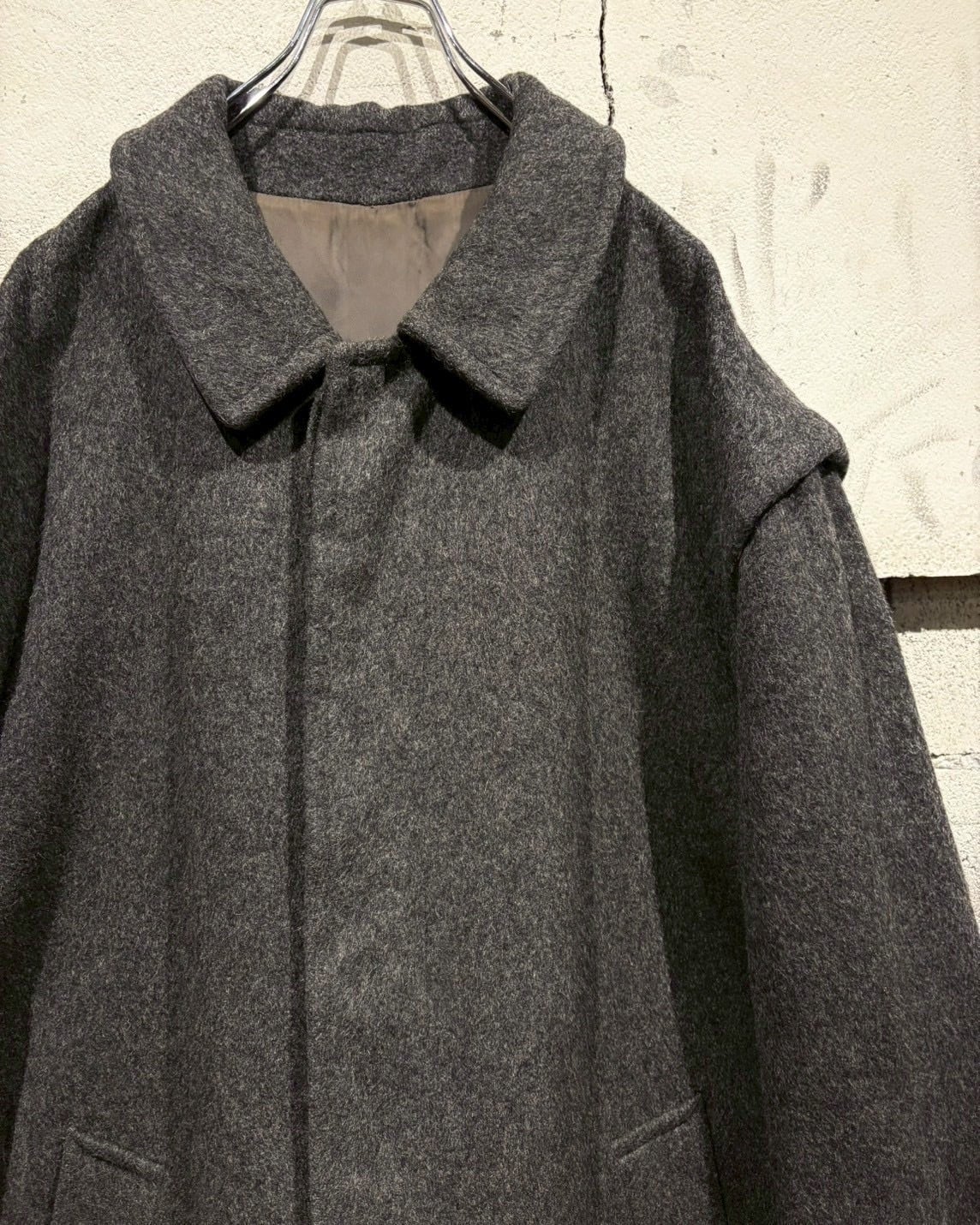 柔らかく起毛感のあるテキスタイルを用いたボディに、ローデンコートのディテールを落とし込んだコート。