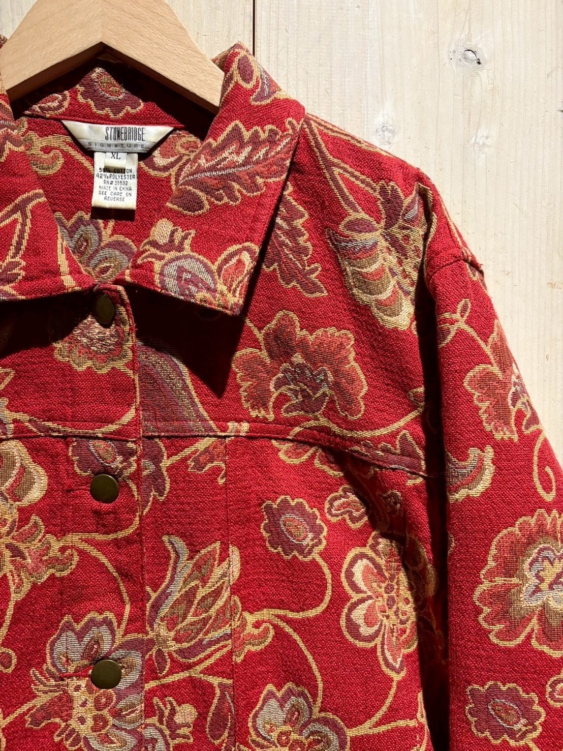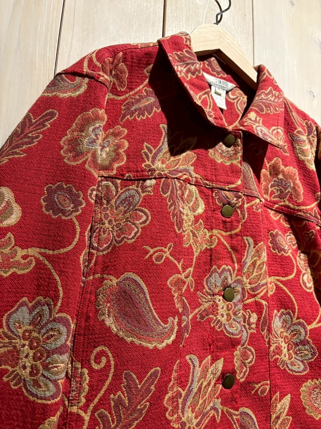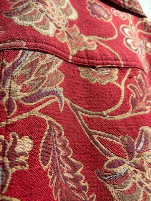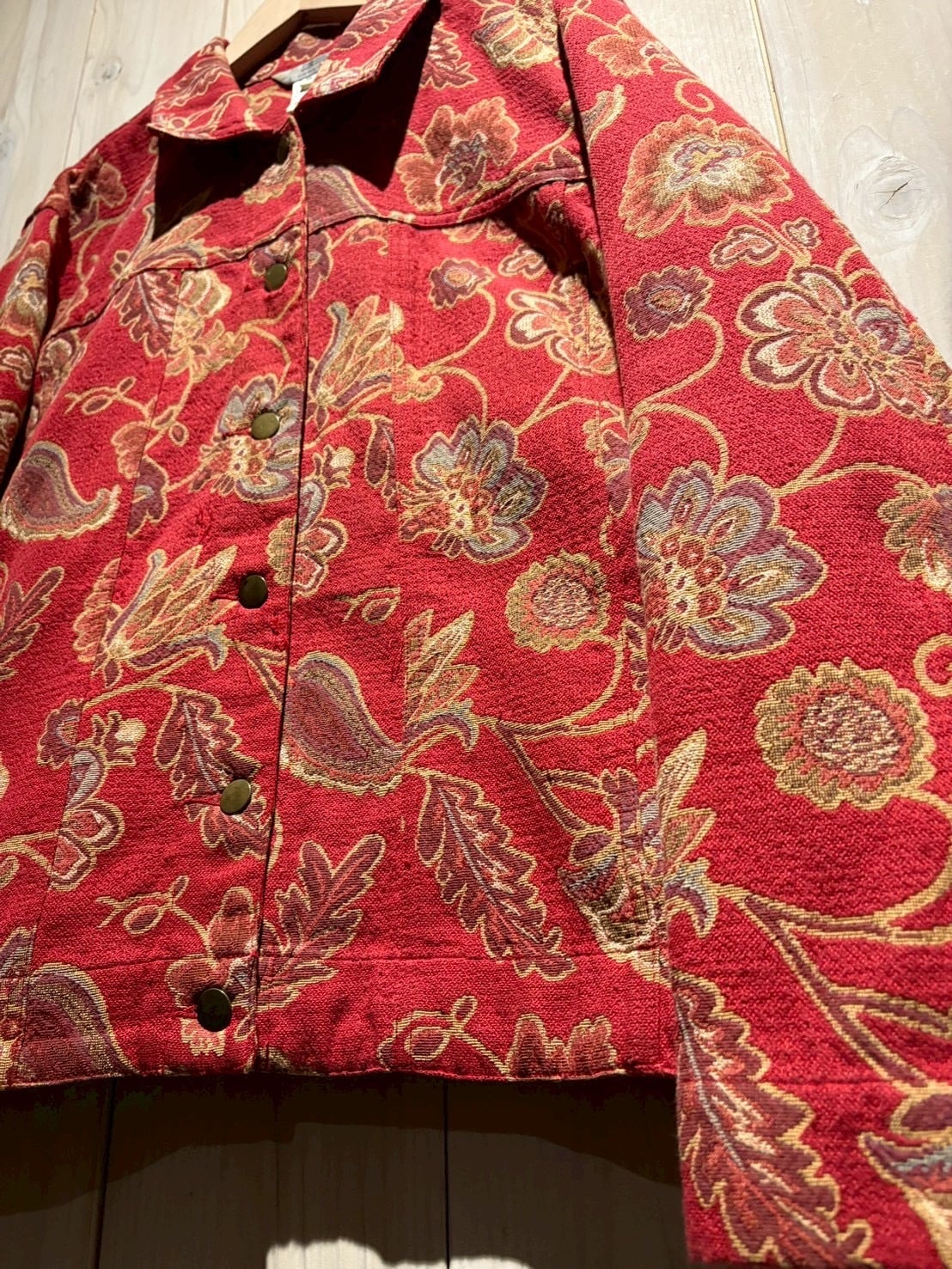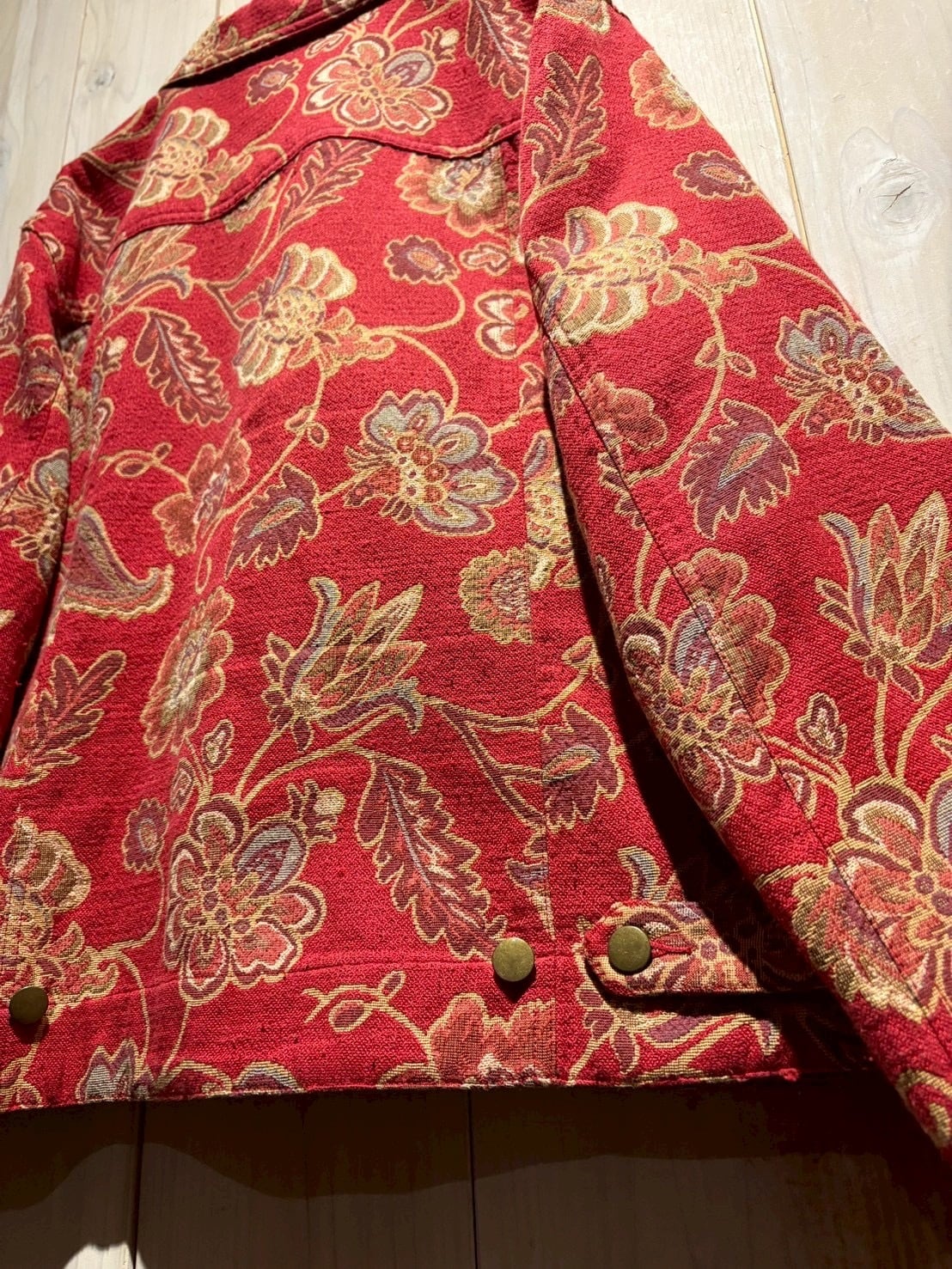 上質なゴブラン織で美しい花柄をボディ全体に表現した、稀少なトラッカー型のゴブランジャケット。