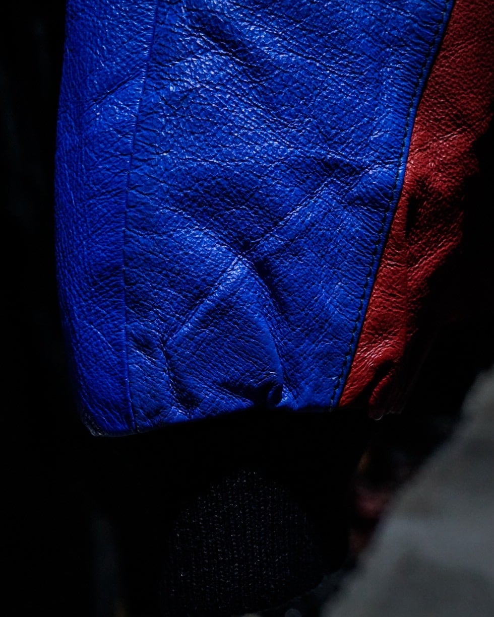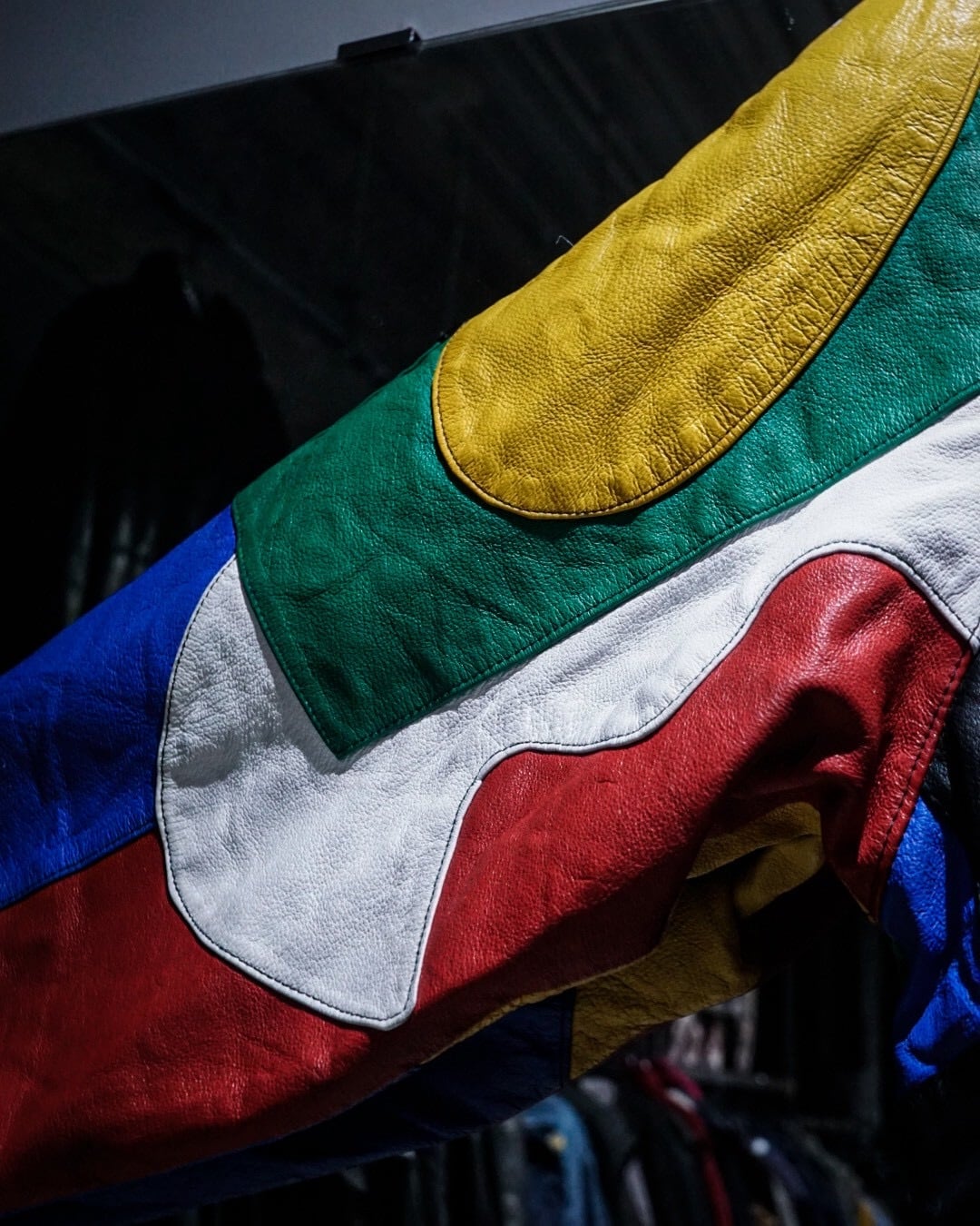 レッド、ブルー、グリーン、イエロー、ホワイト、ブラックと複数のレザーを贅沢に切り替えたペシャルな1着。