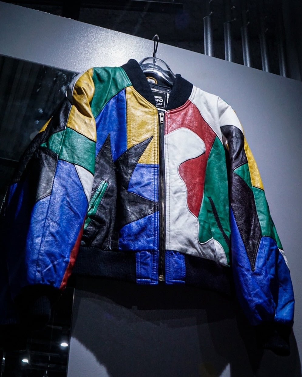 鮮烈なカラーリングで、アーティスティックなパッチワークを施したレザーボンバージャケットをご紹介いたします。
