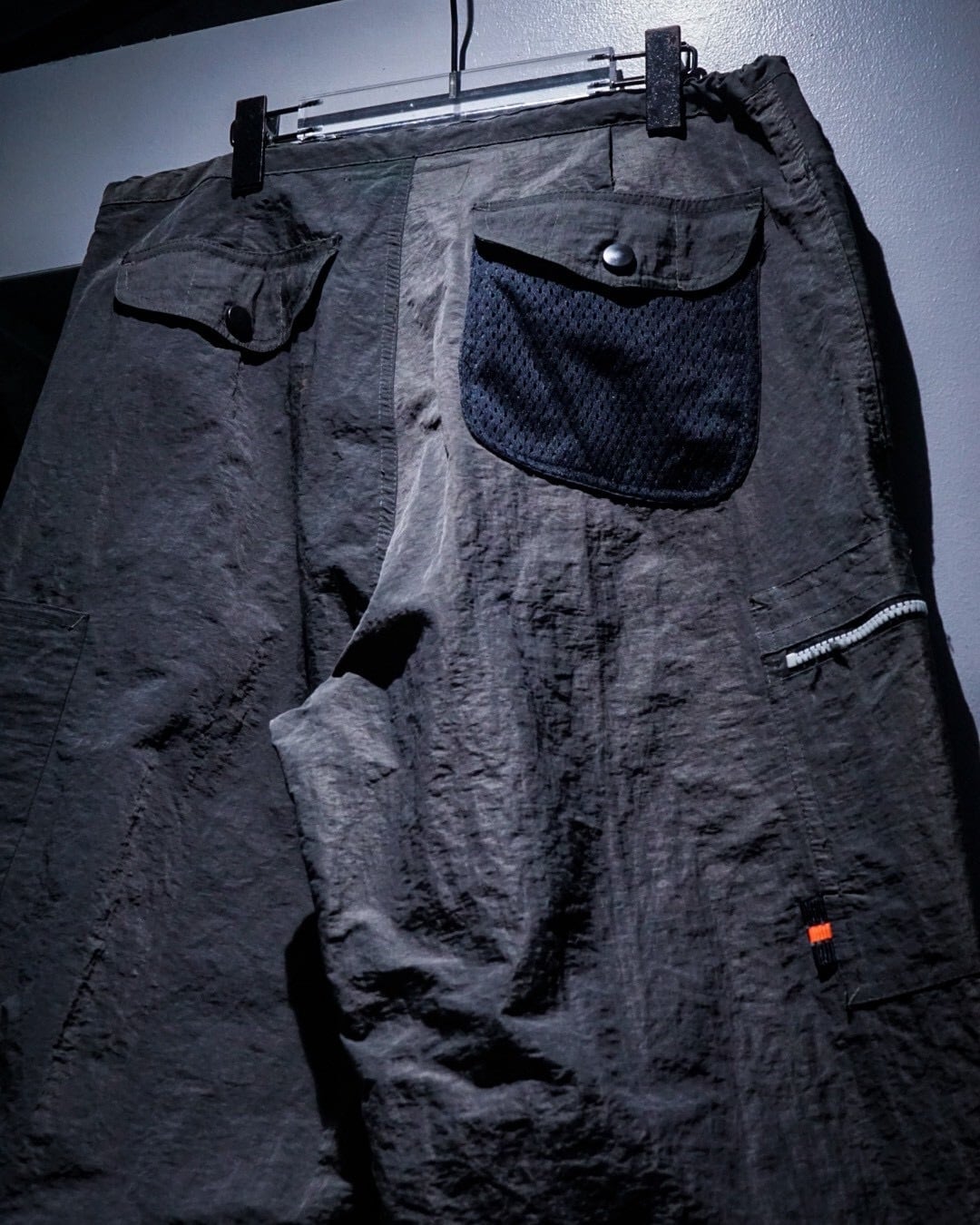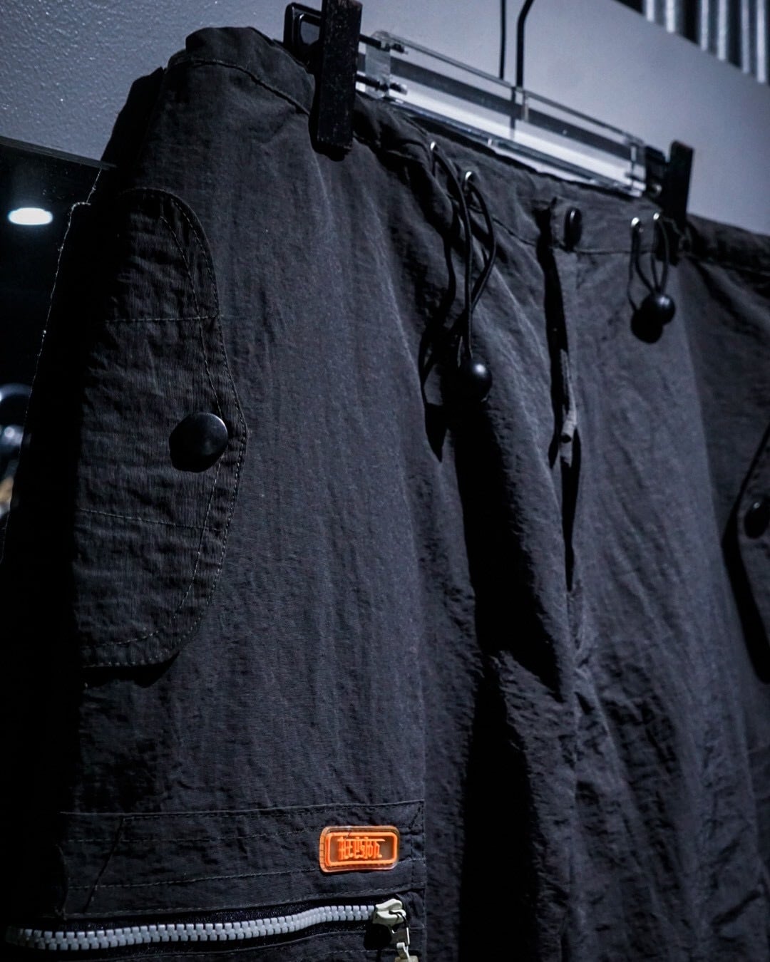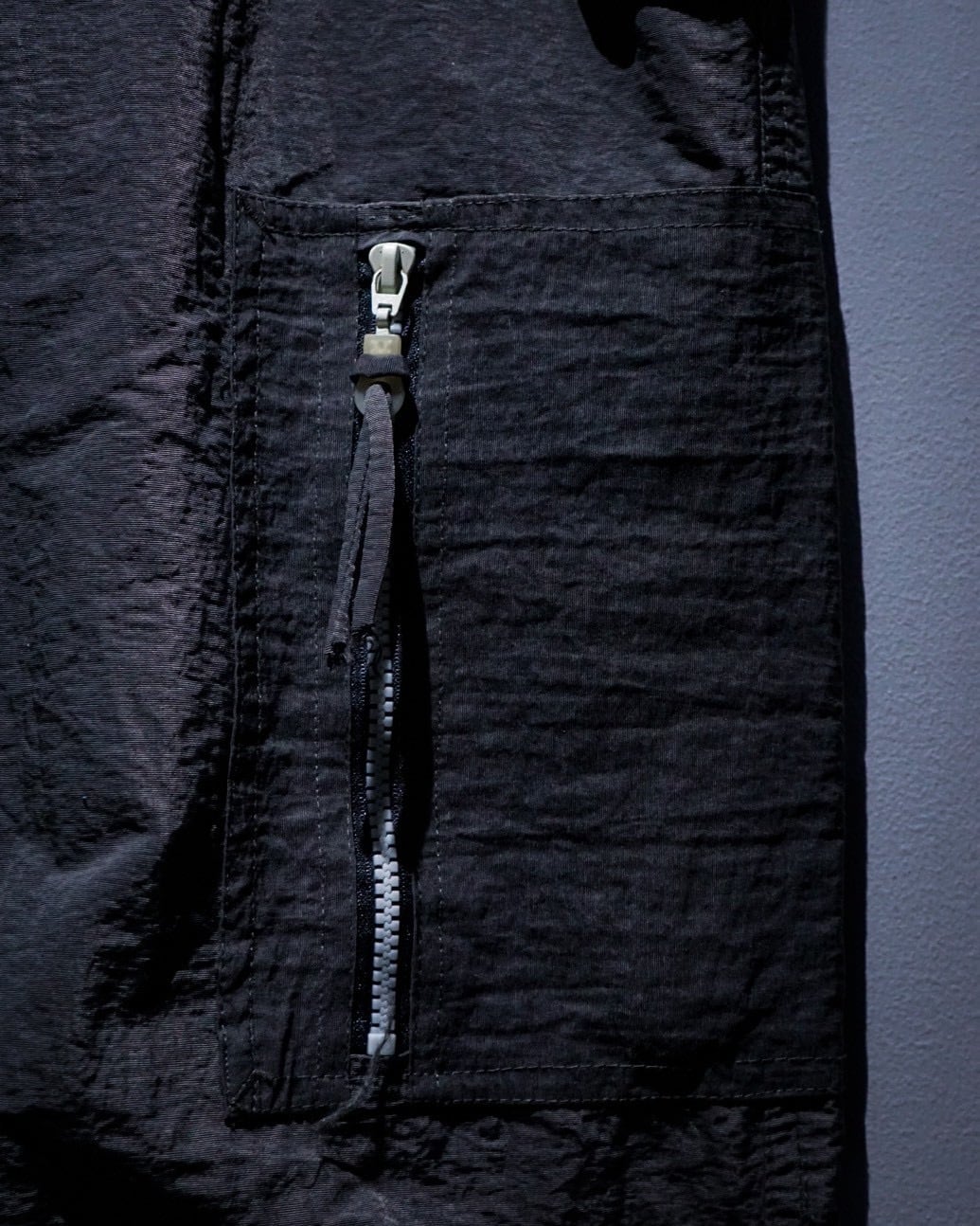 フロントからバックにかけて多方向に配置されたポケット群やドローコード等、計算されたイージーに遊ぶ為のディテールワークも魅力。ロゴパッチやホワイトジップのコントラストも効いていて、シンプルなトップスに合わせるだけで強いアクセントに。