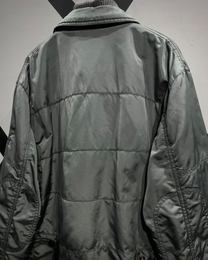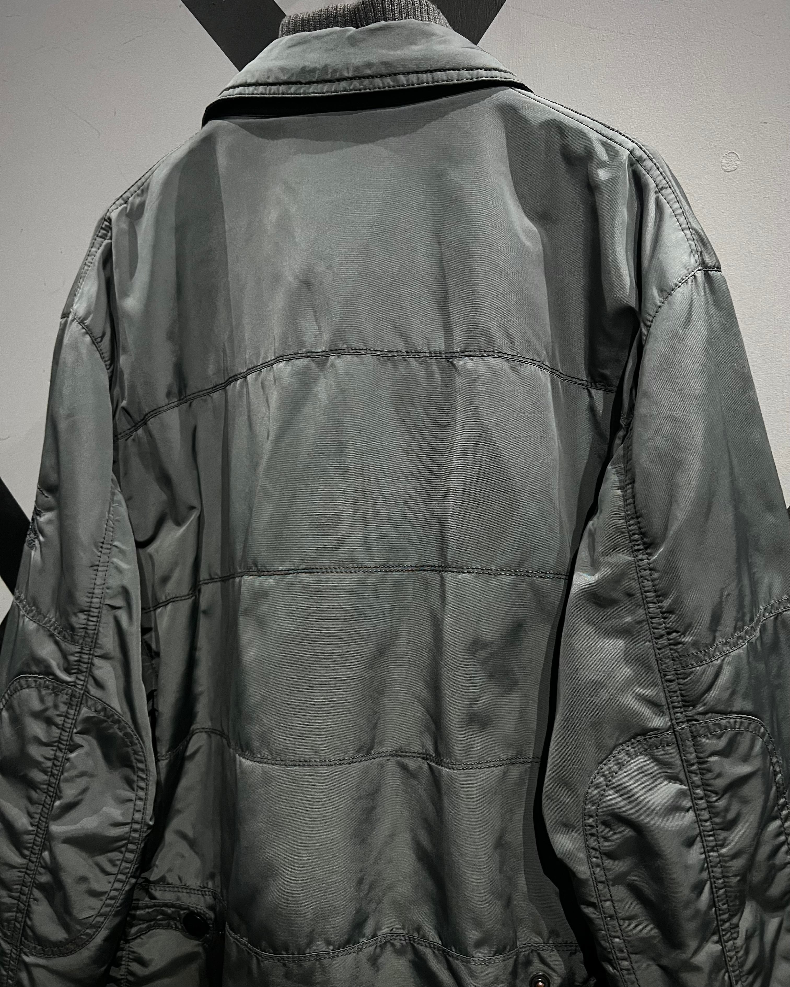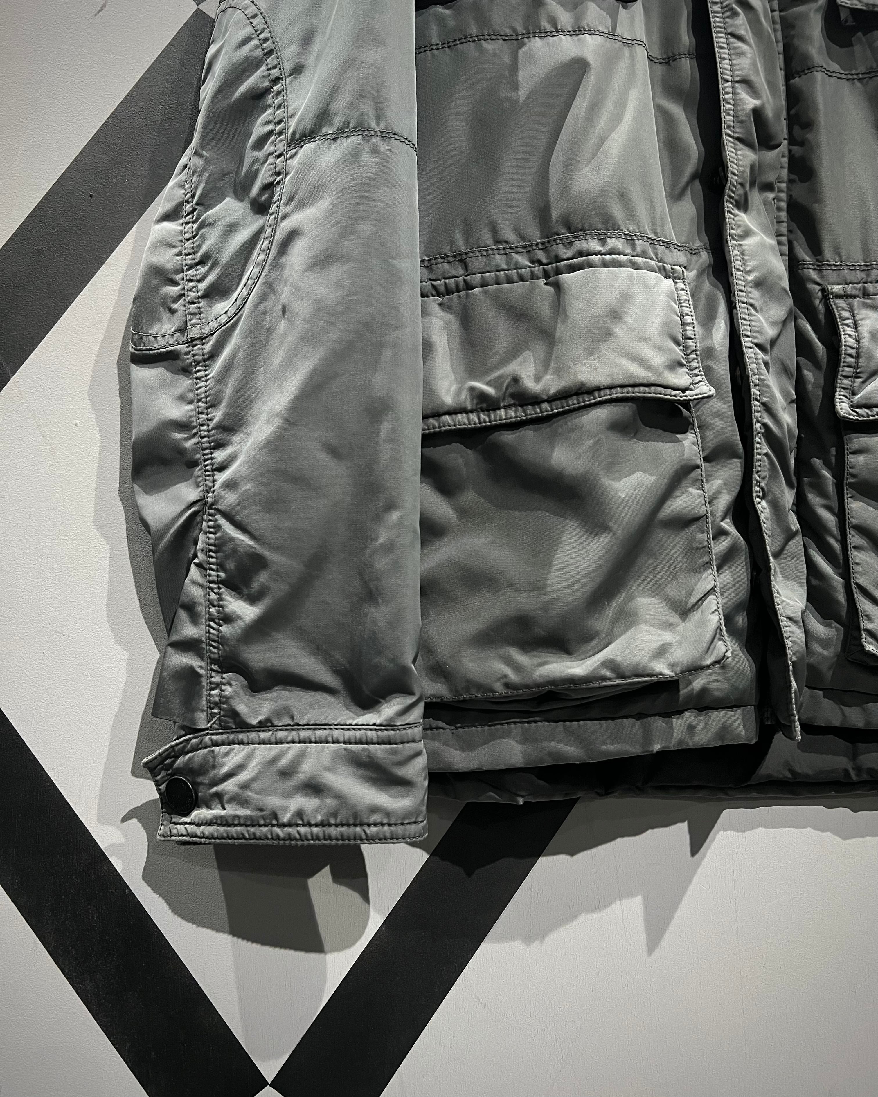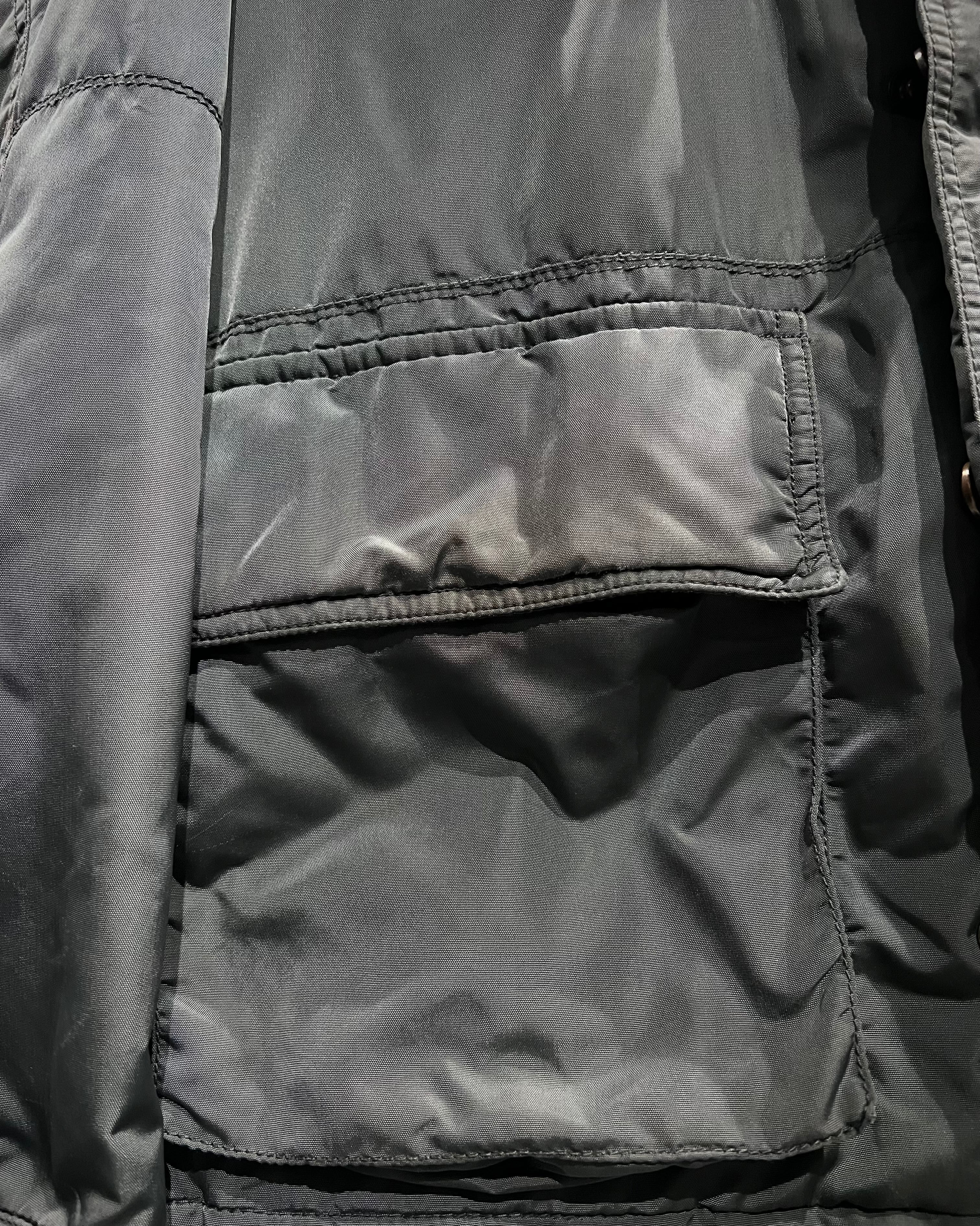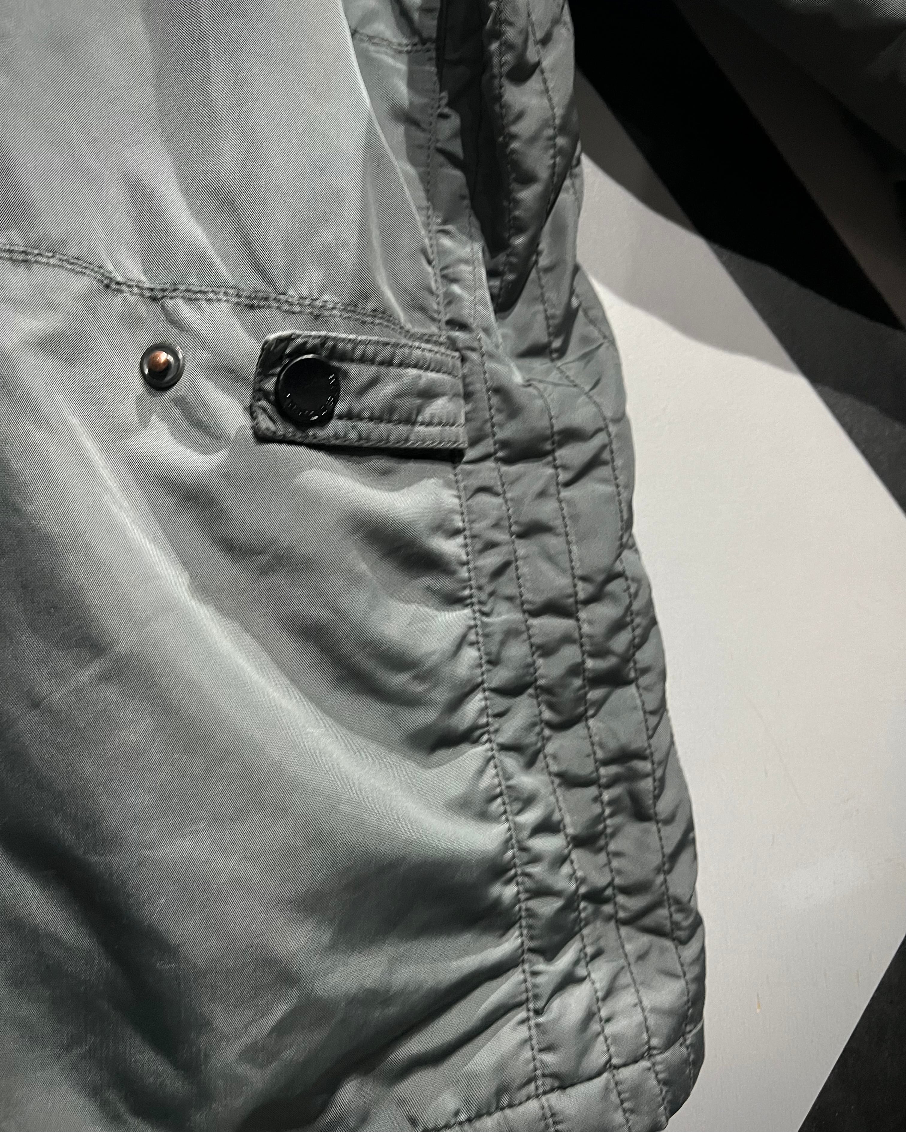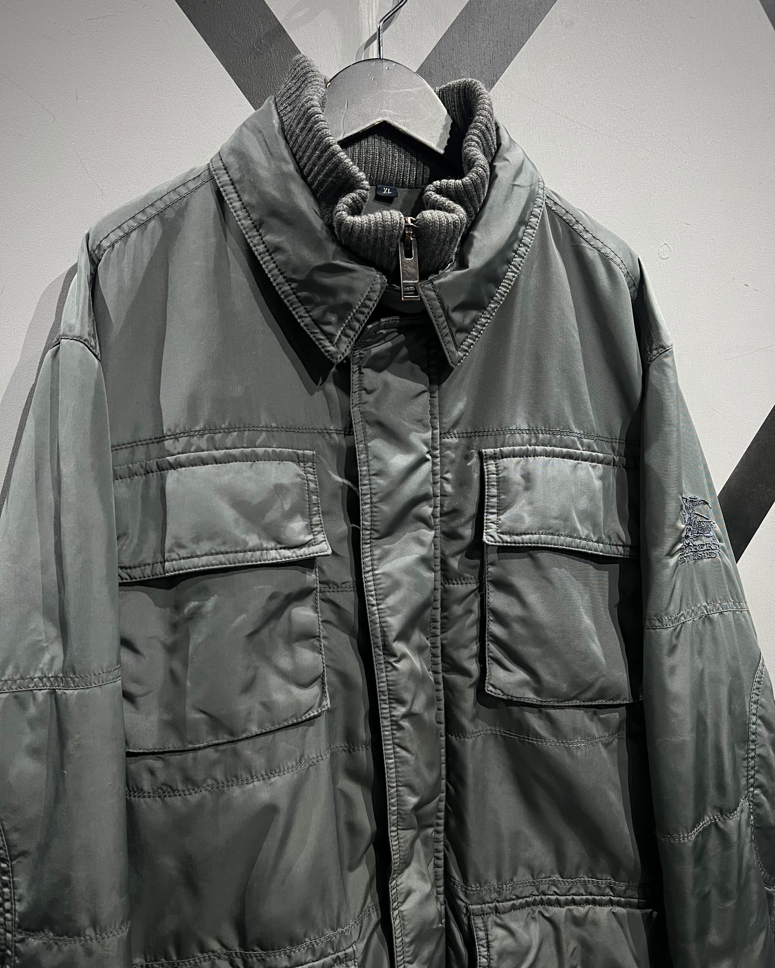 ボディは滑らかなグレーカーキナイロンを採用し、中綿入りで軽くて暖かいのが嬉しいポイント。フロントには4つのポケットを配置し、ミリタリーの武骨さをスマートに取り入れたバランス感が秀逸です。袖のエンブレム刺繍や、背面腰ののアジャスターなど、バーバリーの細部へのこだわりも◎