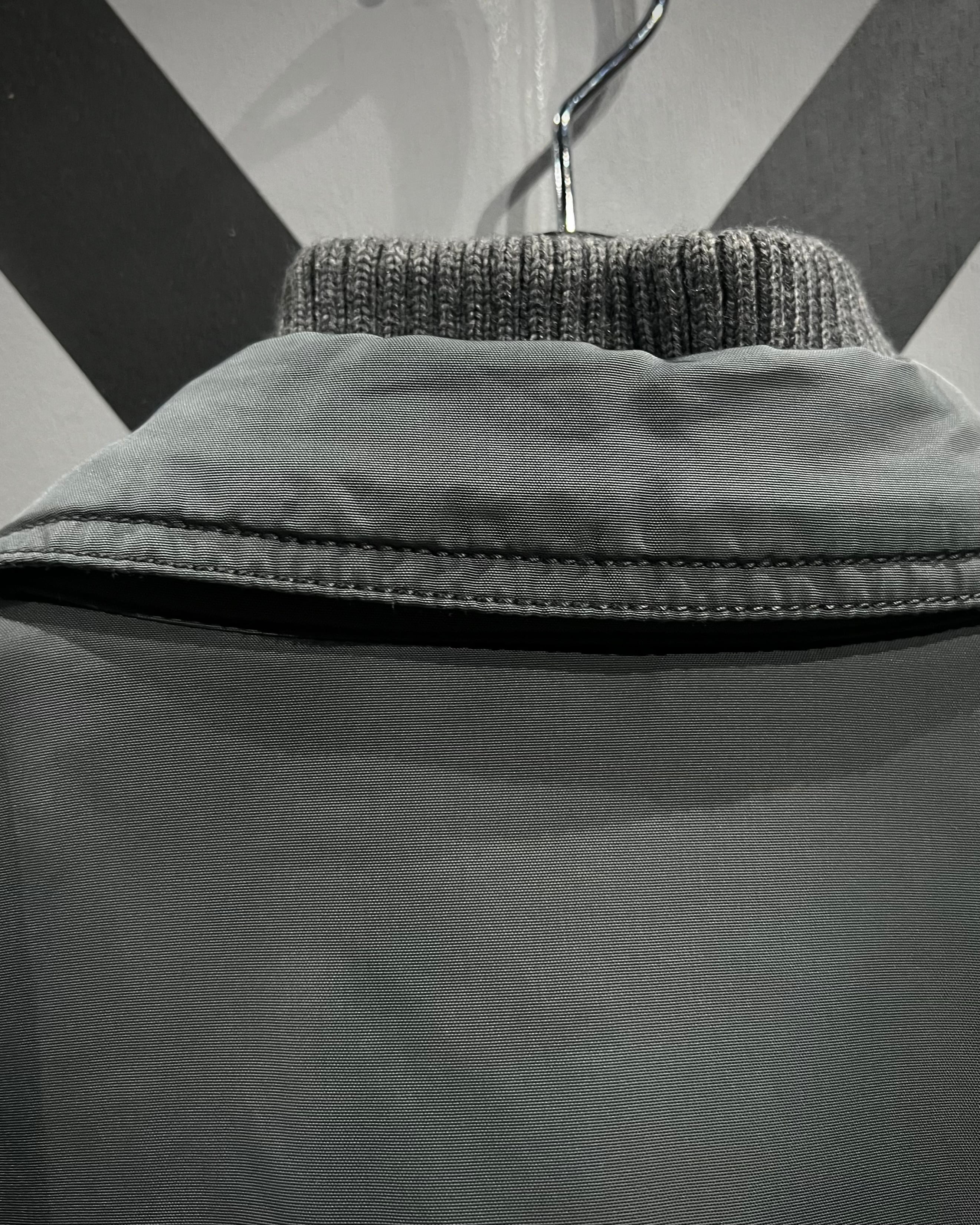 最大の特徴は、まるでジップアップニットを中に忍ばせたようなレイヤード風のデザイン。ナイロンシェルの内側から覗くリブニットのハイネック構造が、1枚で完全にスタイリングを成立させてくれる仕上がりで、重ね着したような深みが生まれ冬のアウタースタイルに確かな奥行きをプラスしてくれます。