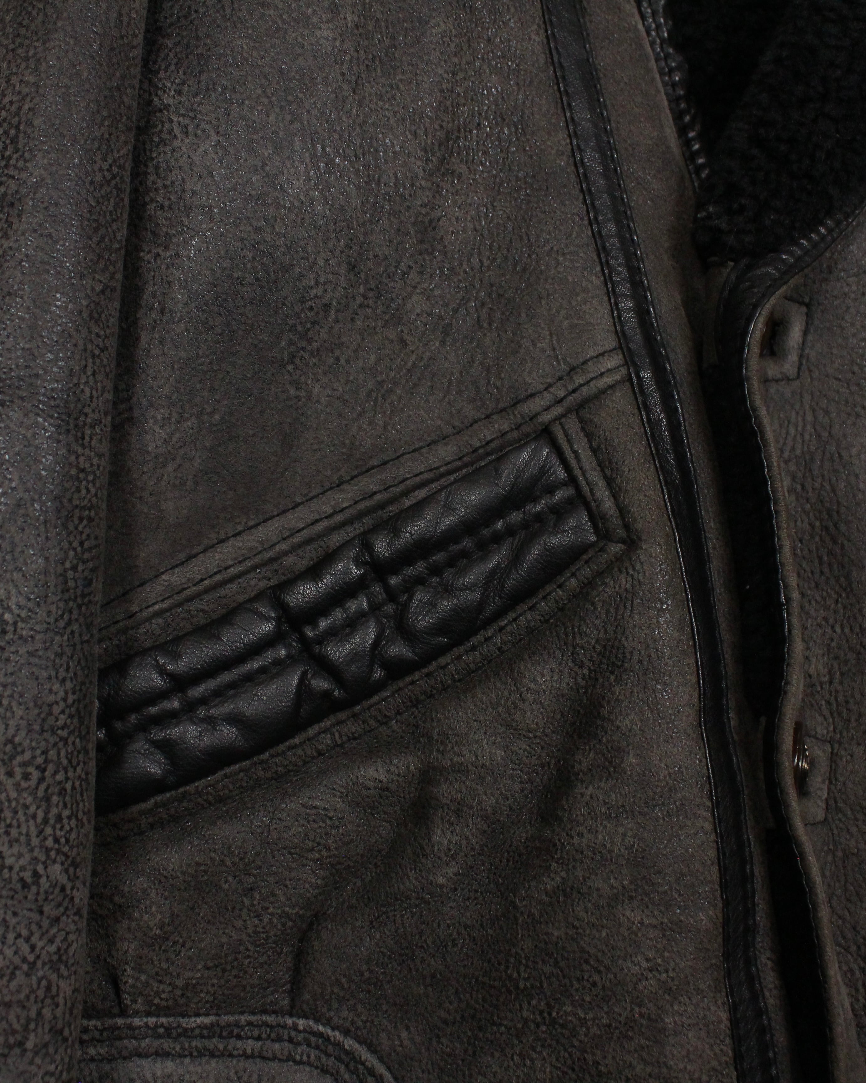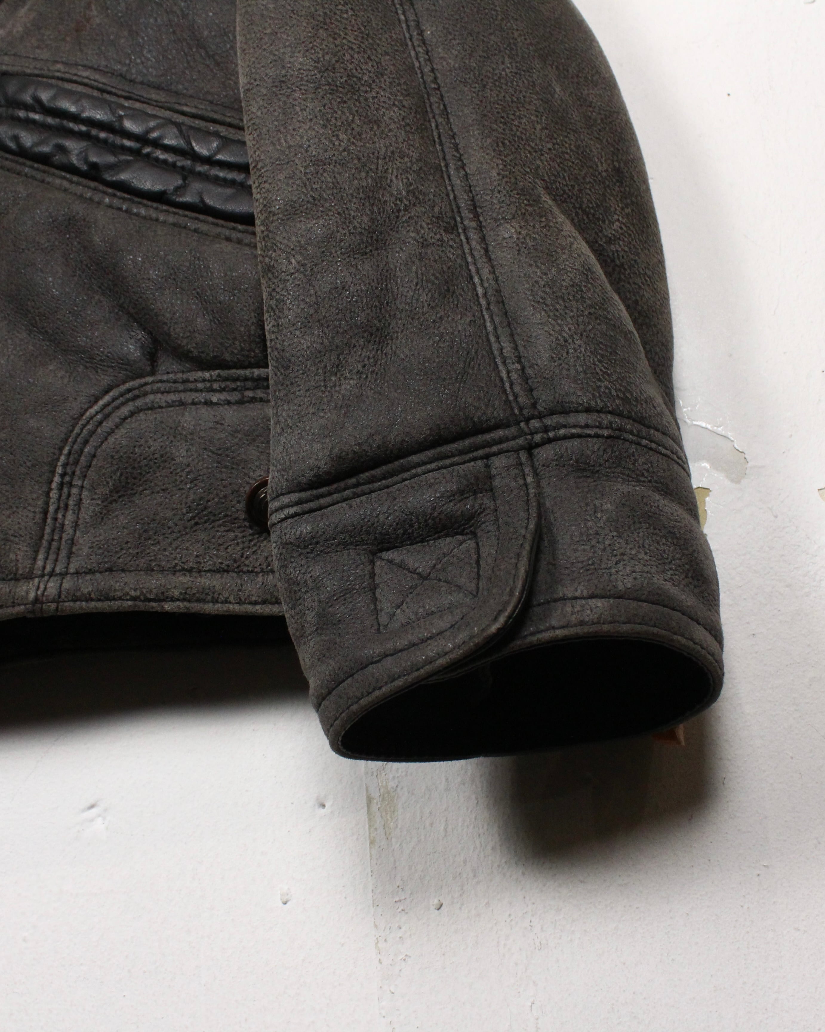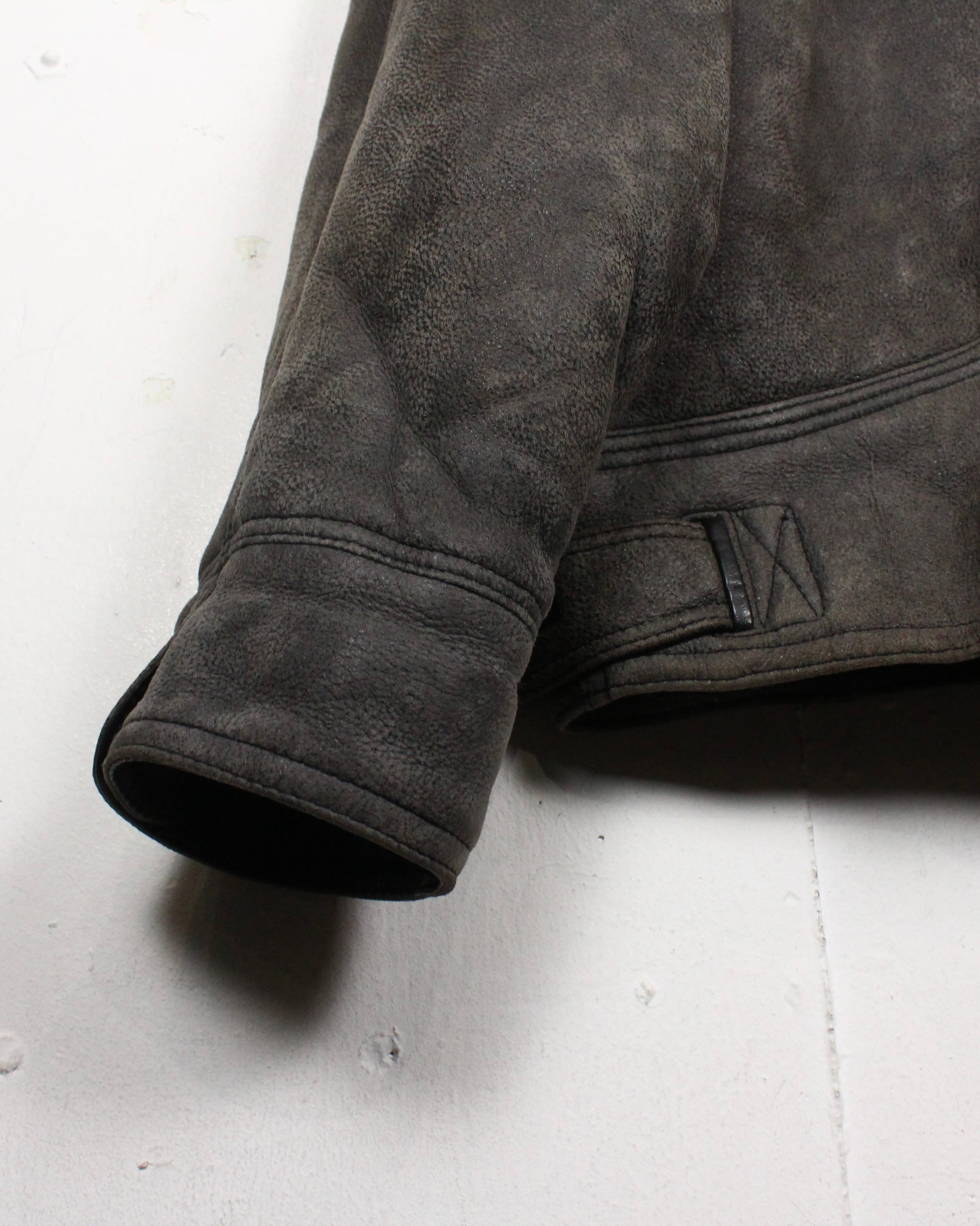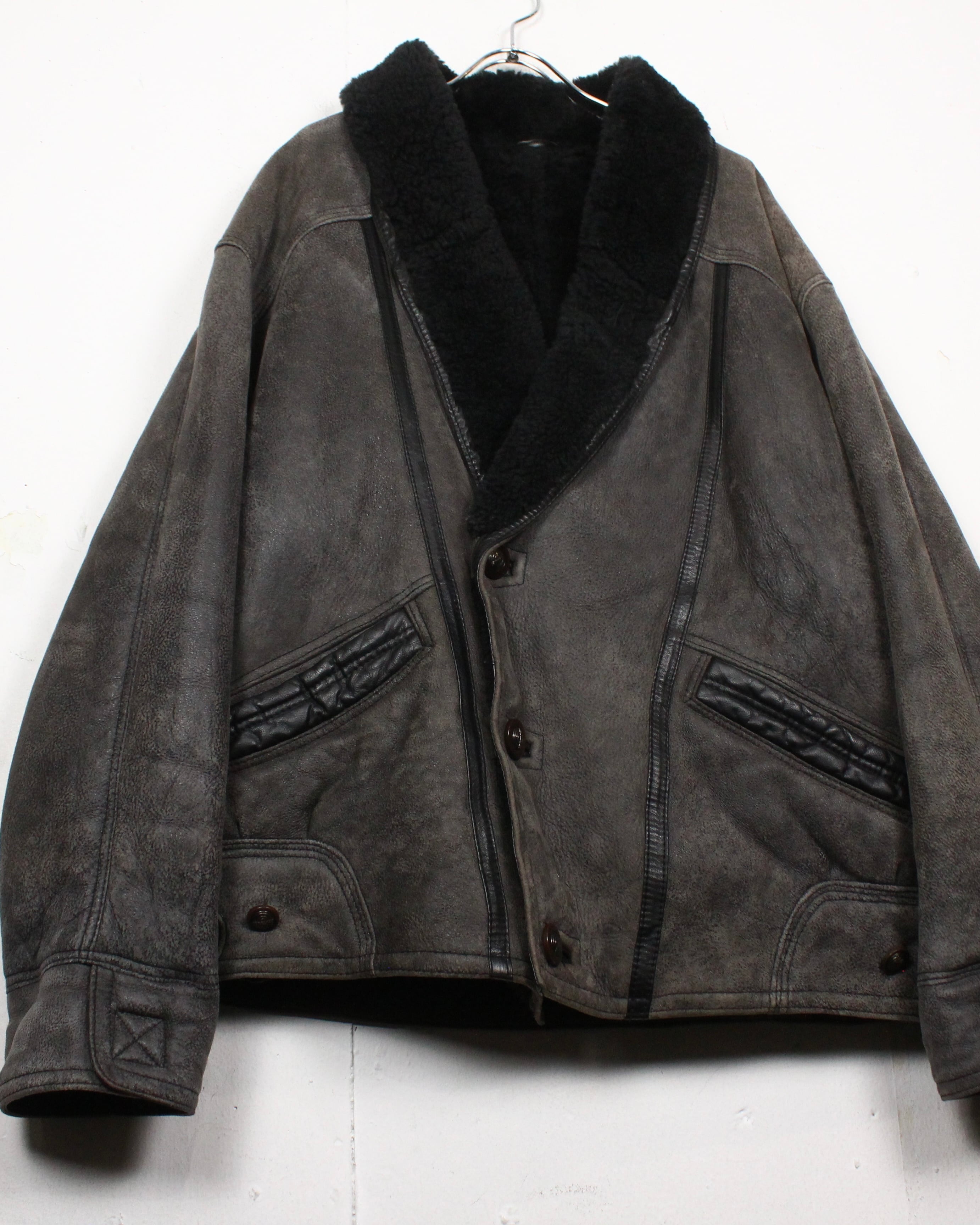 エイジングによるグレーのカラーリングにミニマルで洗練されたデザインが印象的な、超高品質な当店らしい至極のムートンジャケットをご紹介いたします。
