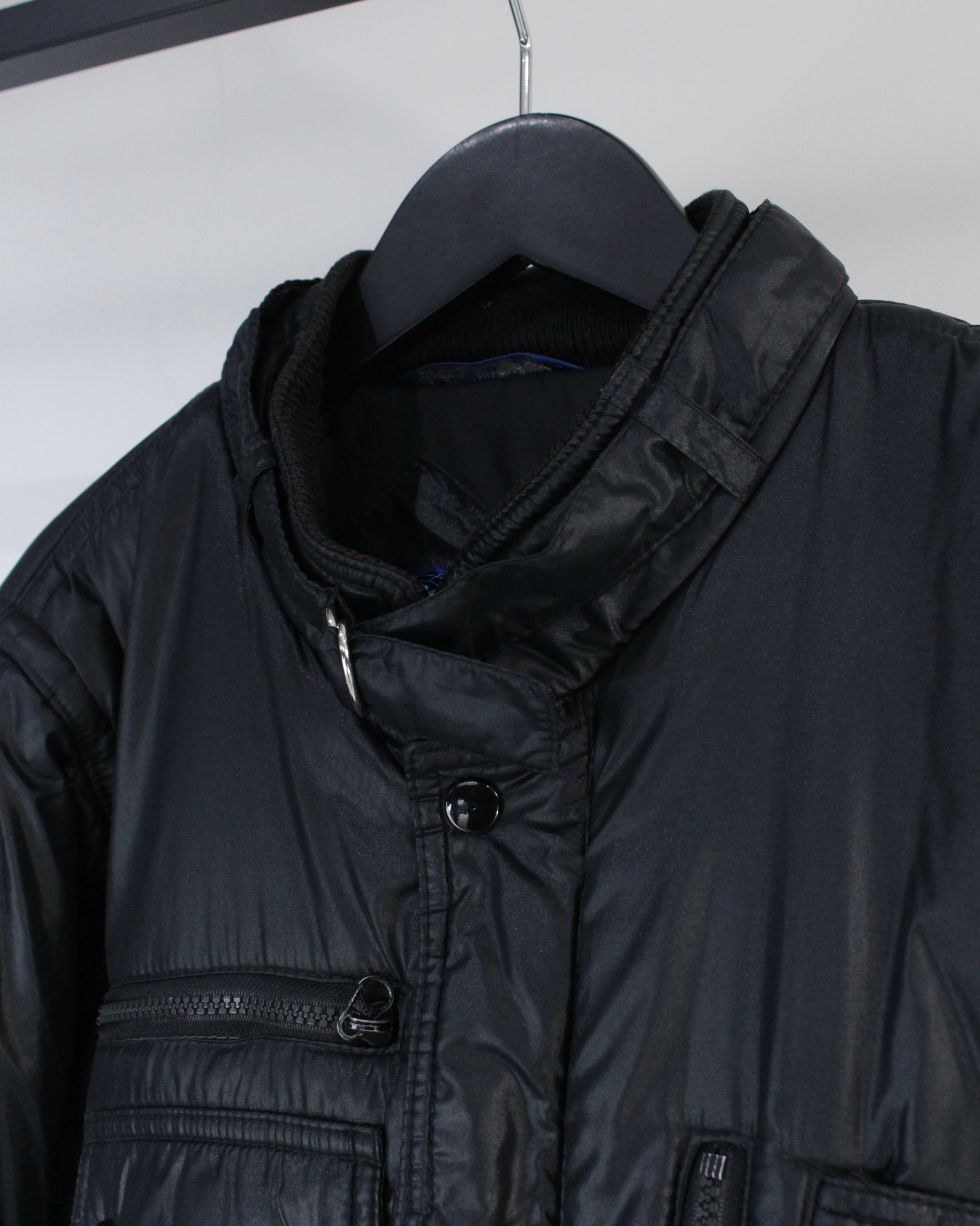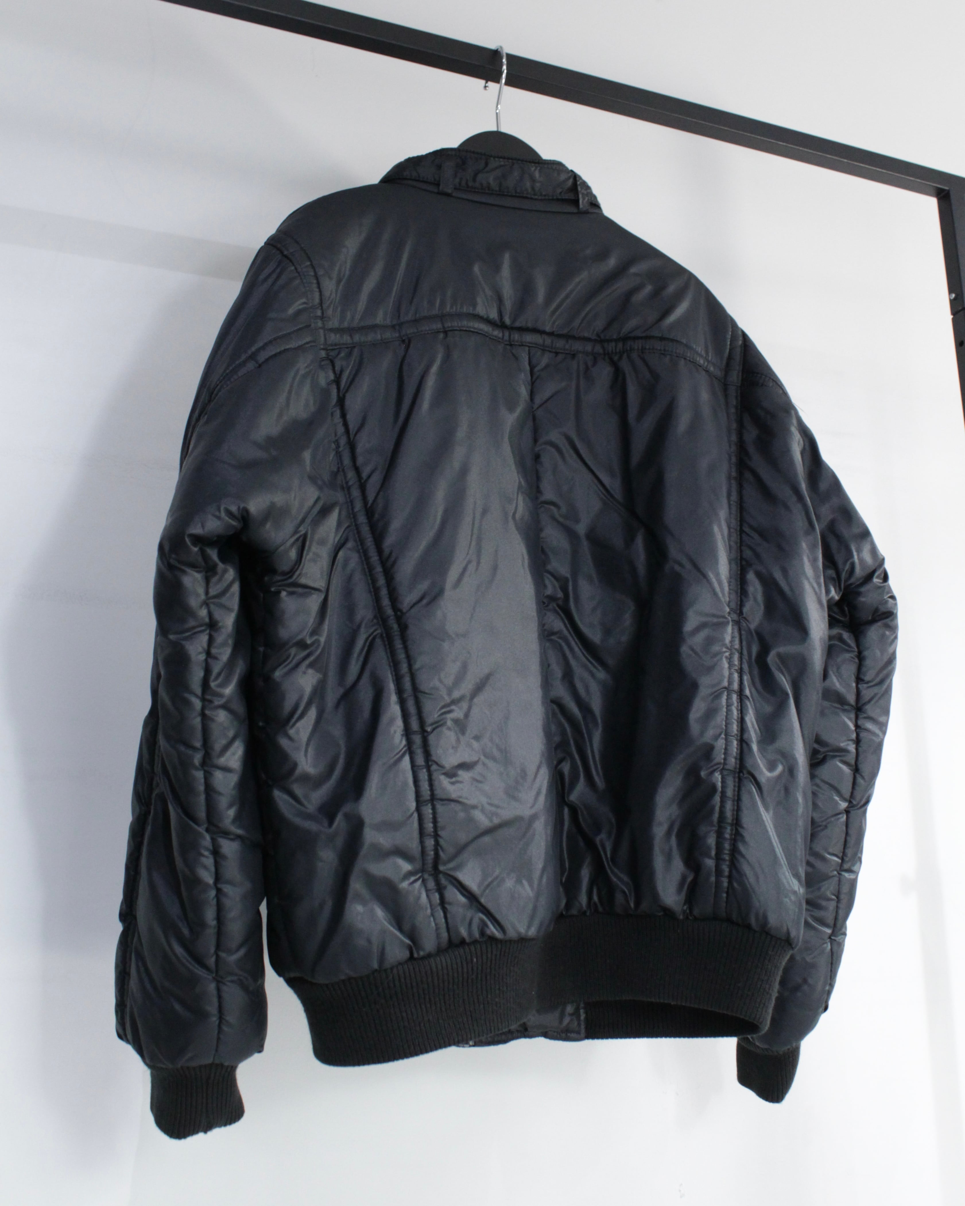 滑らかでタフなナイロン素材をベースに、随所はバイカーアイテムらしいギミックの数々を載せた80's ヴィンテージのジャケット。