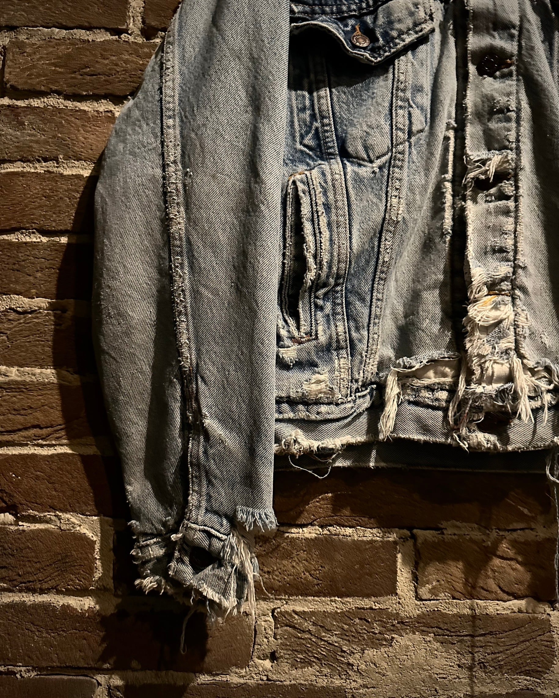 ハンドドローイングの熱量と、フェード&ボロが合わさった、スペシャルなデニムジャケットです。