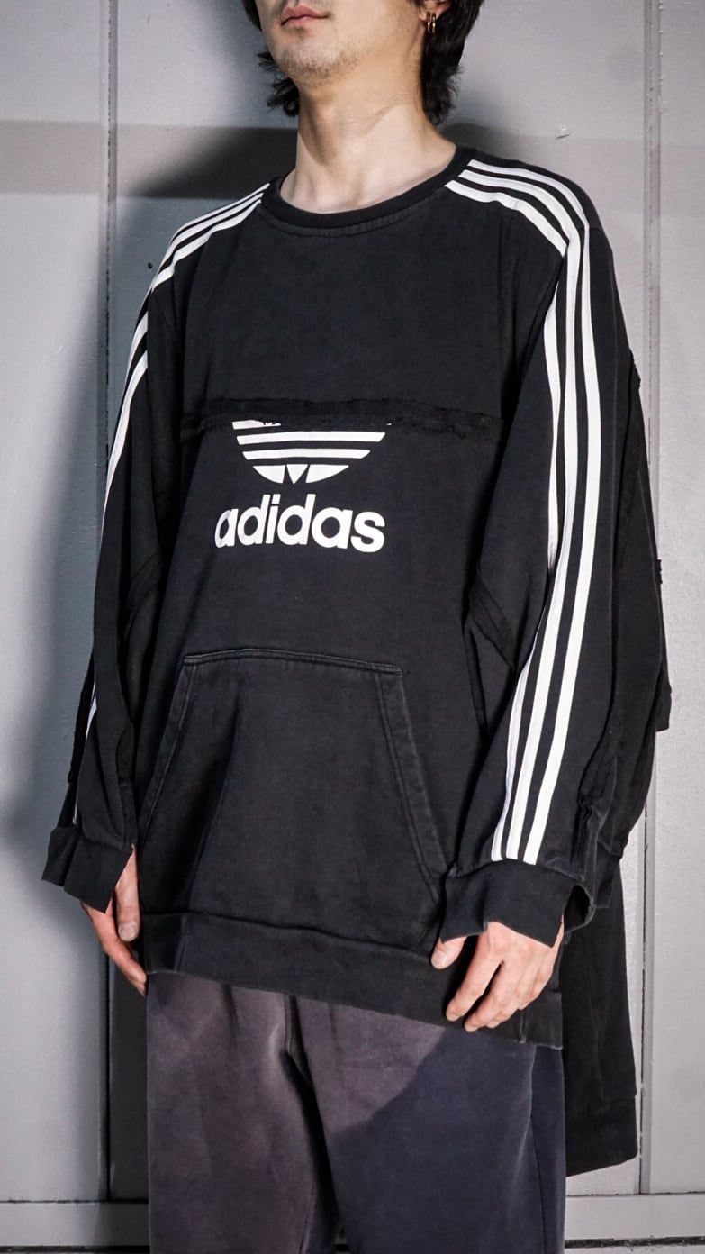 当店が誇るOriginal Remakeより、ヴィンテージのスウェット、フーディーを解体、再構築させたドッキングパターンの超スペシャルな1着。