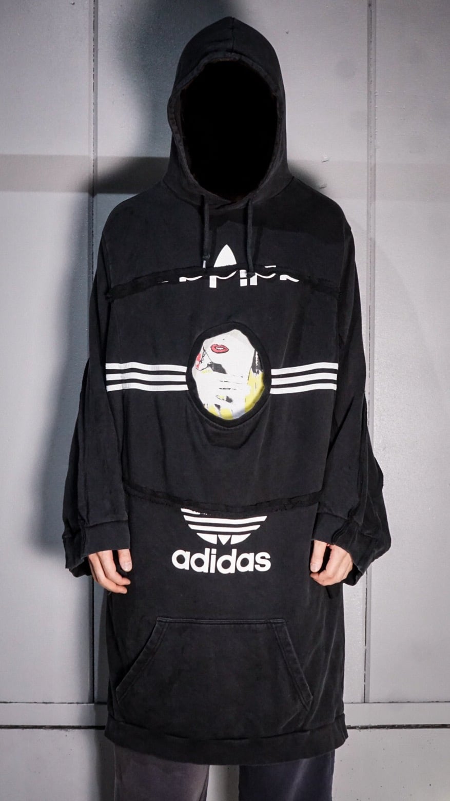 繋ぎ合わせたパーツにはスウェットの首周りからアームをドッキングする事で、2箇所からの首のアクセスが可能に。