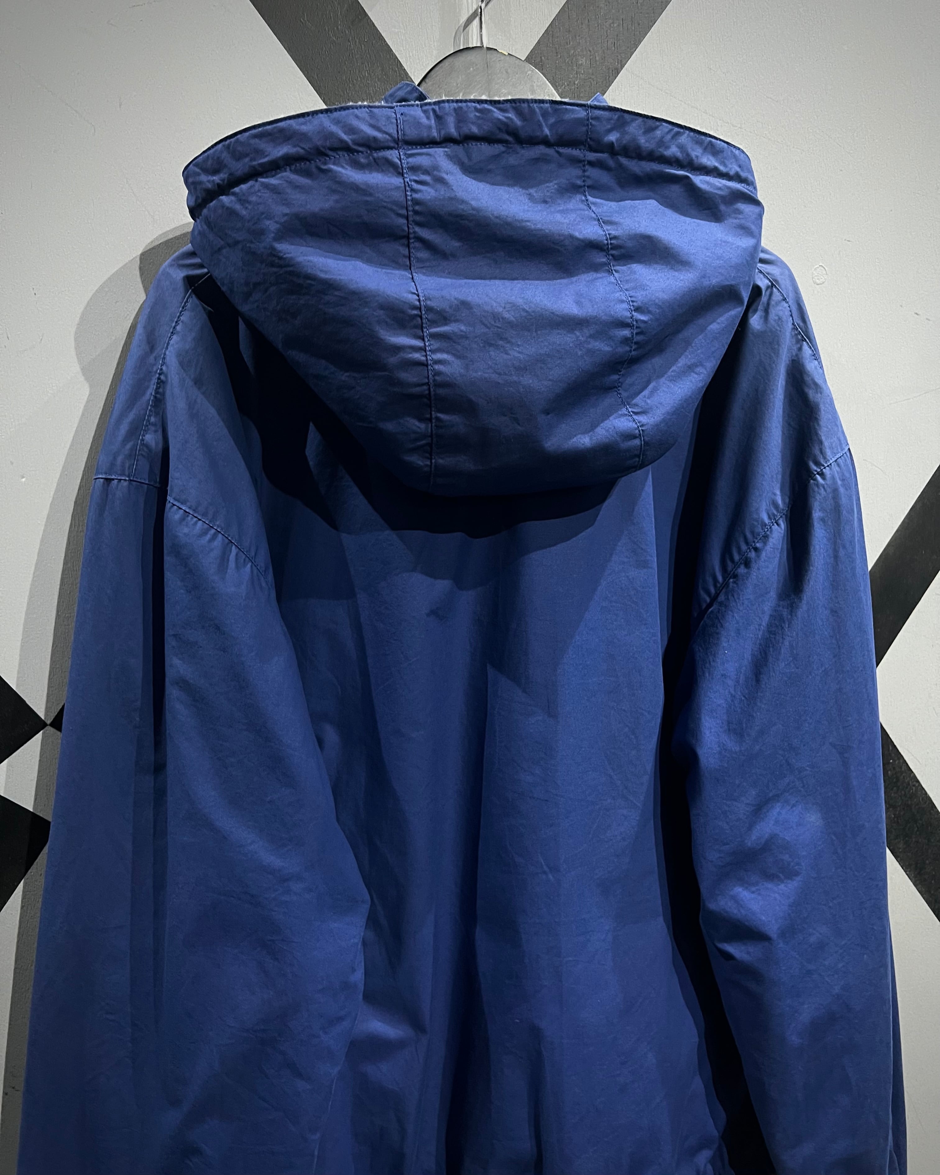 程よくゆるい肩落ちと丸みのあるシルエットが特徴で、ニットやスウェットの上にガバッと羽織るだけで完結。フロントの大ぶりのポケットや、ボタンで取り外し可能なドローコード付きフードなど、実用性を感じるディテールも魅力ですね。