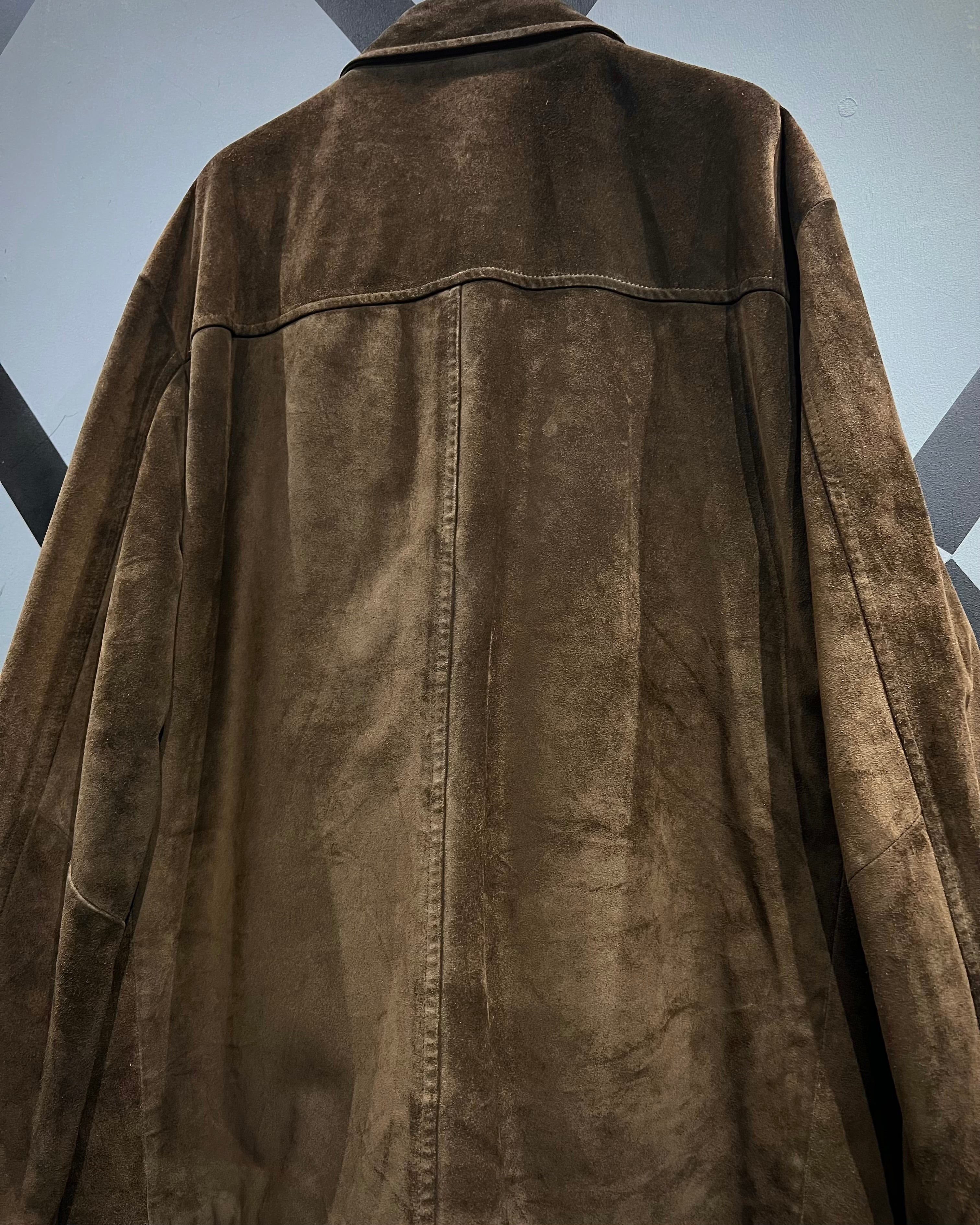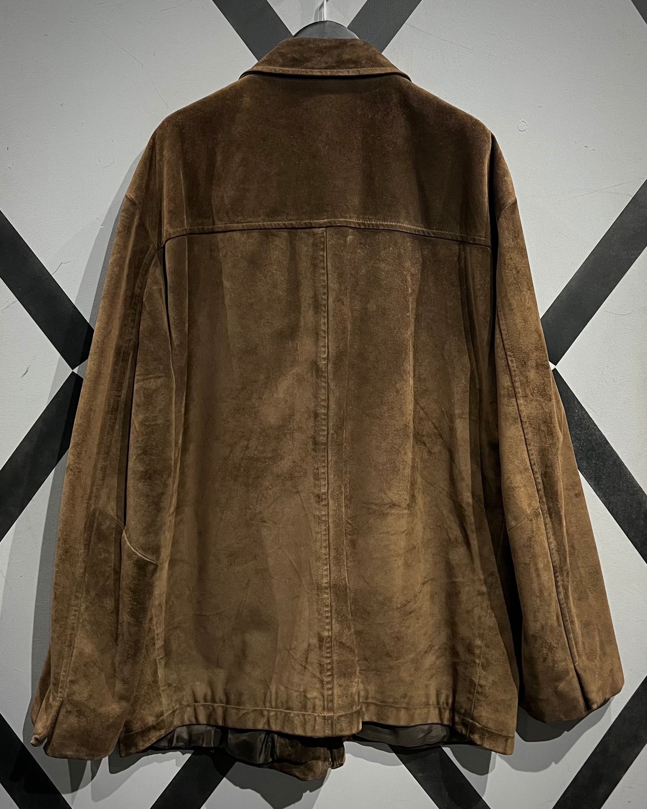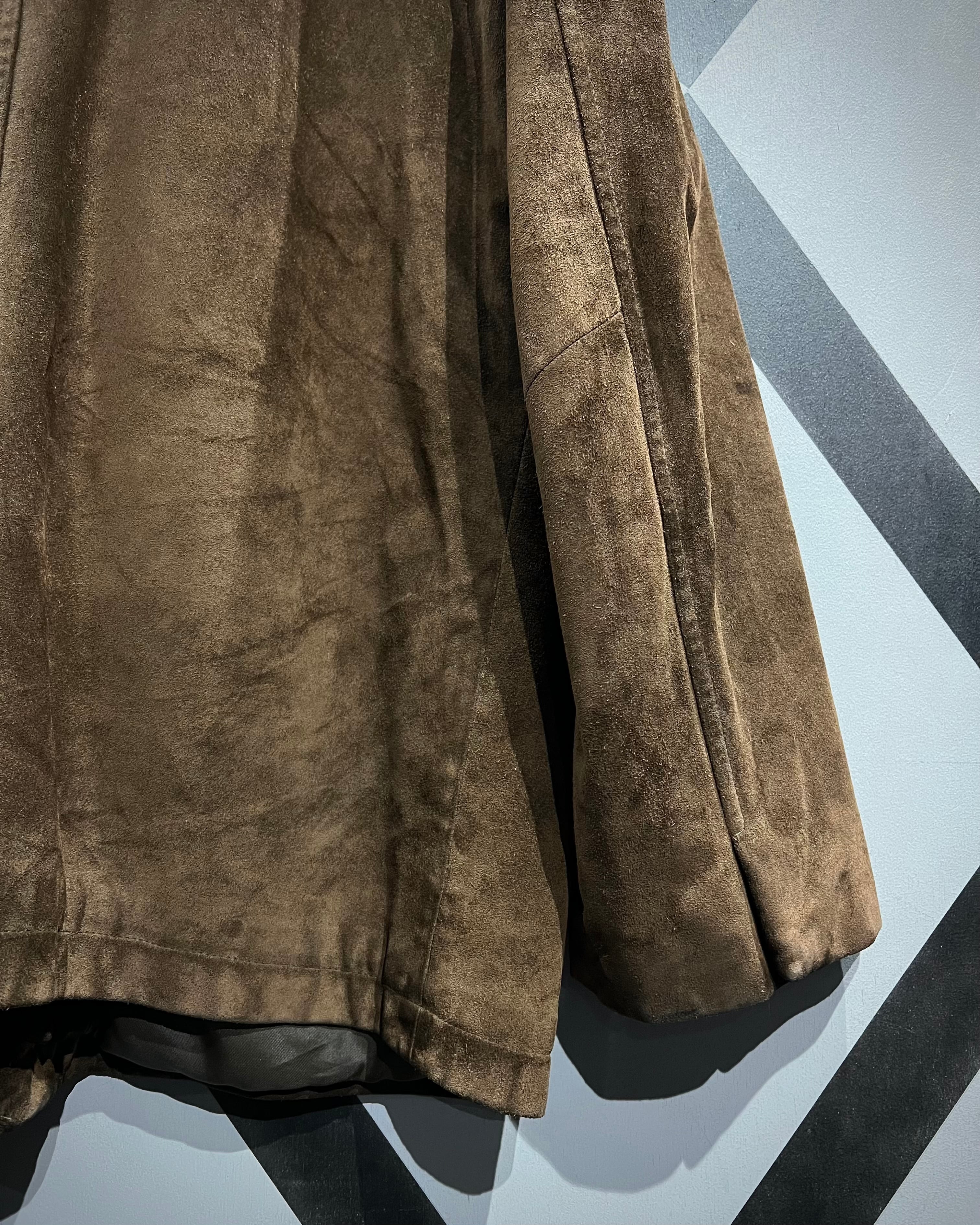深いブラウンのボディは経年で落ち着いたトーンへ変化し、古着ならではの奥行きある色味。光の当たり方で見えるわずかな陰影が、スエード特有のラグジュアリーさを引き立てる仕上がりに。