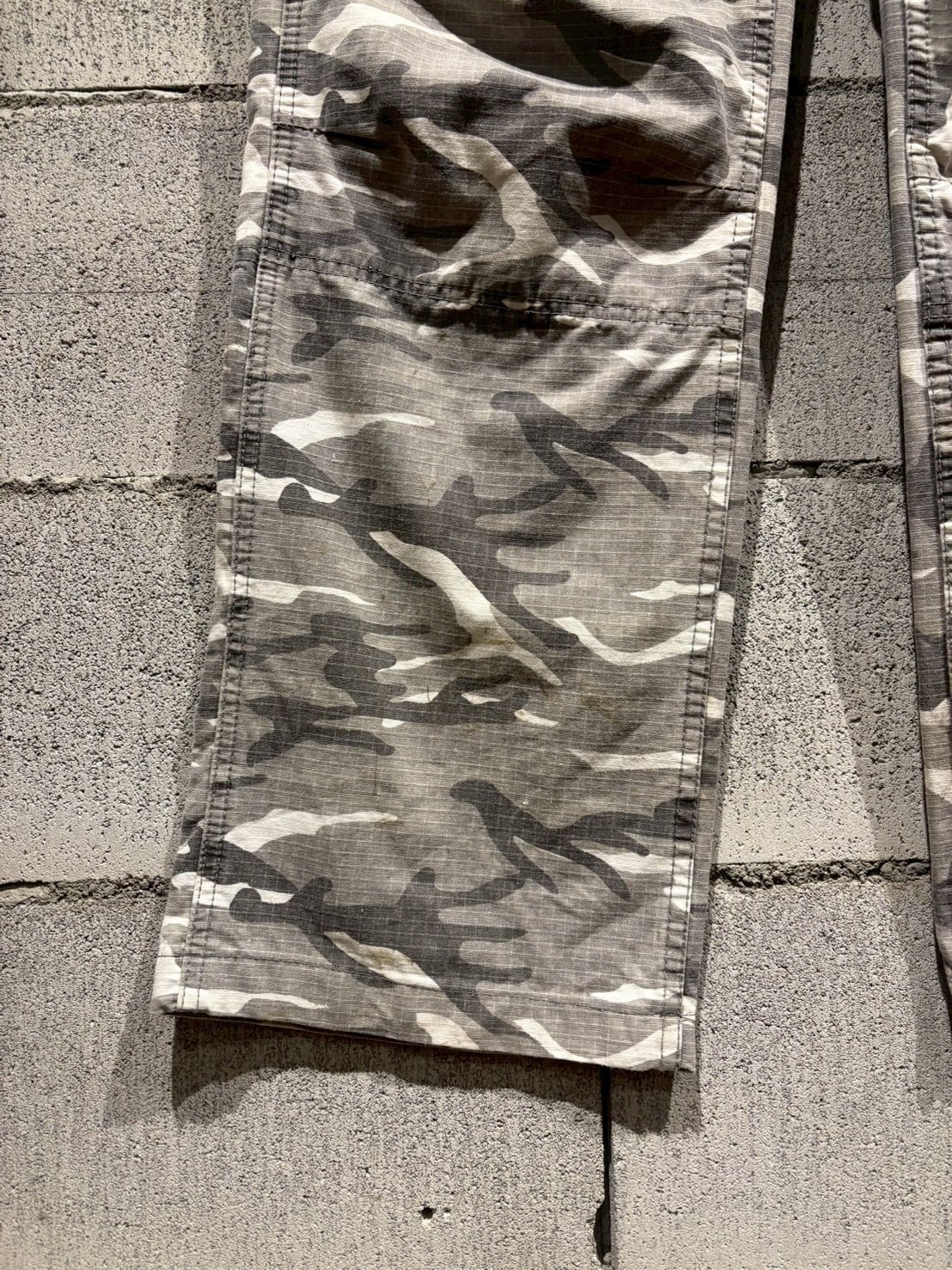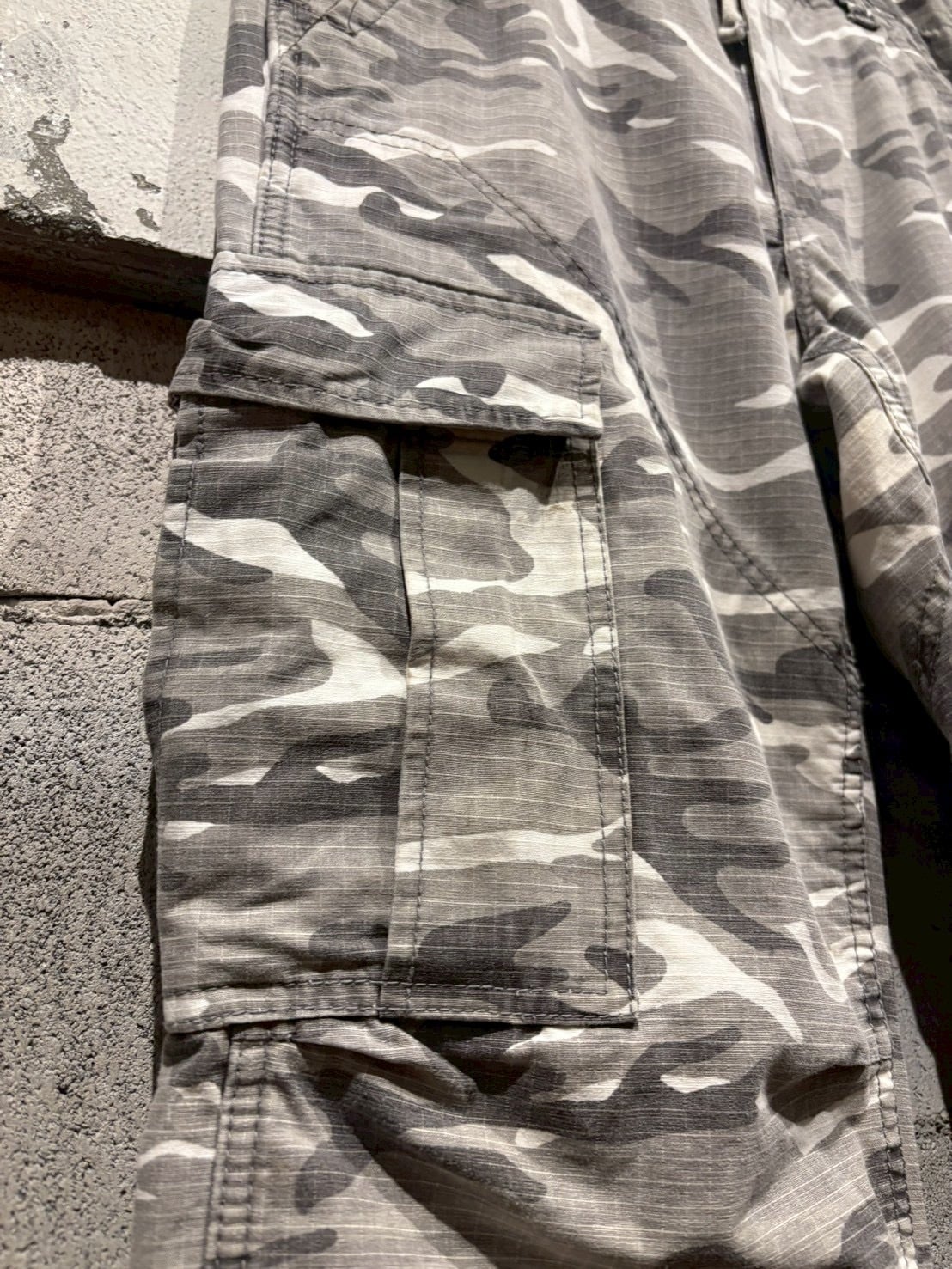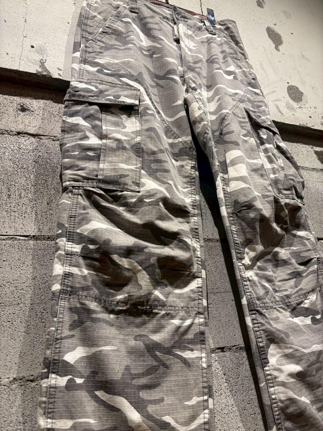 洗練されたシティカモをボディ全体に載せた、ダブルニーのカーゴパンツ。