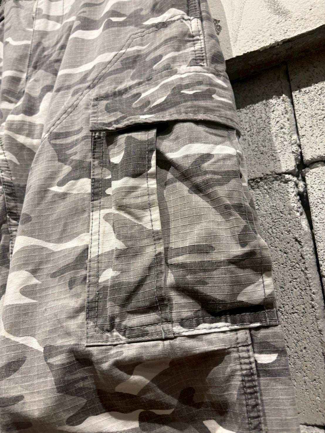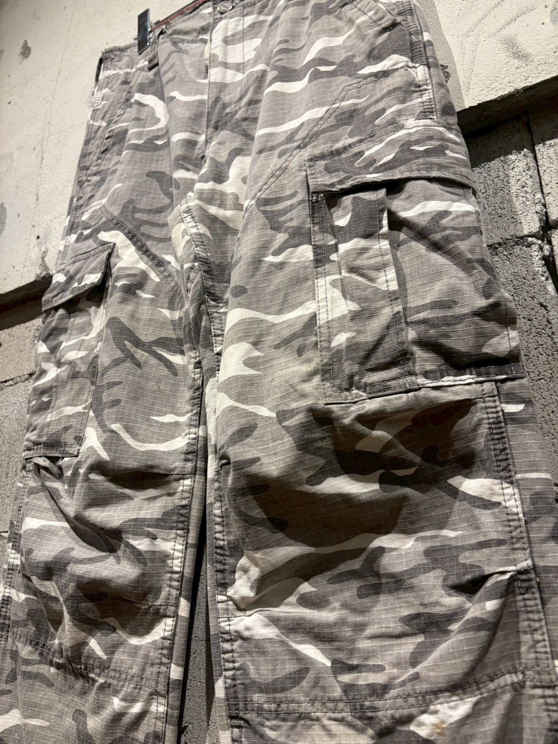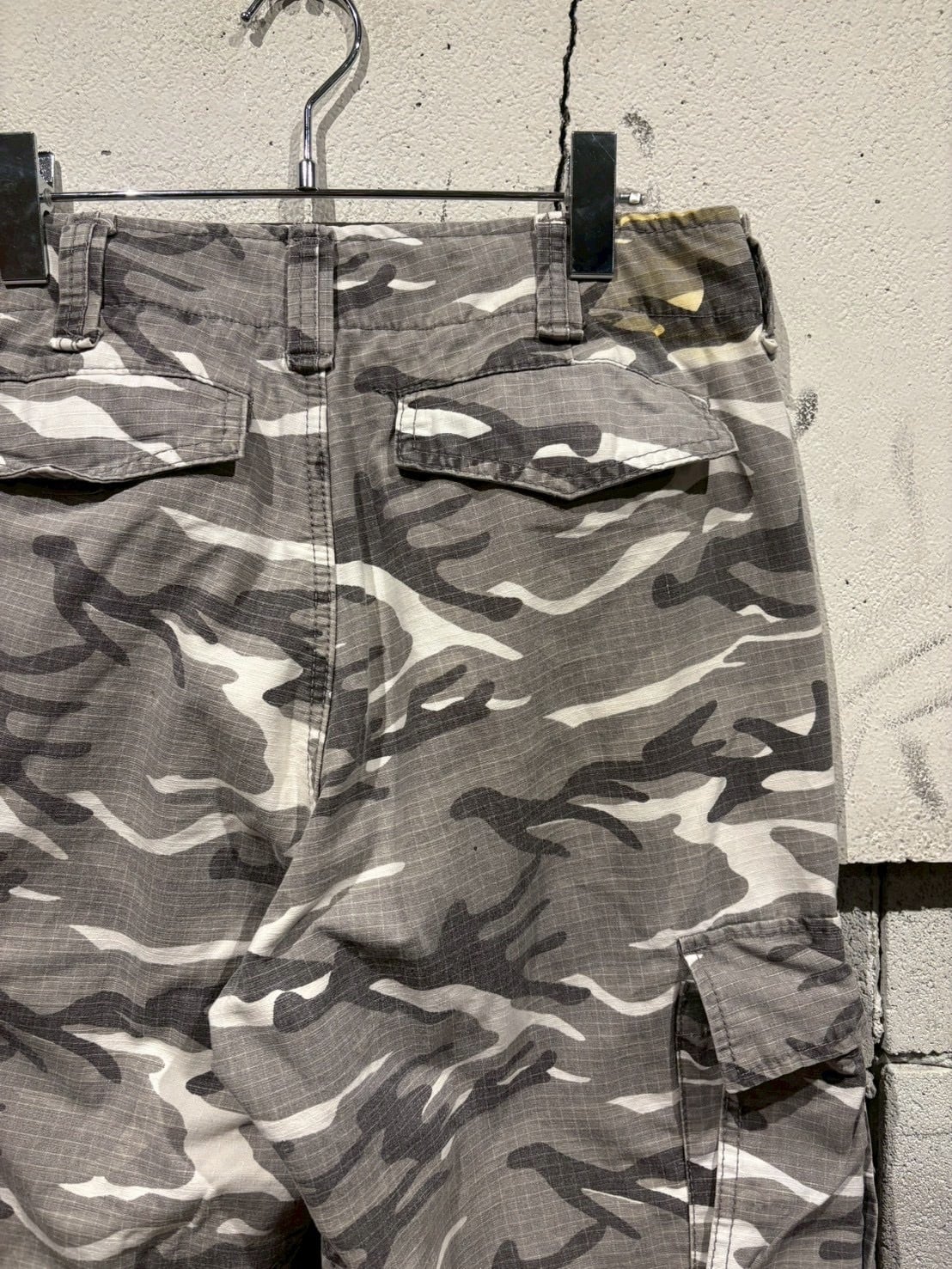 洗練されたシティカモをボディ全体に載せた、ダブルニーのカーゴパンツ。