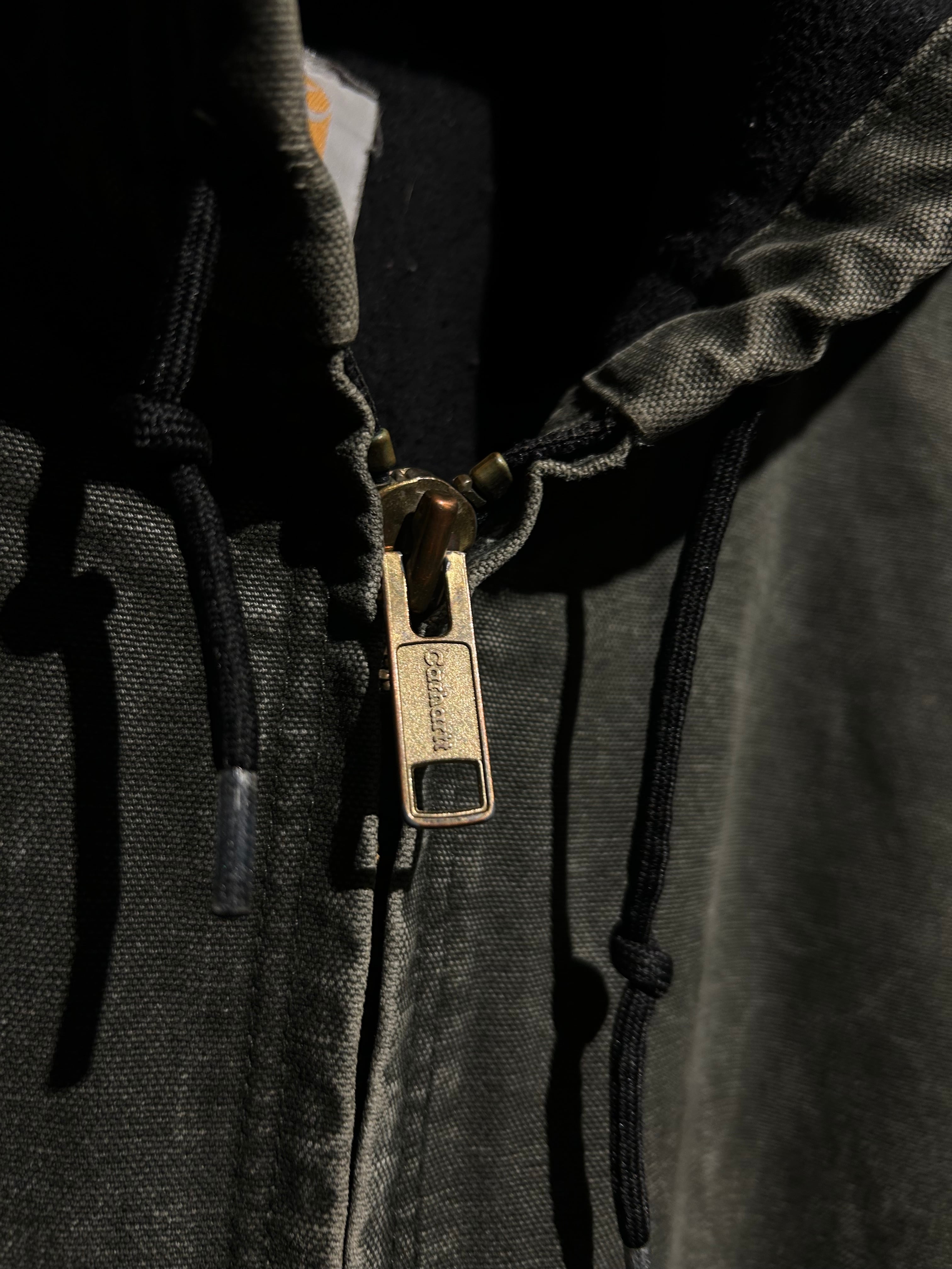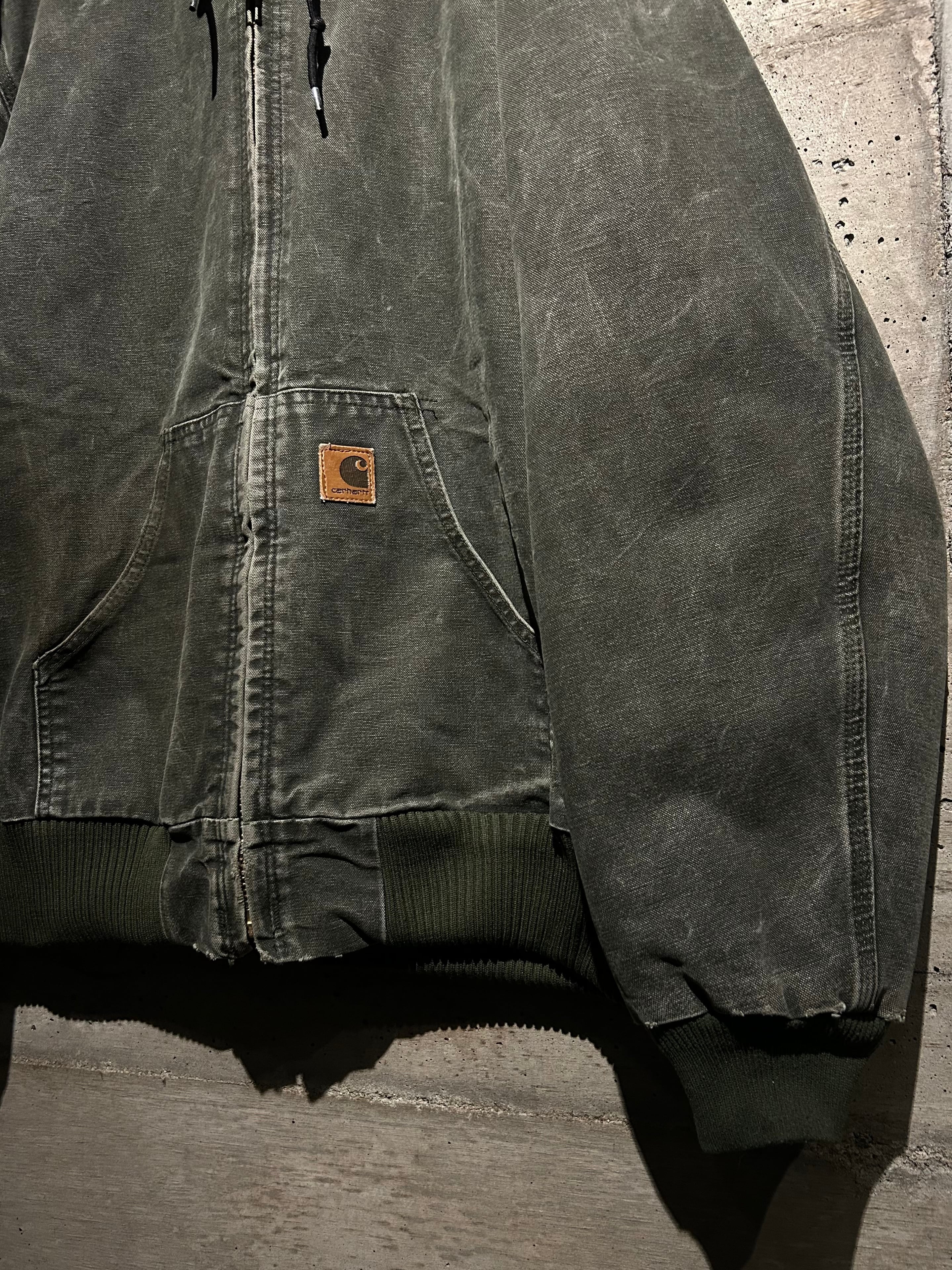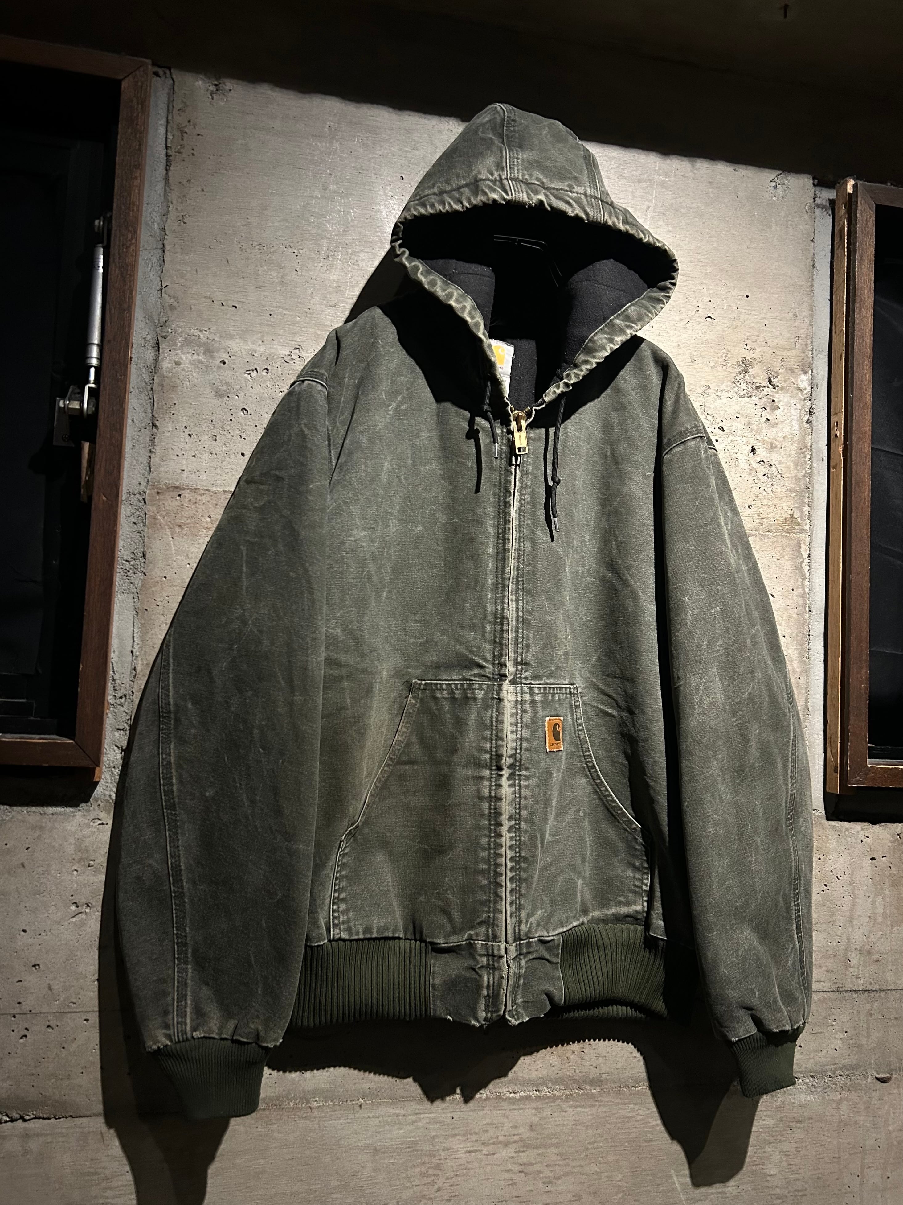 古着でも定番として高い人気を保ち続けるアメリカ発のワークブランド“Carhartt”より、探されている方も非常に多いアクティブジャケットが到着。深いグリーンのボディが褪色し、エイジングによって生まれた退廃的な雰囲気が抜群に格好良いスペシャルな1着です。