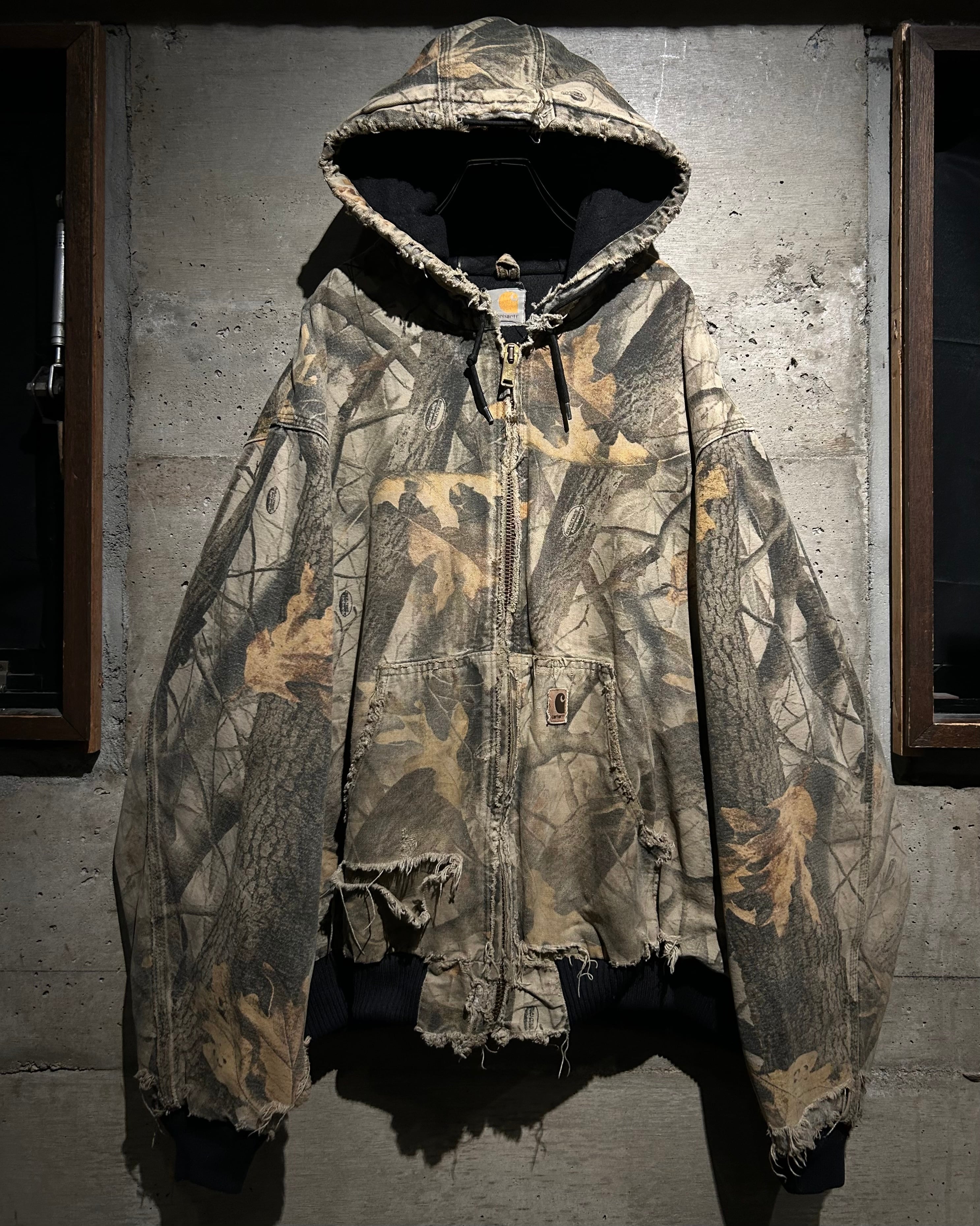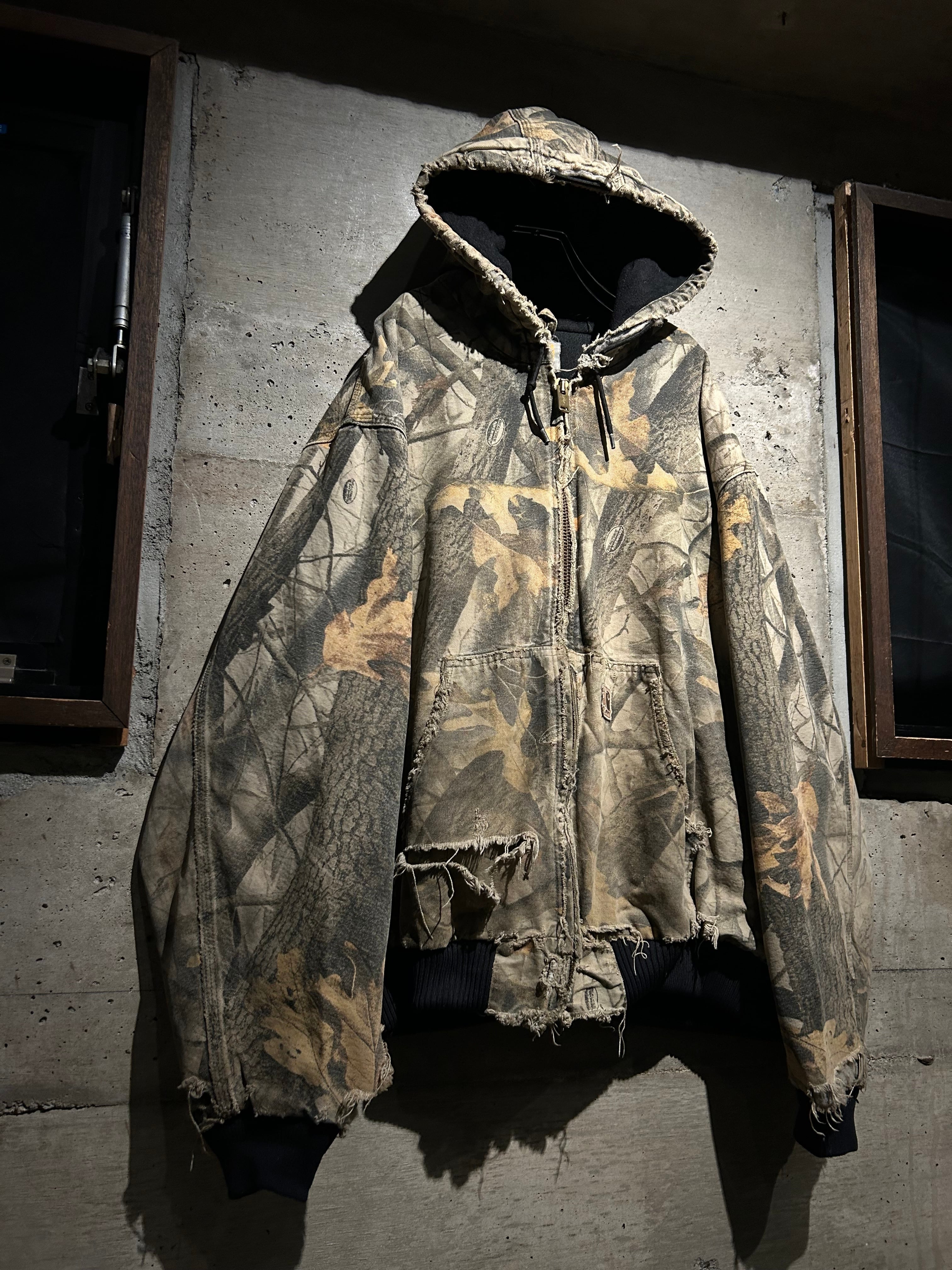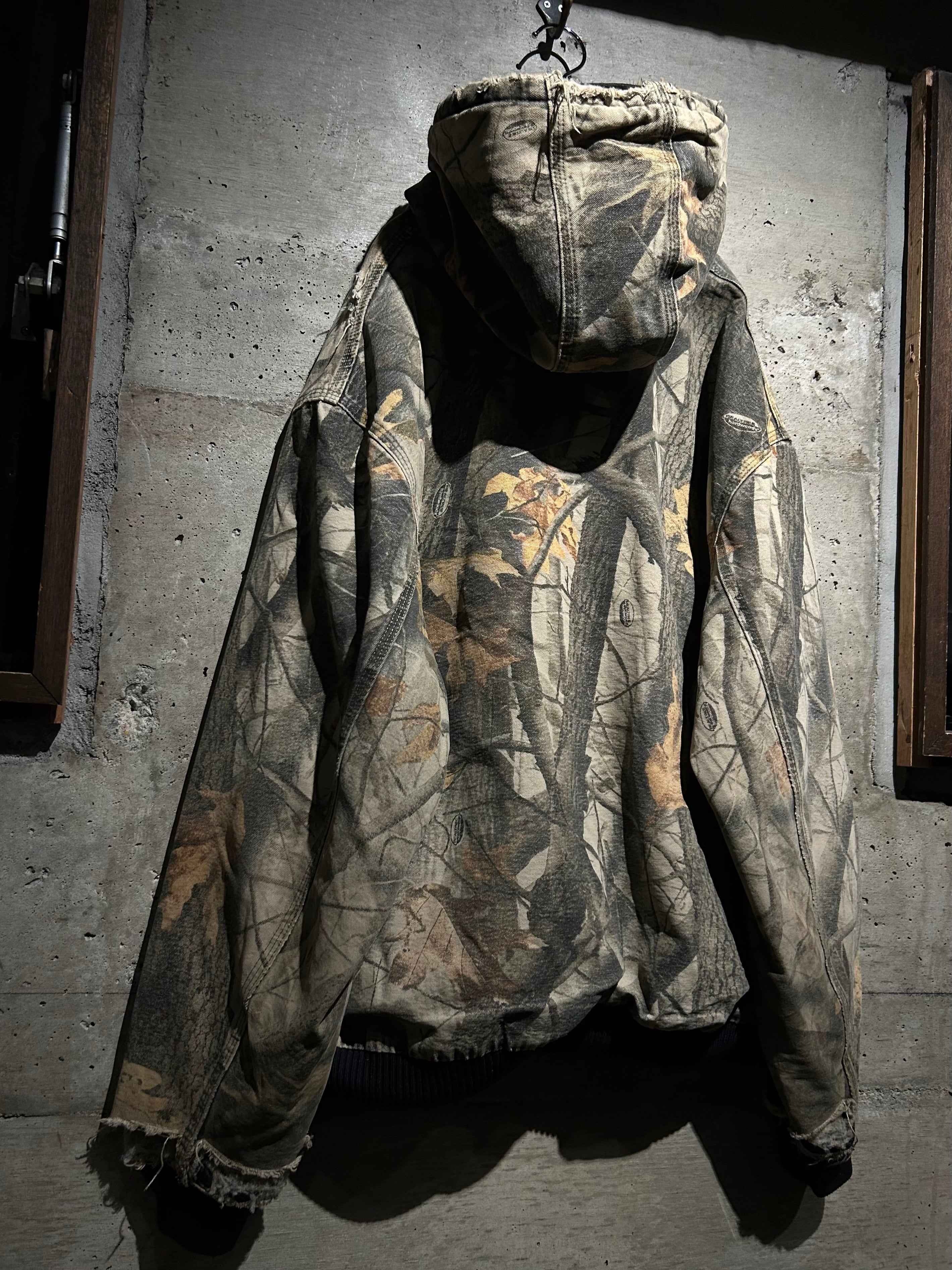 古着でも圧倒的な人気を誇る“Carhartt”から、稀少なリアルツリーカモが落とし込まれたアクティブジャケット。自然を写したリアルな柄に、長年の使用で生まれた退廃的な褪色とダメージが重なり、強烈な存在感を放つ一点です。