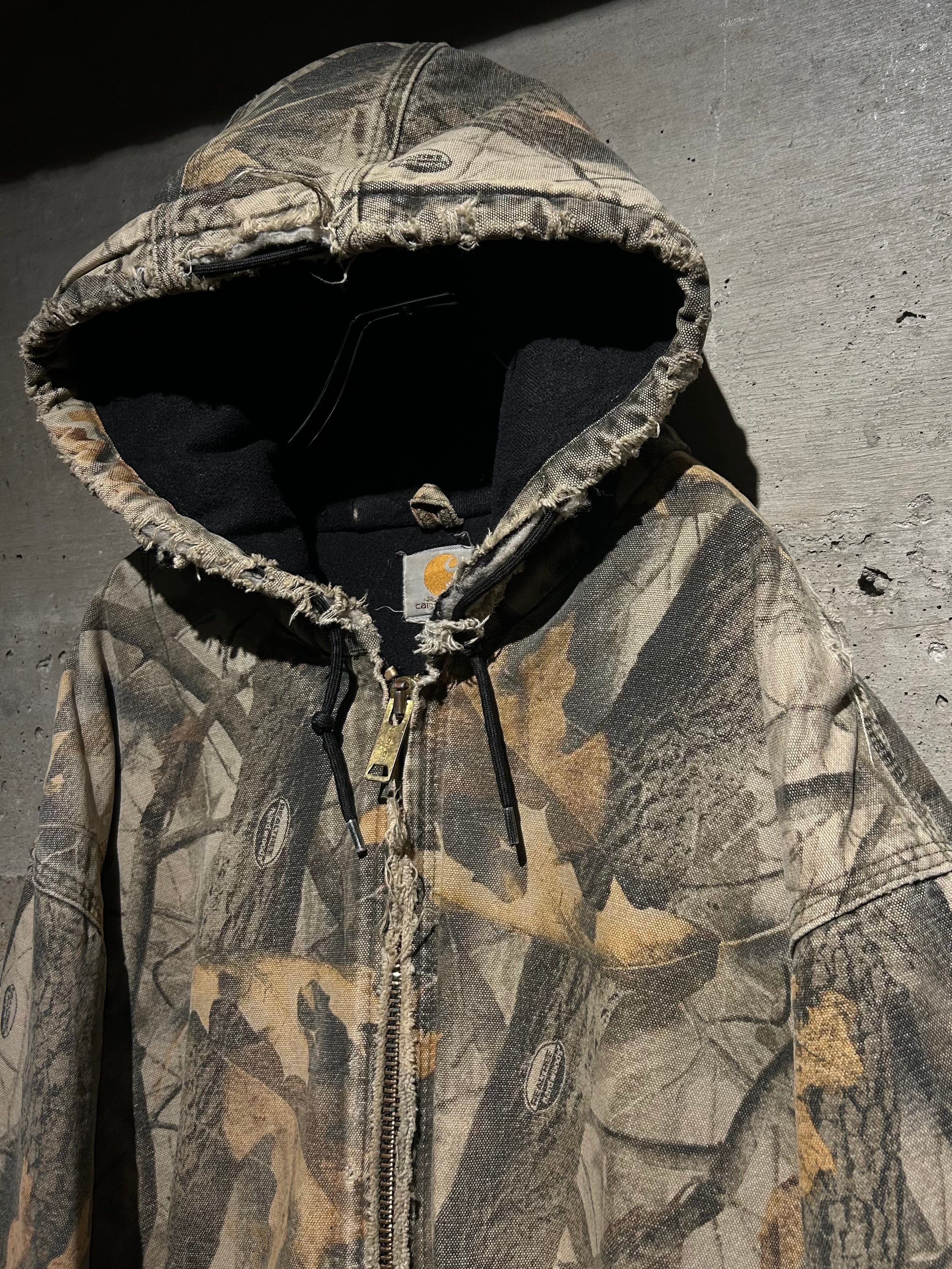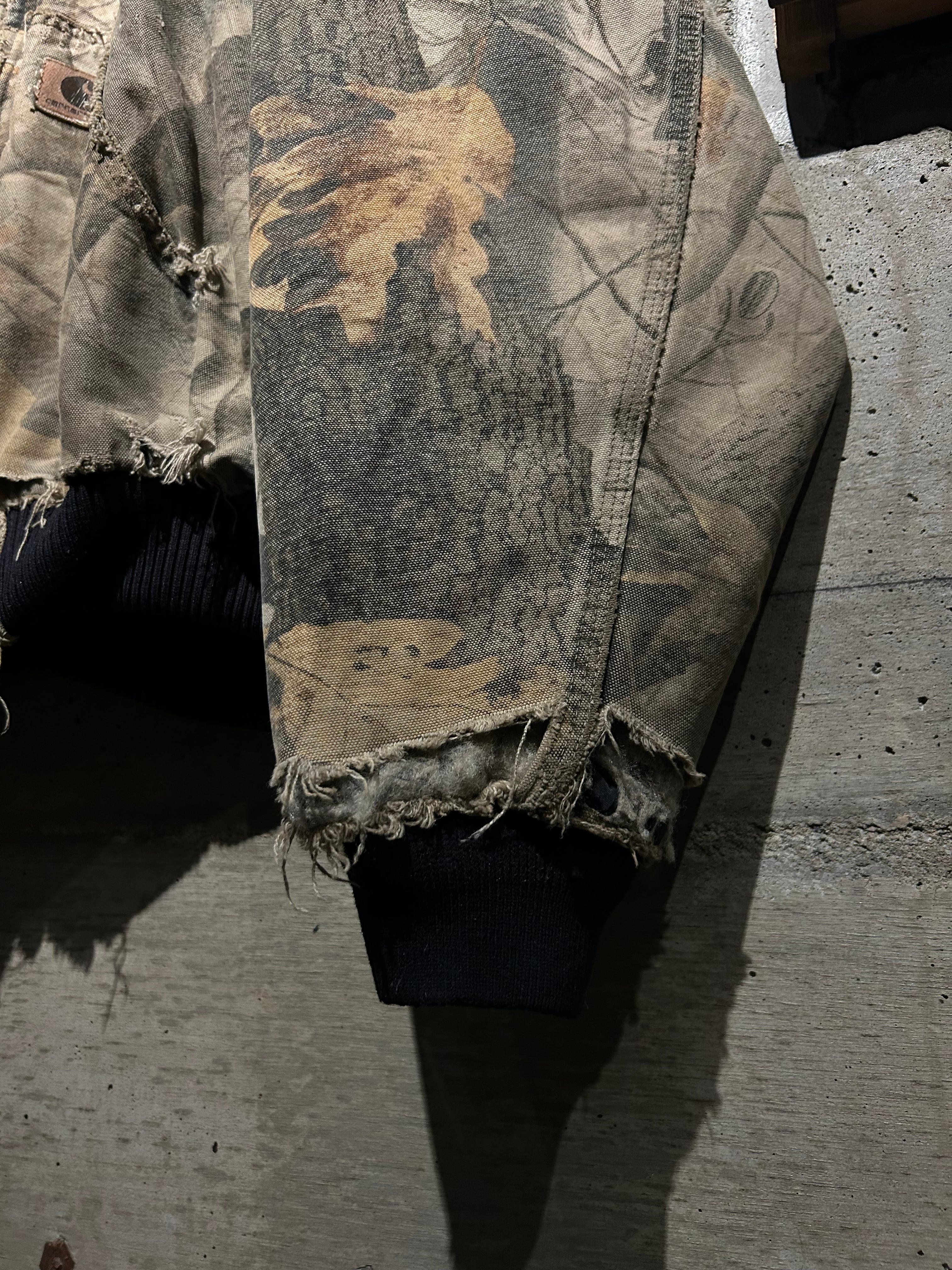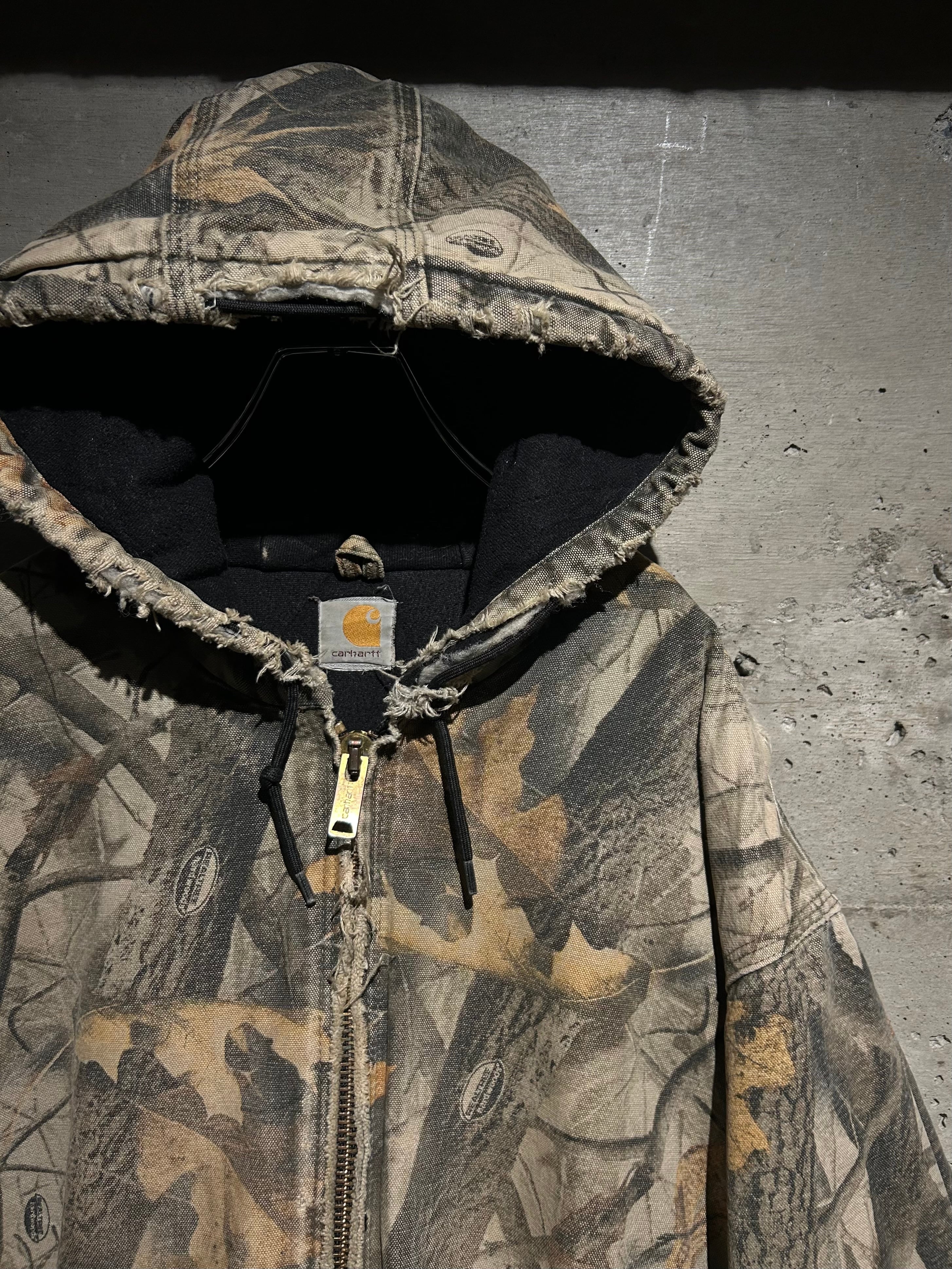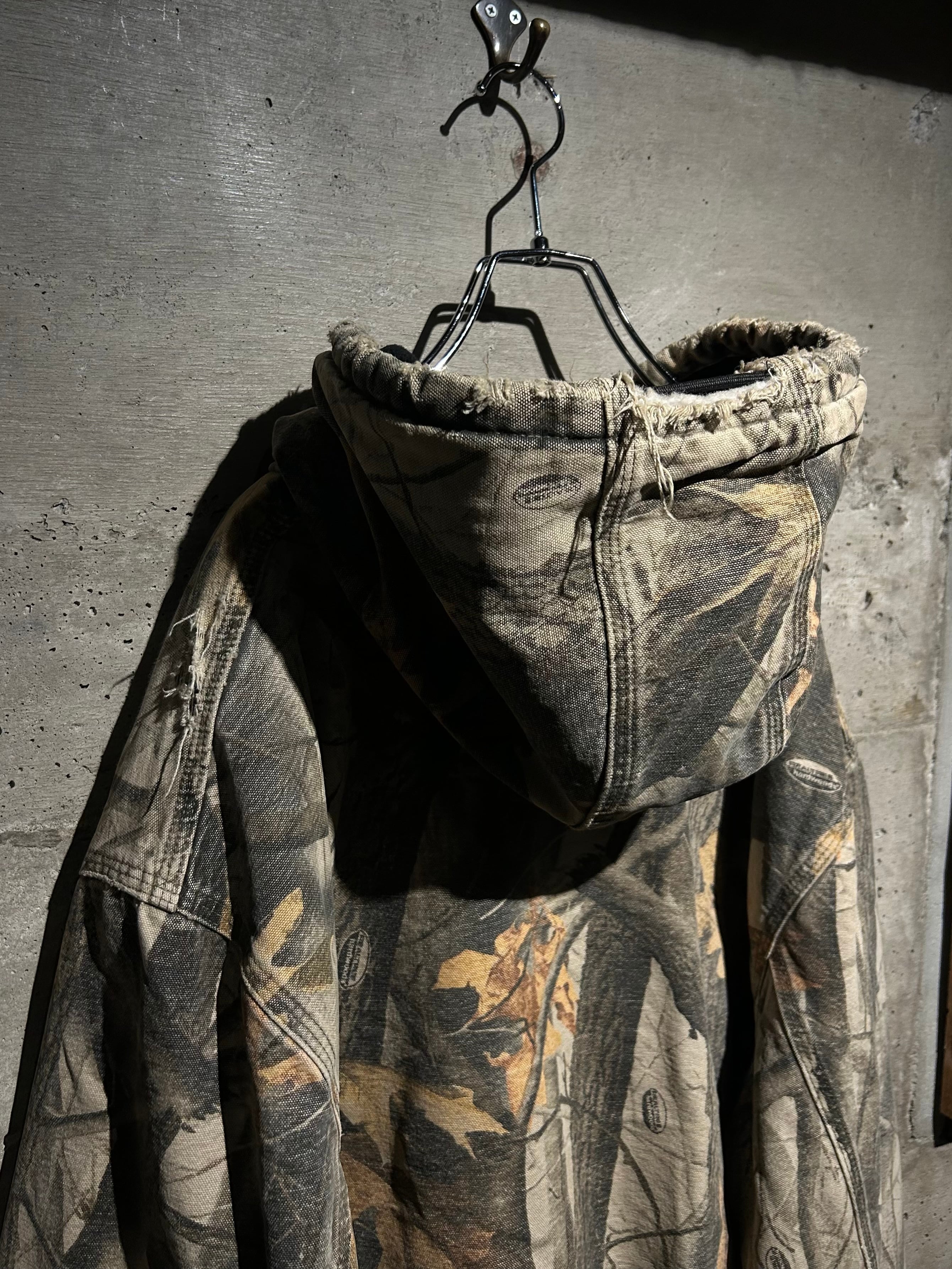 古着でも圧倒的な人気を誇る“Carhartt”から、稀少なリアルツリーカモが落とし込まれたアクティブジャケット。自然を写したリアルな柄に、長年の使用で生まれた退廃的な褪色とダメージが重なり、強烈な存在感を放つ一点です。